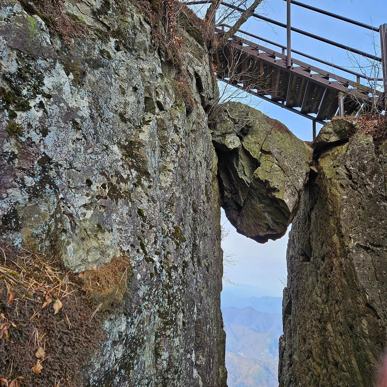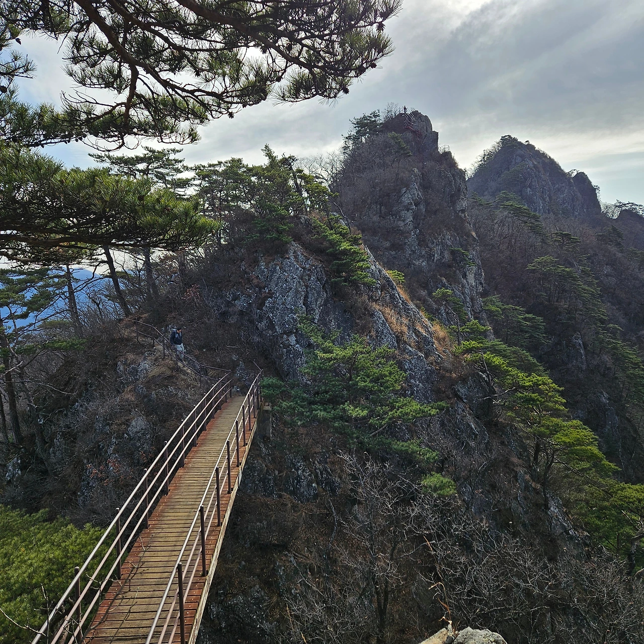 데크를 오르내리면서 하봉을 지난다. 올라야 할 하봉이 우리 눈에는 멋있게 보여서 사진으로 담아보려고 하는데 사진기술이 아직인지 그것을 표현하지 못한다. 사진기술이 뛰어난 사람들은 담는데 나는 그렇지 못하다는 것을 아쉽게 생각한다. 한봉을 오르고 내려오면 봉우리와 봉우리를 연결하는 데크가 있다. 구름다리인데 그것이 그렇게 고마울 수가 없다. 그것이 없다면 봉우리를 끝까지 내려가서 다시 올라가야 하기 때문이다. 하지만, 구름다리를 지나면서 밑을 내려보면 고소공포증이 저절로 나타난다. 중국에 있는 산들의 등산로를 인터넷으로 보면서 그 길을 어떻게 걷는지 궁금하다. 나는 도저히 그곳을 지나갈 수 없을 것이다. 오르고 내리면서 그러한 길을 걷는다는 것이 무슨 의미인지 모르겠다. 산행은 건강을 즐기는 운동이다. 그러한 건강을 확보하기 위하여 다치면 무슨 의미가 있을까 하는 것이 나의 생각이다.