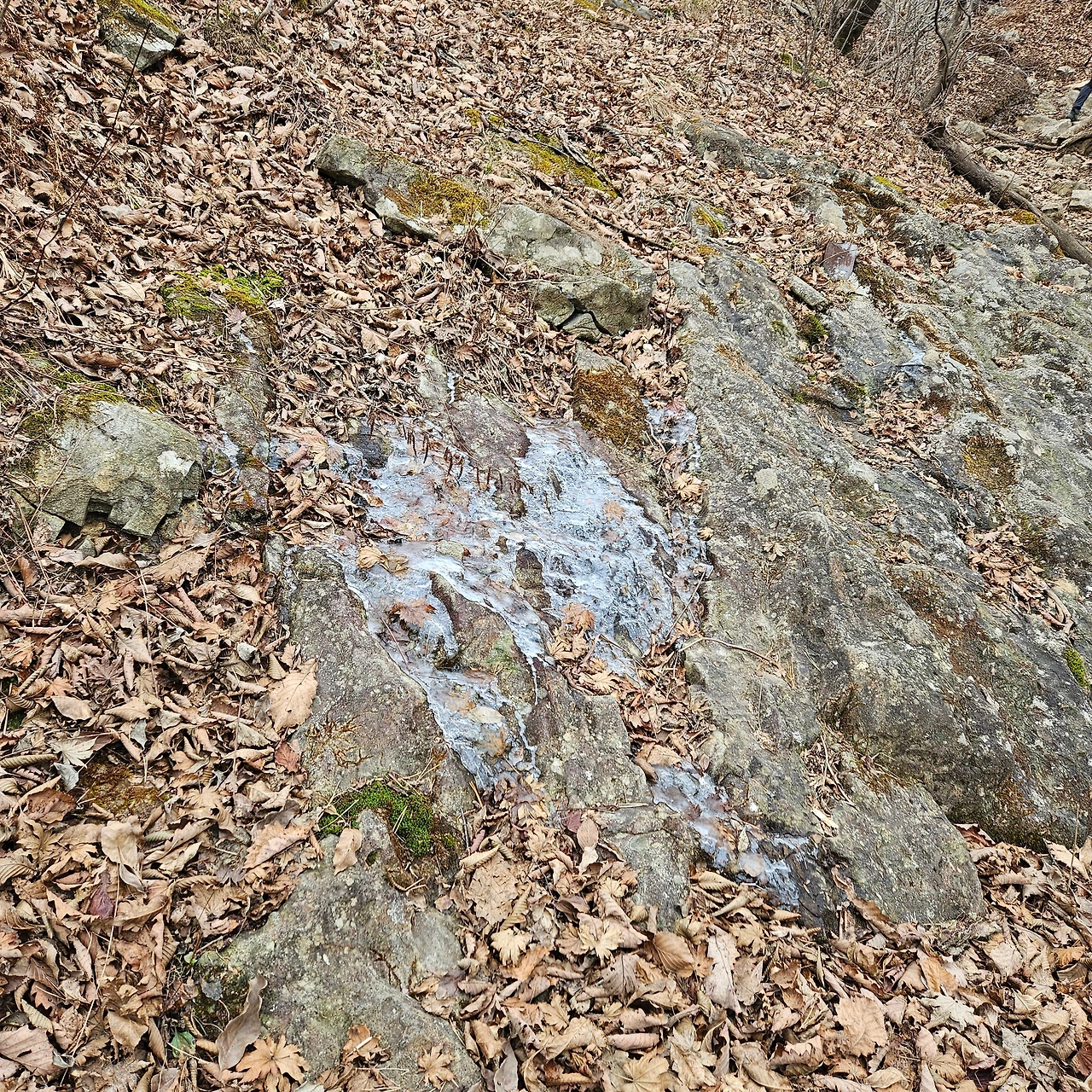 영봉을 올라서 인증샷을 남기는 사람들에 동참한다. 너도나도 정상석을 배경을 인증샷을 남기고 한편으로 충추호를 뒷배경으로 중봉, 하봉이 같이 나오는 인증샷을 남긴다. 인증샷을 남기면서 남성과 여성을 구별할 수 있는데 남성은 밋밋하게 여성은 다양한 그림으로 자세를 잡는다. 그런데 MZ세대는 다르다. 남성도 다양한 자세를 잡고 있다. 고등학생들이 선생님과 같이 산행을 왔다. 그들은 다양한 자세를 보여준다. 영봉 바로 옆의 봉우리에서 사람들이 추운 점심을 해결하고 있다. 우리는 좀 더 따뜻한 곳을 찾기로 하고 하산을 한다. 영봉을 내려가면서 금년 겨울에 처음으로 보는 고드름도 보고 얼음이 얼은 것도 보았다. 월악산을 오르면서 서릿발도 보았다. 이제는 겨울장비로 아이젠도 챙기고 스패츠도 서서히 배낭 속에 보관하여 행동을 하여야 할 것 같다.