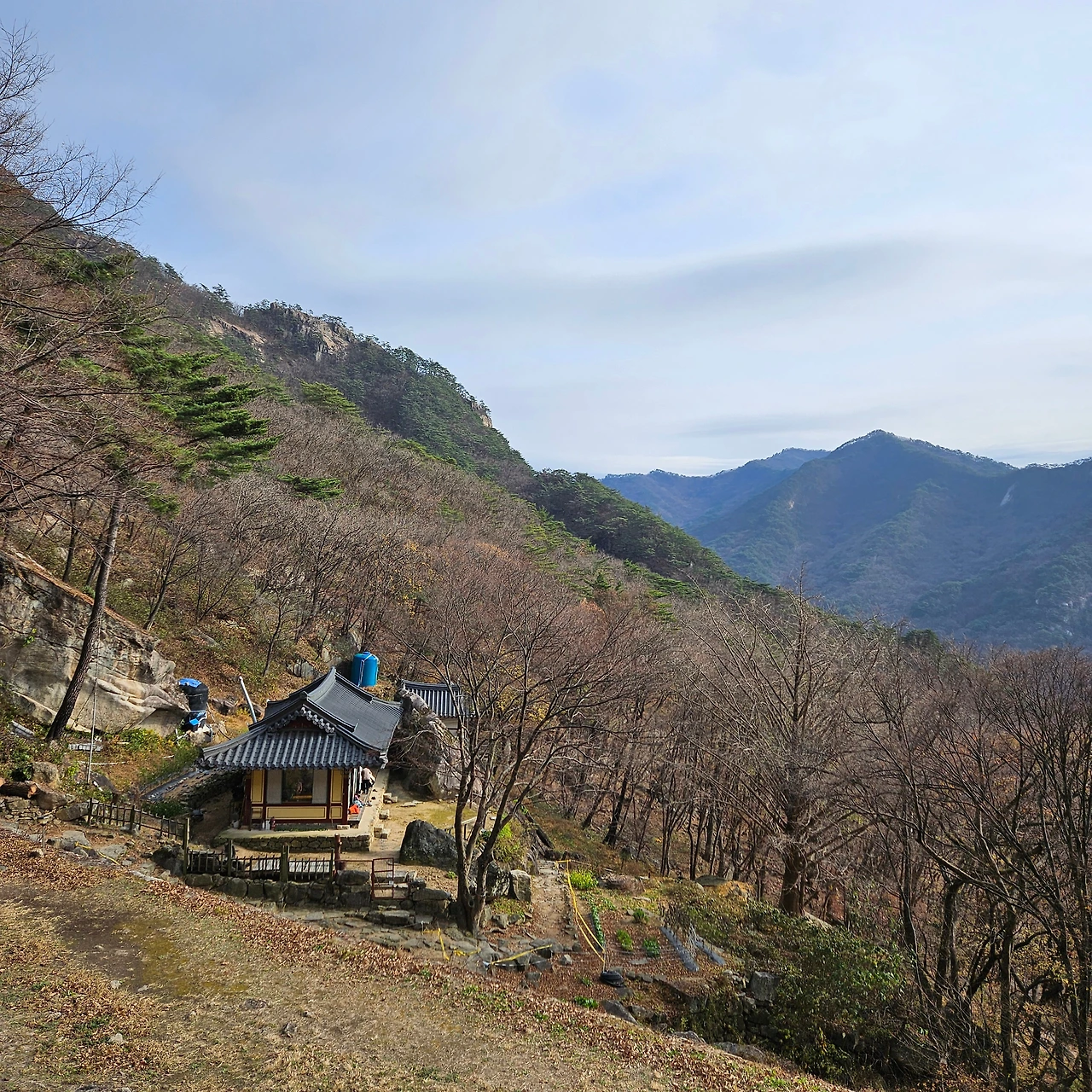 보덕암 화장실에서 오늘도 몸을 정리한다. 산을 가면서 의식처럼 산에 들어가는 사람들이 화장실에서 의식을 치른다. 보덕암 화장실은 성인지가 그래도 잘되어 있다. 남성 화장실보다 여성화장실이 크다. 통상적으로 비슷한 것이 보통인데 이곳은 성인지가 잘되어 있어서 더 크게 되어 있다. 보덕암으로 올라간다. 데크로 올라가도 되고 옆길로 올라가도 된다. 옆길은 사람이 다닌 길이 아니고 보덕암 스님이 OFF Road 자동차를 이용하는 길이다. 그래도 그 길이 나는 좋다. 보덕암 스님은 여름날 이곳을 지날 때 멋지게 색소폰을 연주하였는데 오늘은 요사체에서 조용히 쉬시고 계시고 암자를 지키고 있는 개가 손님이 왔음을 알리고 있다.