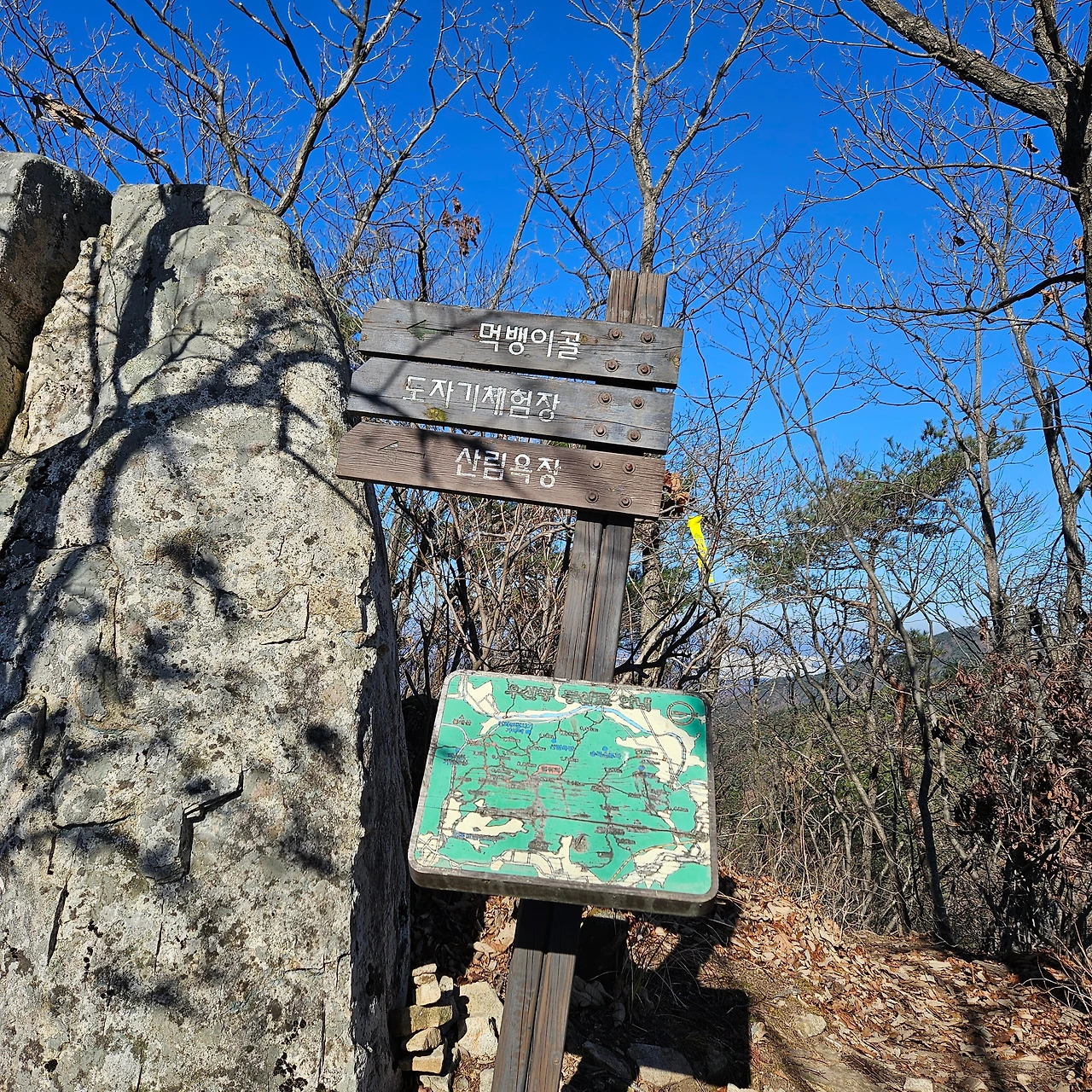 대전시에서 안내하기는 안산동 버스정류장에서 출발하여 안산동 산성을 거치는 길을 안내하지만, 지하철역에서 바로 우산봉으로 가는 코스를 잡고 가본다. 반석역에서 2번 출구 또는 3번 출구를 나오자마자 직진으로 1km 정도 걷는다. 통미삼거리를 지나고 유성구 공동육아나눔터 옆의 소공원으로 들어간다. 도림소공원이다. 왼쪽은 반석더샵 아파트 단지이고 오른쪽은 능선이다. 다른 길도 있지만 나는 이 길이 무척이나 쉬워서 선택한다. 소공원 끝에서 등산로로 연결이 된다. 산을 오르면서 능선으로 가는 길을 만나면 등산로 초입이 나타난다. 외삼중학교 쪽에서 올라온 길을 만나는 것이다.