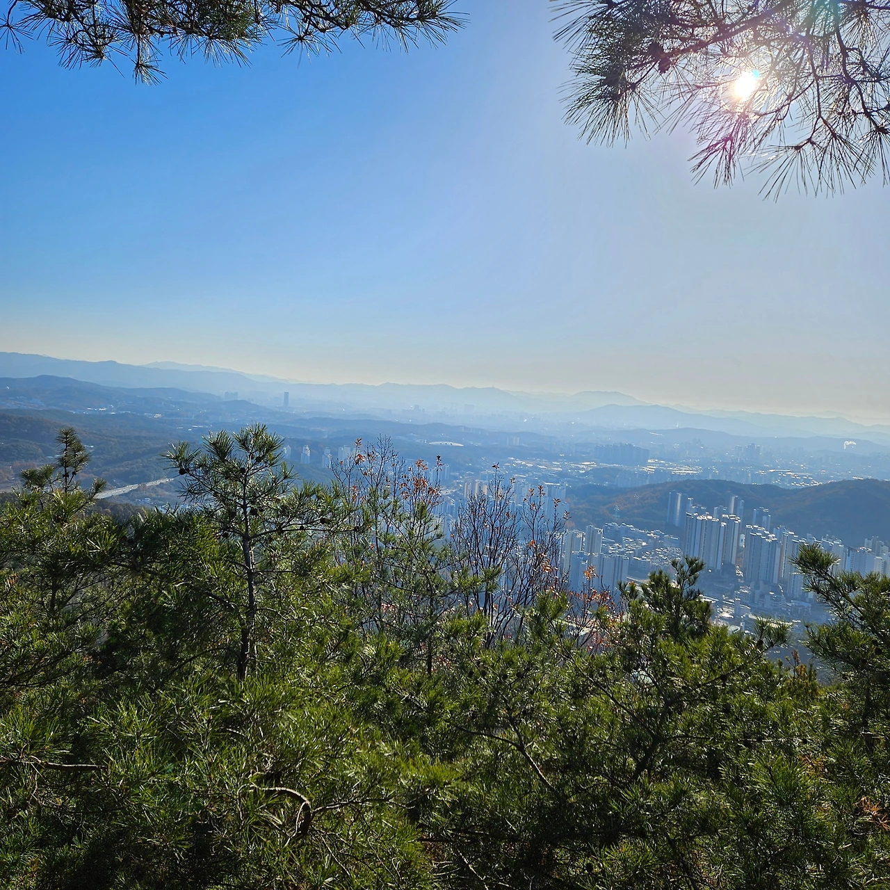 이제 두 번째 봉우리를 오른다. 이 봉우리는 이름이 있다. 구절봉이다. 이곳의 높이는 435m다 조금 전부터 오르면서 해발을 다시 200m를 오르는 만큼 힘들다고 할 수 있다. 오르면서 대전을 조망할 수 있는 전망대도 있다. 그 전망대라는 것이 암릉이고 그 앞에는 나무가 없기 때문이다. 산에서 바라다보는 도시는 아름답다. 그리고 그곳에 높은 빌딩이 있을 때 더 아름답다고 할 수 있다. 대전시내가 안갯속에 갇혀 있다. 아침 이른 시간이 아니지만 아직도 아침안개가 걷히지 않고 있다. 두 번째 정자에 도착한 것이다.