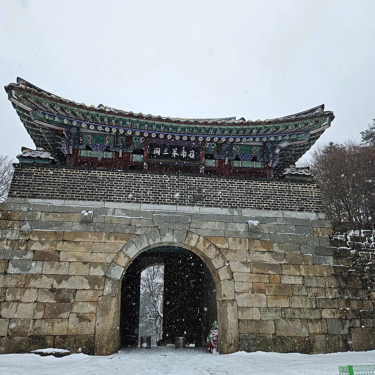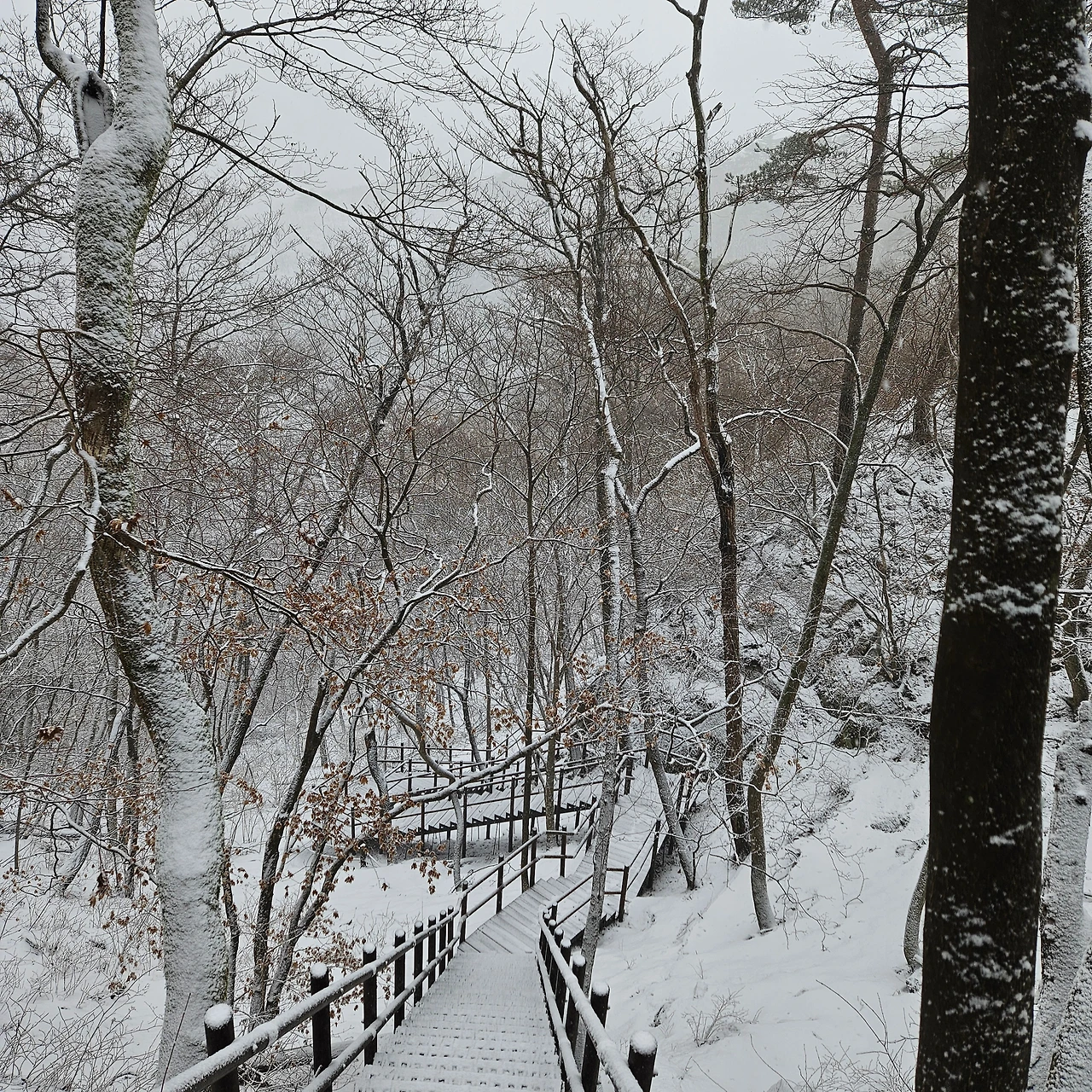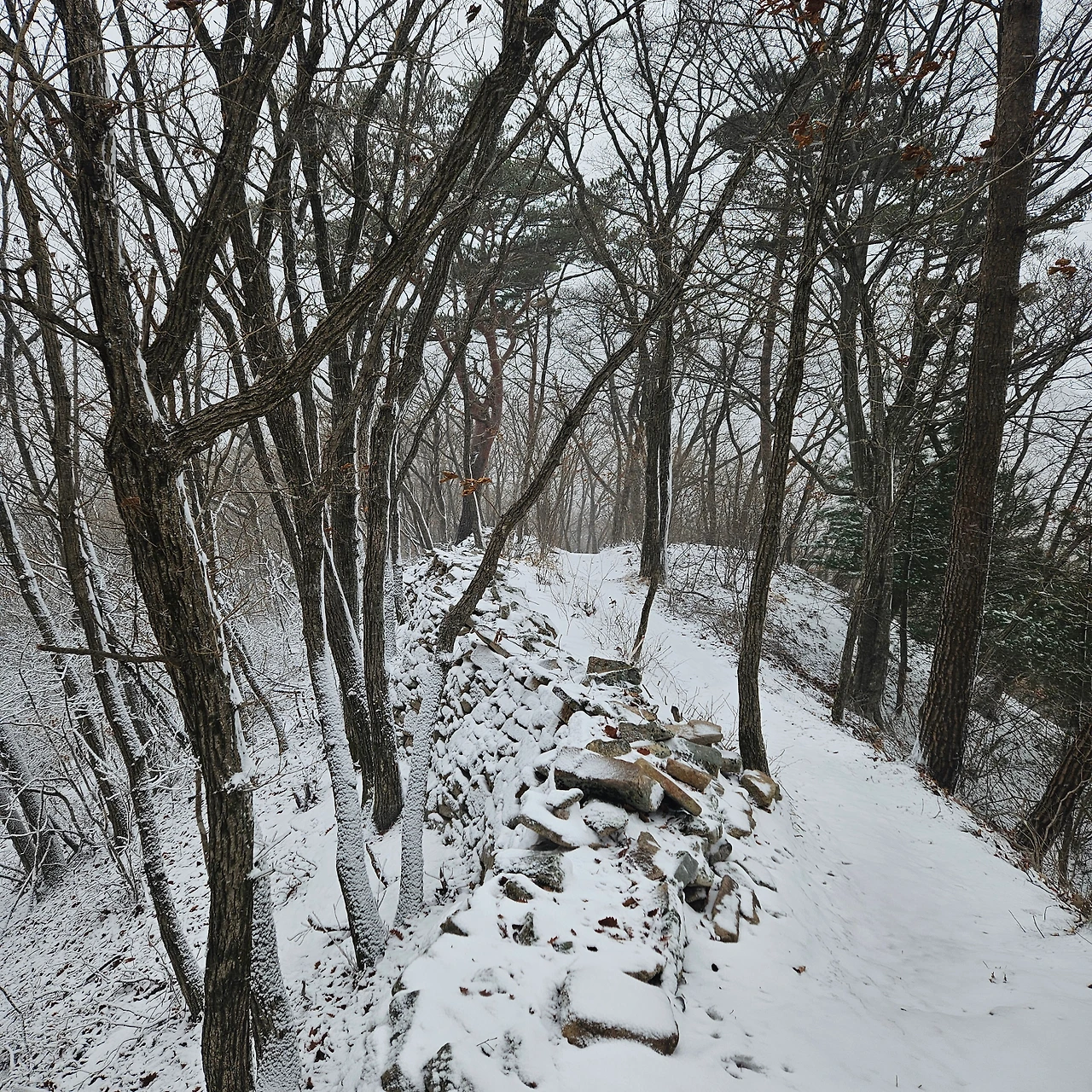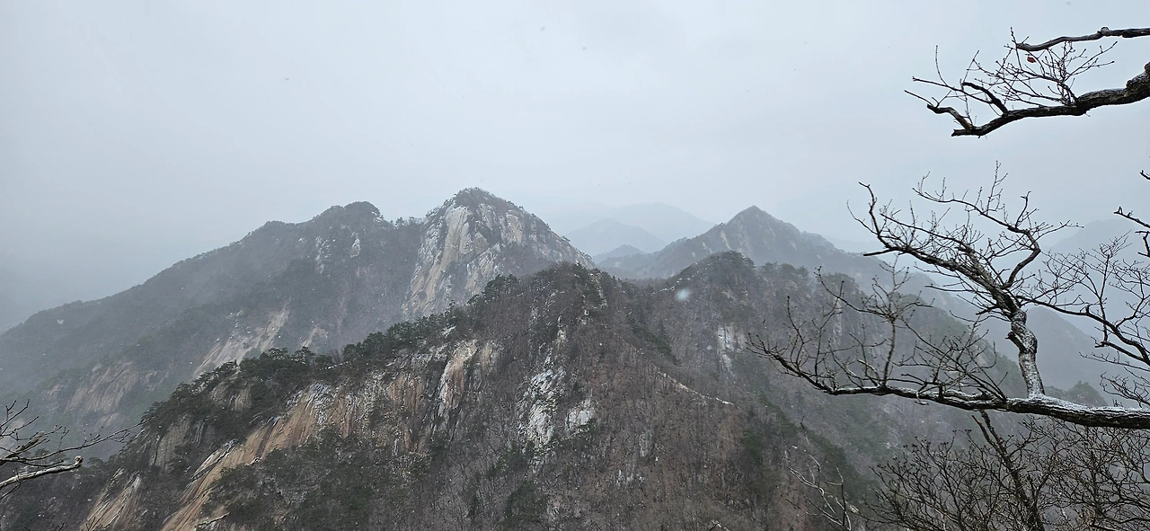 3 관문이다. 이곳에서 넘어가면 충북의 새재길이다. 아래로 새재길을 내려간다. 눈을 보러 온 사람들이 있다. 우리는 눈에 지쳐있는데 그들은 평화스럽다. 우리가 주차를 시켜놓은 곳에는 눈이 올 것인지 비가 올 것인지 궁금하다. 내려가면서 눈이 나뭇가지에 걸려 있는데 탐스러워 그것을 담아본다. 내려가면서 눈은 비로 바뀌고 있다. 길은 진흙탕이다. 조심조심 발을 옮긴다. 발을 옮길 때마다 흙이 바짓가랑이에 튀어 오른다. 그리고 장갑은 다 젖셔져 이제는 차갑다. 장갑을 바지에 있는 주머니에 손을 넣고 데울 뿐이다. 2 관문을 지나고 1 관문을 지나고 주차장에 도착하니 비가 주룩주룩 내리고 있다.