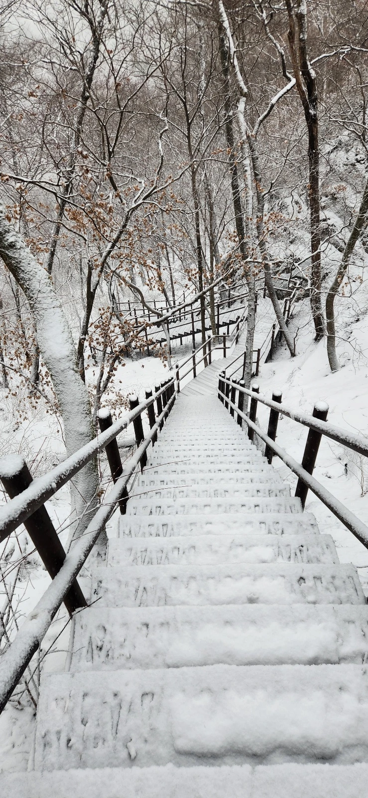 암릉지대를 지나면서 우리들은 느꼈다. 지인은 다시는 겨울산에 암릉구간을 들어가지 않는 것이 맞다고 하였다. 데크가 나타났다. 그것을 보는 순간 너무나 반가웠다. 이제는 암릉이 끝났다고 보아야 할 것이다. 암릉지대를 탈출하면서 데크가 있구나 하였다.