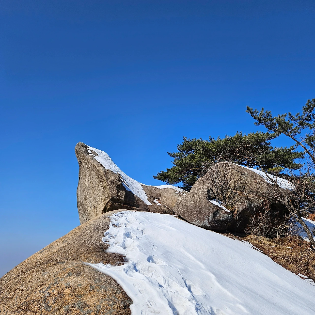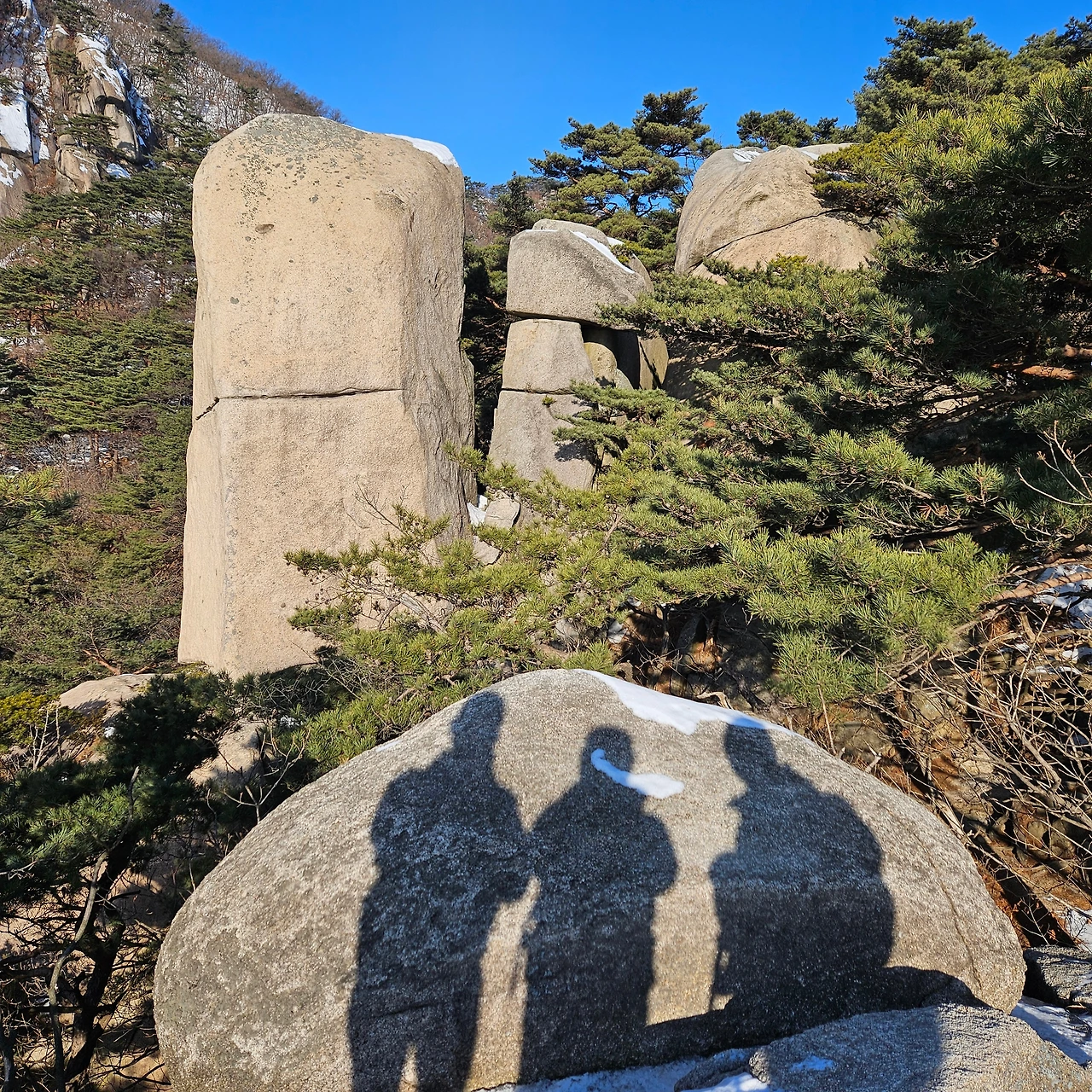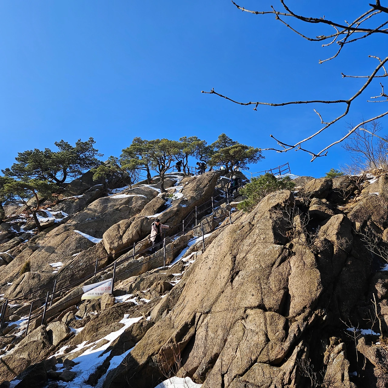 신선대를 오른다. 신선대를 오르기 전에 갈림길이다. 신선대를 올랐다가 마당바위 방향으로 하산하는 사람들이 있다. 아이젠 없이 왔다가 얼음이 있는 곳에서 미끄러진다. 안따까운 마음에 J가 여분의 아이젠을 주려고 하였지만 마당바위 방향은 괜찮다고 하면서 그냥 내려간다. 산에서 내려가는 사람들이 햇빛이 있는 양지로 내려간다. 그곳은 안전한 것 같다. 그래도 겨울산을 오르면서 겨울장비를 갖추고 올라왔으면 한다. 친구 J의 마음자세도 좋다. 하나를 더 가지고 있다가 남에게 줄 수 있다는 것도 좋다. 나도 하나를 더 가지고 다녀보아야겠다.