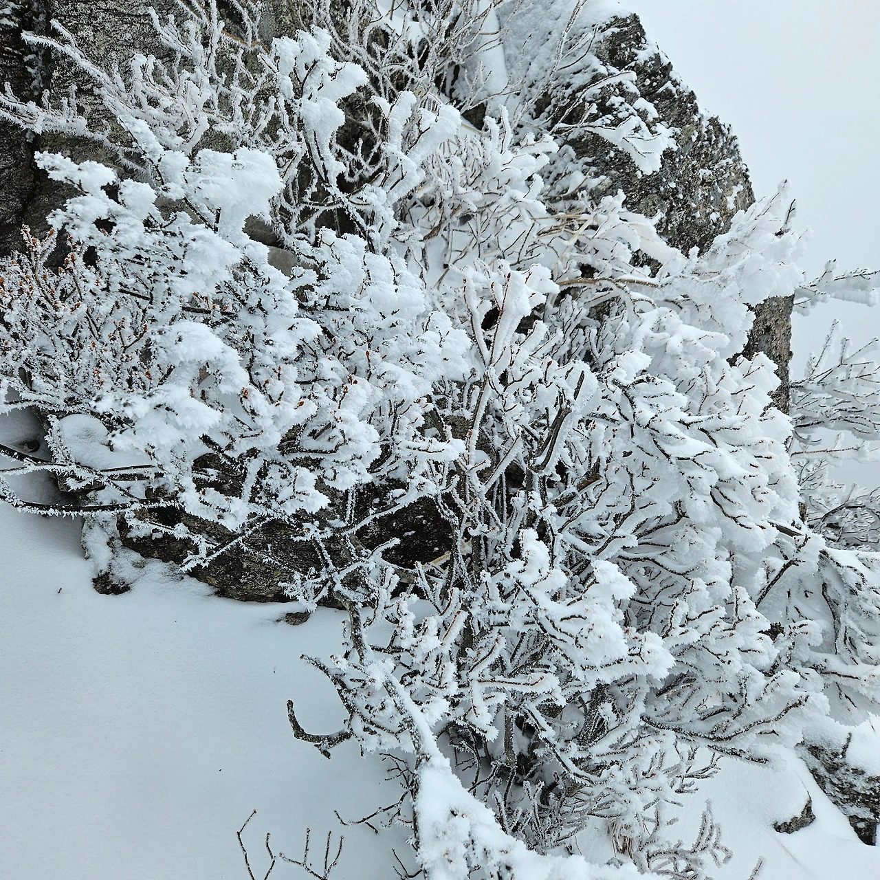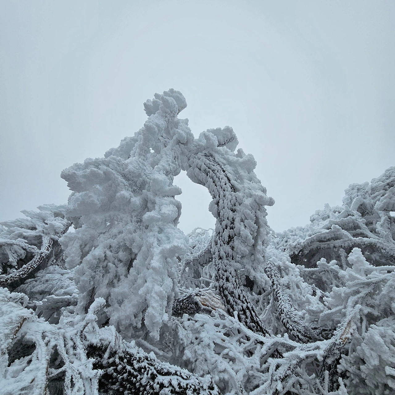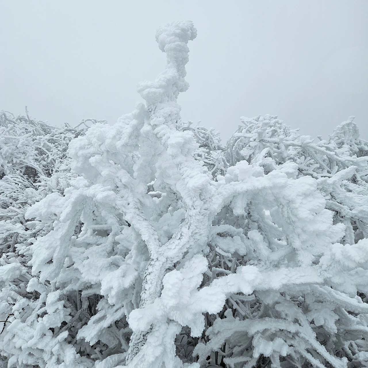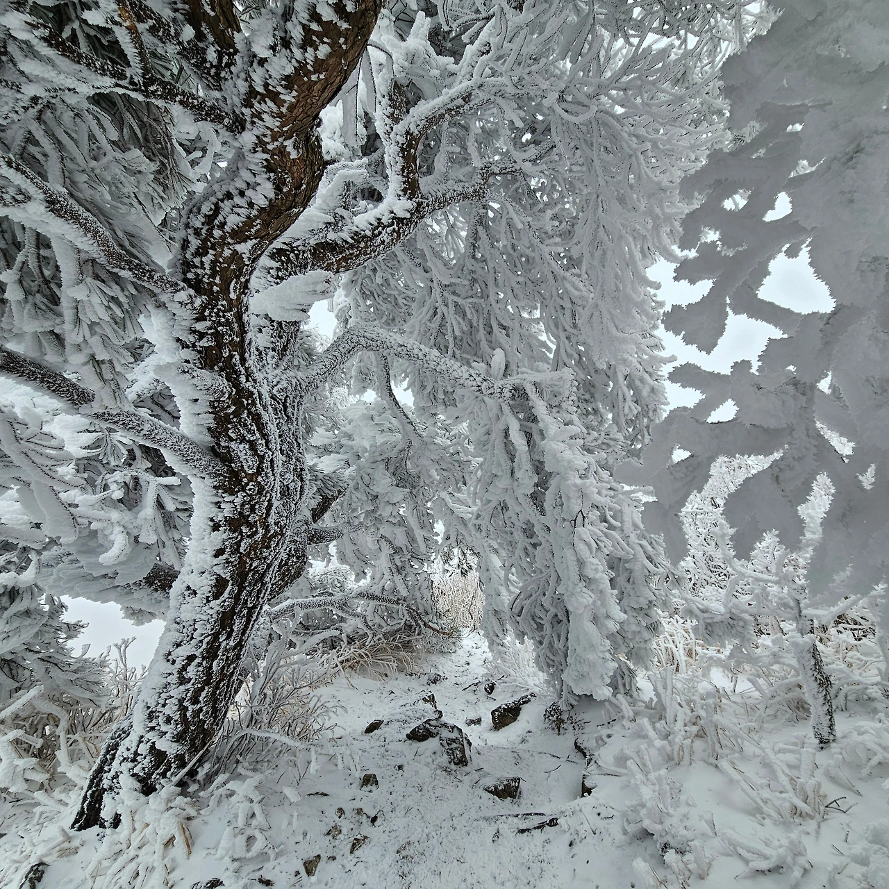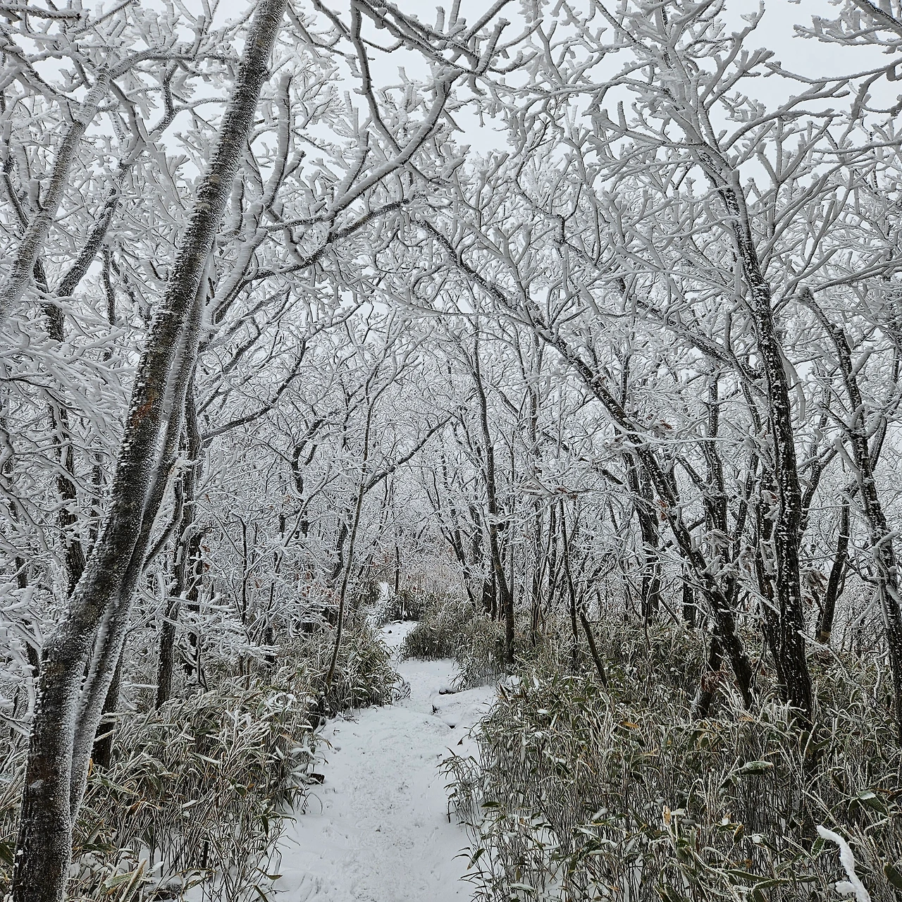 오늘의 원대한 꿈을 위하여 빠르게 운문산을 갔다 와야 한다는 욕심이 앞서서 그런지 갑자기 체력이 떨어지기 시작한다. 오버페이스를 한 것이다. 그래도 내가 산을 오르고 내린 지 10년이 넘었는데 포기할 수는 없다. 천천히 10분 정도 여유를 갖고서 다시 오른다. 상고대를 즐기면서 휴식을 하고 오른다. 겸손할 수밖에 없는 곳에서는 겸손하게 지나간다. 겸손하지 않으면 겸손하라고 응징을 받는다. 상고대 터널이 있고 상고대가 너무 많아서 나뭇가지가 부러진 것도 보았으며, 상고대가 다양한 모습을 연출한 것도 보았다.