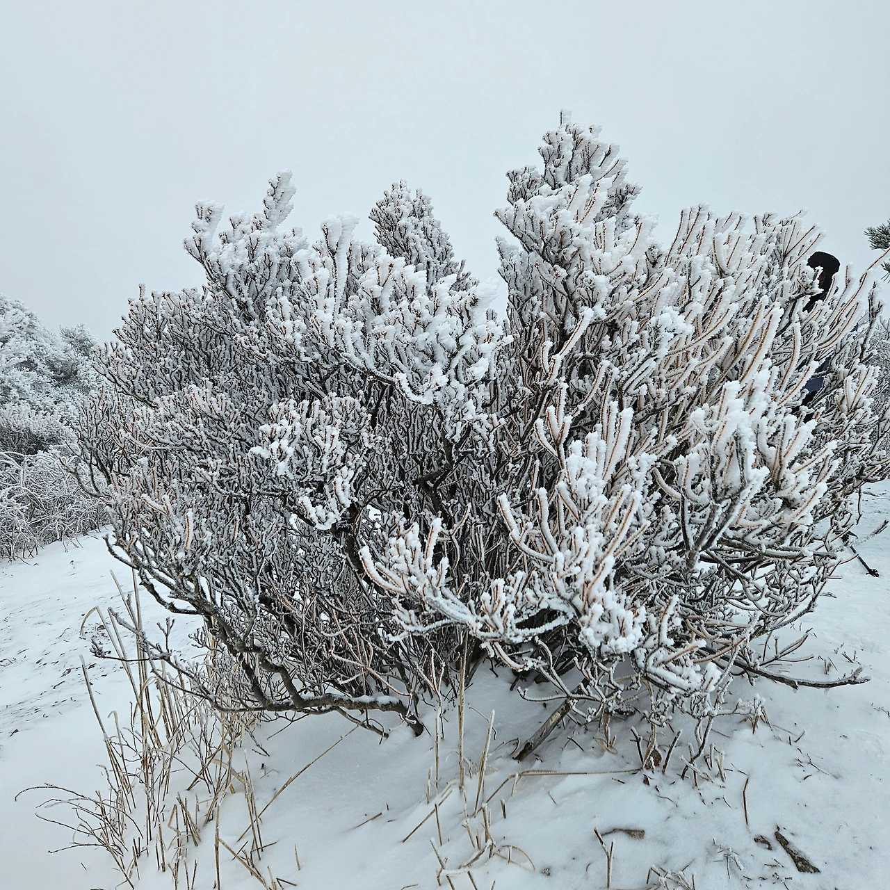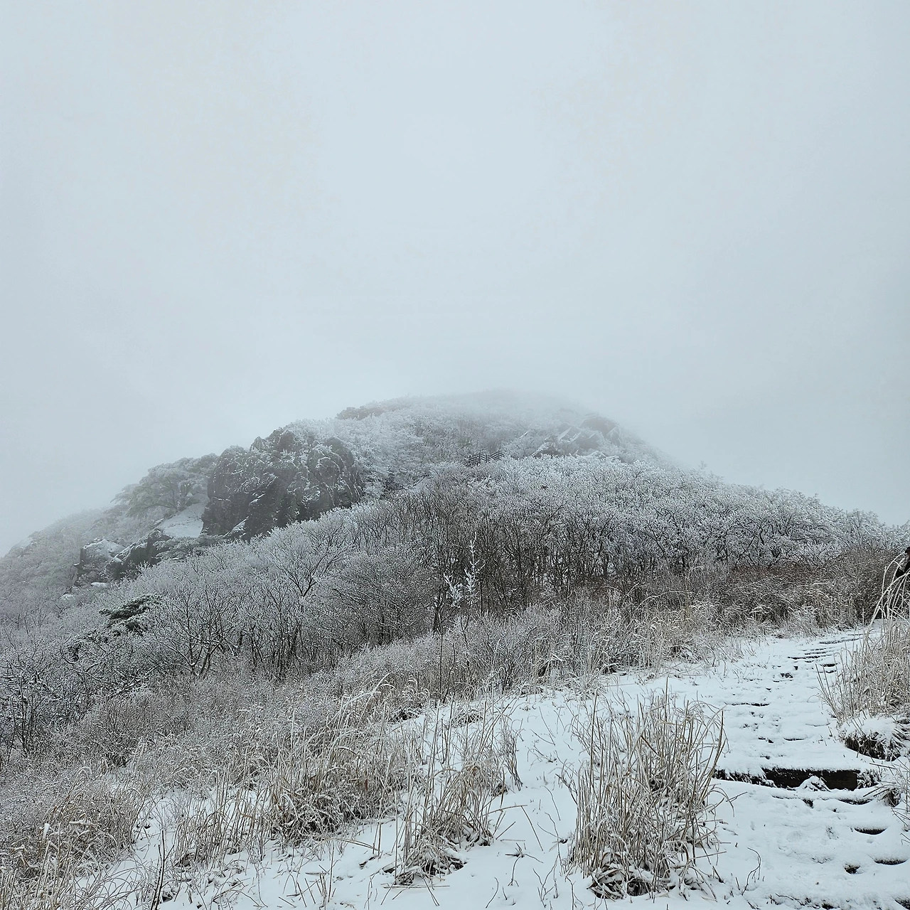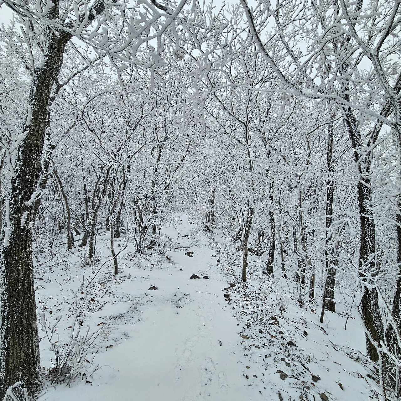 내려가면서도 올라오는 사람들이 상고대 등을 사진을 담고 있는 모습을 보면서 위에 올라가면 더 멋진 경치가 있다고 이야기하면서 우리는 하산을 한다. 쌀바위 근처의 휴게소에 도착하니 손님이 없다. 우리가 독점한 것으로 생각했는데 우리가 손님을 몰아왔는지 금세 가득 찬다. 들어온 사람들이 오늘 등산을 온 것이 설산을 그대로 볼 수 있어서 좋다고 하는데 주인장은 며칠 전에 눈이 50cm 정도 와서 더 좋았다고 한다. 하지만, 그분은 이곳에서 고립되어 있었을 것 같다. 휴게소 주인이지만 산을 내려가야 하는데 눈이 가득한 산을 내려갈 수도 올라올 수도 없기 때문이다.