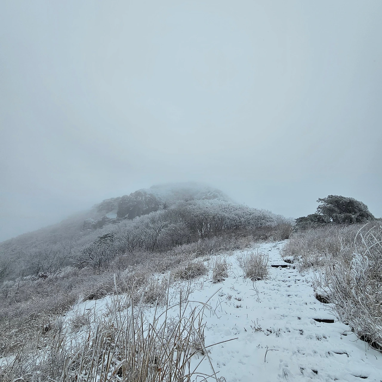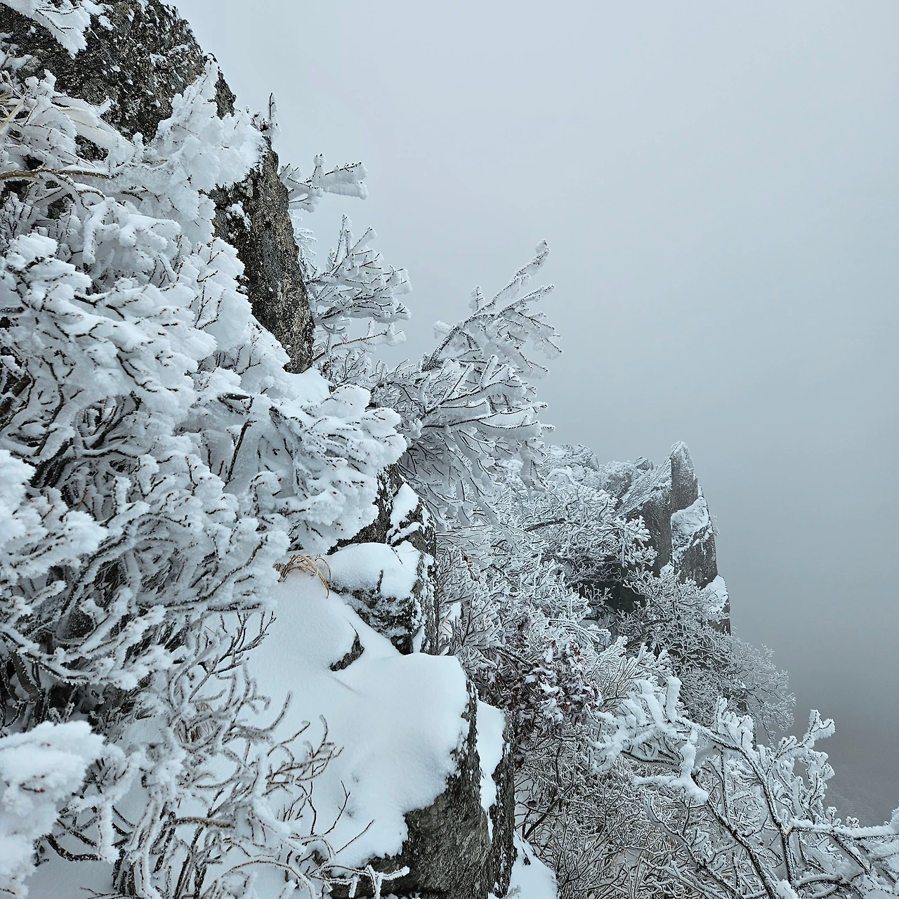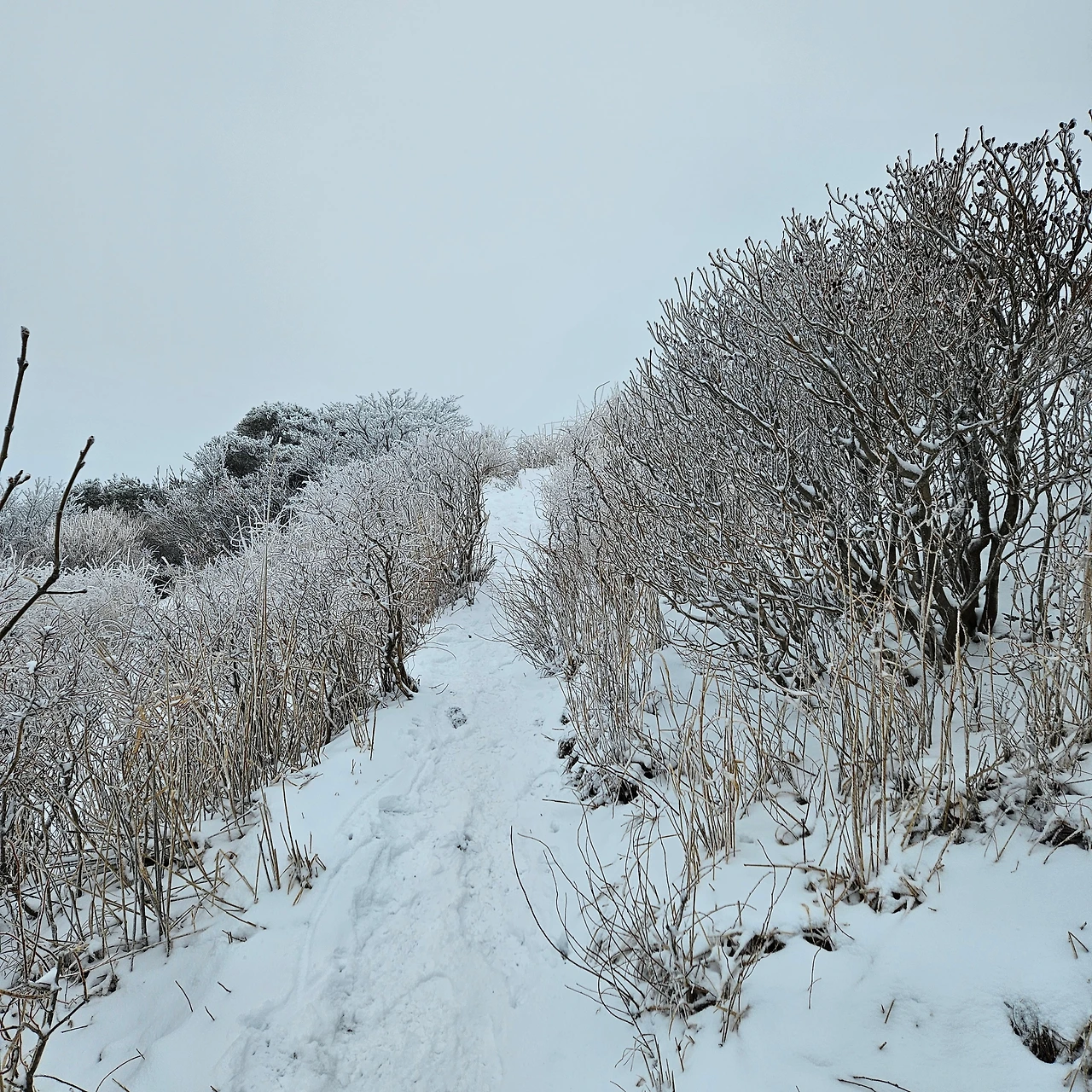 내려가면서도 올라오는 사람들이 상고대 등을 사진을 담고 있는 모습을 보면서 위에 올라가면 더 멋진 경치가 있다고 이야기하면서 우리는 하산을 한다. 쌀바위 근처의 휴게소에 도착하니 손님이 없다. 우리가 독점한 것으로 생각했는데 우리가 손님을 몰아왔는지 금세 가득 찬다. 들어온 사람들이 오늘 등산을 온 것이 설산을 그대로 볼 수 있어서 좋다고 하는데 주인장은 며칠 전에 눈이 50cm 정도 와서 더 좋았다고 한다. 하지만, 그분은 이곳에서 고립되어 있었을 것 같다. 휴게소 주인이지만 산을 내려가야 하는데 눈이 가득한 산을 내려갈 수도 올라올 수도 없기 때문이다.