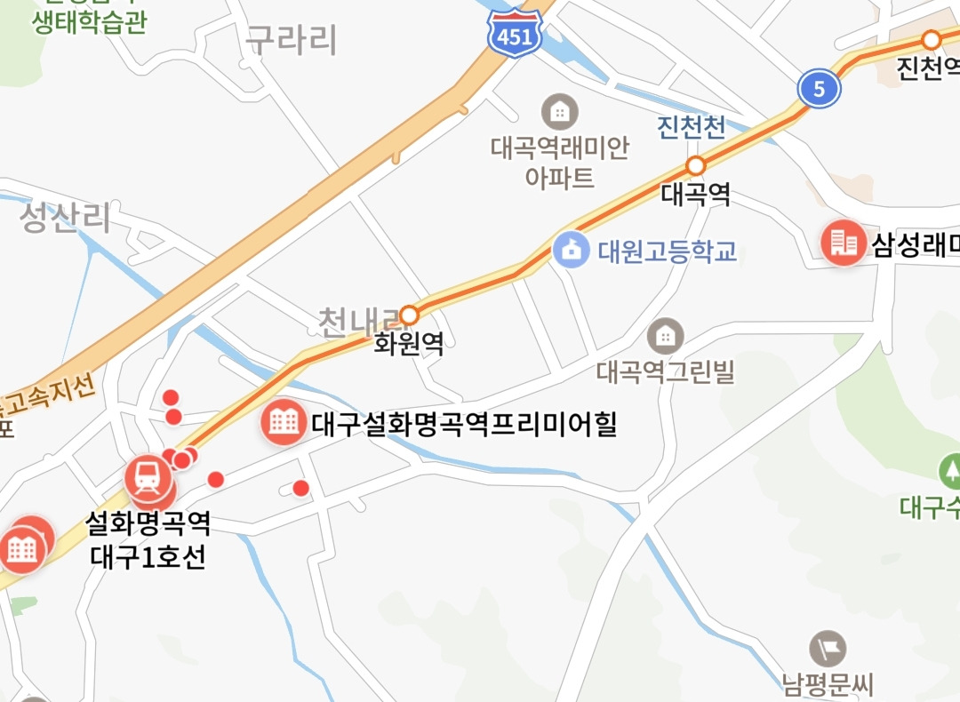 이제는 복귀다. J를 가장 접근하기 쉬운 지하철역으로 이동시켜 주는 것이다. 승용차로 접근하기 쉬운 곳도 대곡역이었다. 현풍읍에서 대구수목원까지 이어진 길을 이용한 것이다.