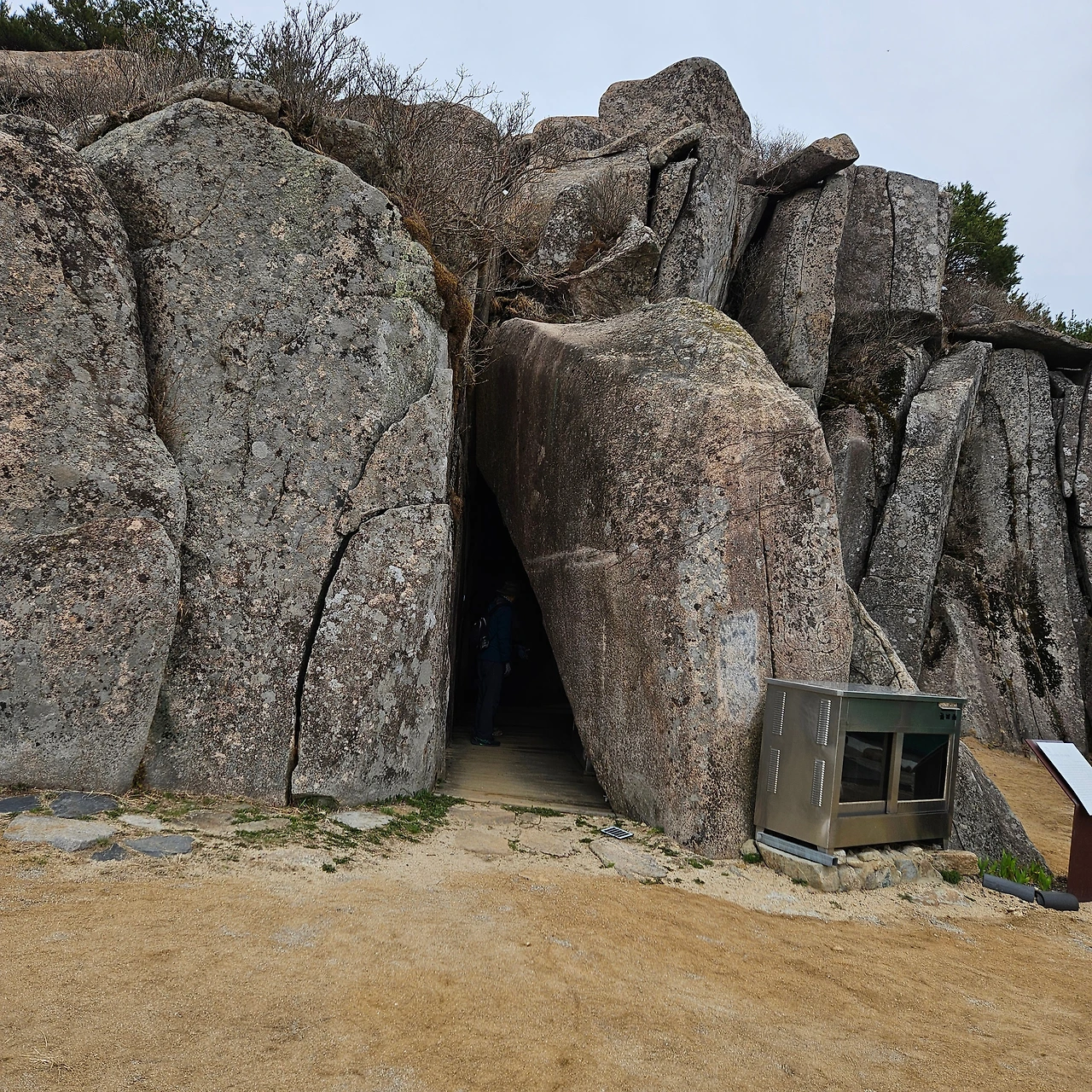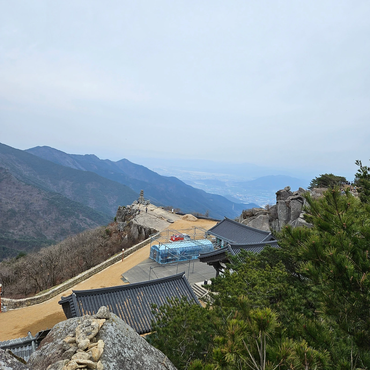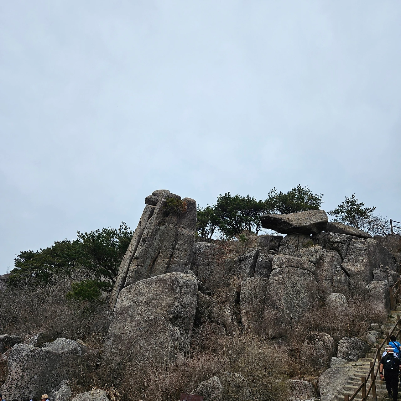대견봉에 가기 전에 대견사로 간다. 조화봉 근처에서 대견사를 바라다보니 삼층석탑이 세상을 돌아다보고 있다. 그리고 대견사로 내려가는 곳에 유튜브로 진달래 군락지를 중계하는 곳이 있다. 카메라 두대가 그대로 그곳을 감시하고 있다. 산림청에서도 이곳을 열심히 쳐다보고 있으면 좋을 것 같다. 오르지 않고서도 산불감시를 할 수 있을 것 같다. 좋은 곳에서 유튜브 중계를 하고 있다. 많은 사람들이 지나가고 있다. 달성군에서 이곳저곳에 있는 바위에 비와 바람과 세월이 조각한 이름을 붙여 놓았다. 그것을 담고 상상을 해본다. 그 바위 사진을 AI에 입력하고 무엇이야고 물어보니