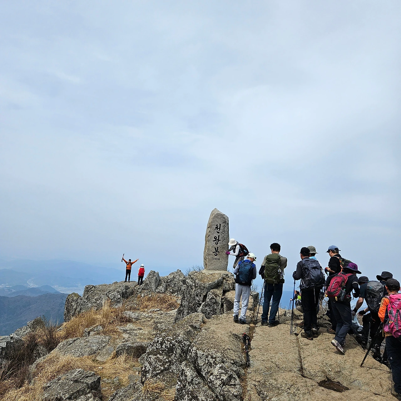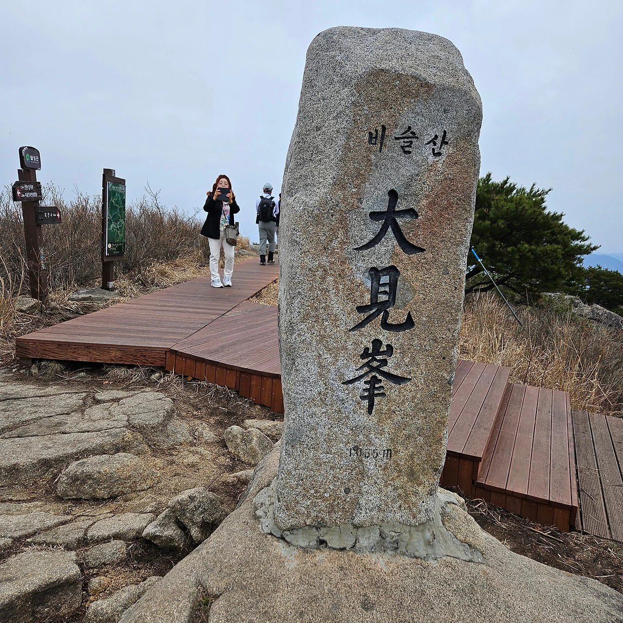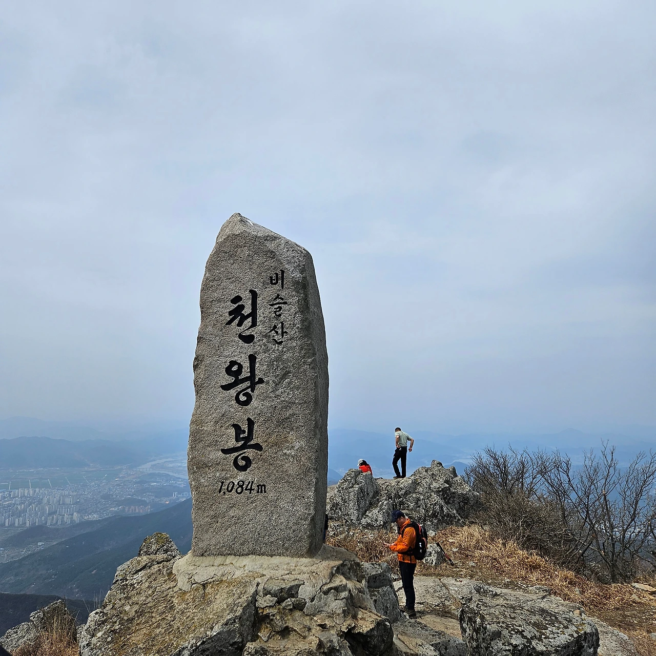 비슬산 정상석을 바로 앞에 두고 영남알프스의 추억이 떠오른다. 정상인증샷을 남기기 위하여 줄을 서있다. 이렇게 많은 사람들이 온 것이다. 10분 이상을 줄을 서서 기다려 본다. 뒤면에는 한자로 天王峯, 앞면에는 한글로 천황봉을 표시하고 있다. 주변을 돌아보고 멀리 조화봉에 있는 기상레이터 관측소도 찾아본다. 하얗게 들어선 건물이 어쩌면 이국적이지만 생뚱맞다고 생각한다. 한 번쯤 주변과 조화를 이루는 방법도 고민을 해보아야 할 것이라고 생각한다.