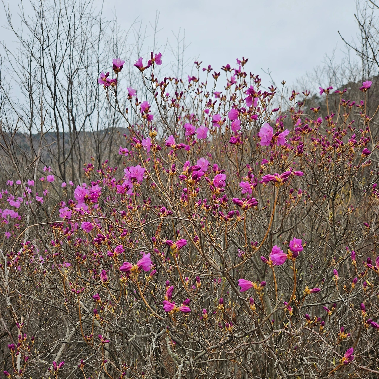 봄꽃이 많이 피어 있을 것이라고 생각하고 김포에서 온 사람도 있고, 청주에서도 온사람들이 있다. 이들의 인증샷을 우리는 남겨주었다. 그렇게 멀리 왔건만 아직은 아니다 하고 이야기하고 있다. 연 분홍색으로 산이 물드면 산은 사람이 더 많을 것 같다. 그래도 자연적으로 이루어진 군락은 유지될 수 있도록 사람들이 들어가지 못하도록 나무들이 가로막고 있다. 억새라면 헤치고 들어가겠지만 그 나무들 사이를 헤집고 들어갈 사람이 없을 것이다.