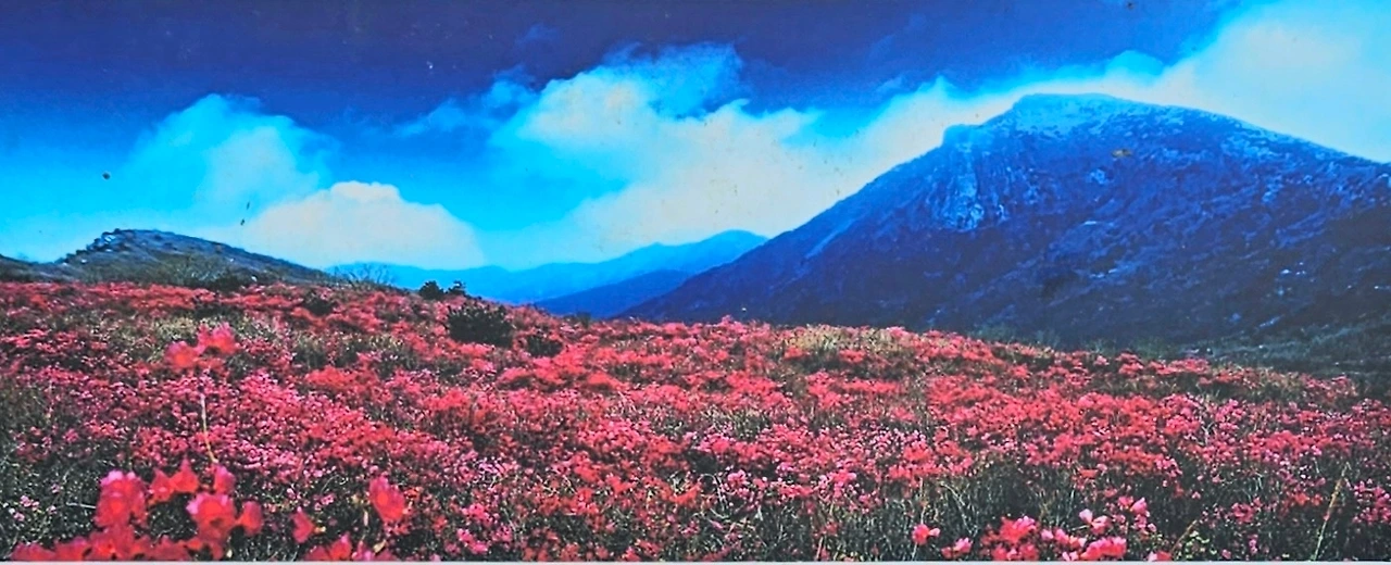 이곳은 청도군이라고 한다. 청도군에서 이정표를 잘 만들어 놓았다. 그 이정표를 보면서 달성군에 대한 아쉬움을 표현하는데 청도군 쪽에서 올라온 사람들이 맞장구를 치면서 우리는 대구사람인데 청도에서 올라왔지만 그것이 맞다고 한다. 월광봉을 스치듯이 사람들이 지나가고 있지만 조망의 맛집이라고 할 수 있다. 이곳에서 바라다보는 진달래군락지가 더 멋있다고 하여야 할 것이다. 비슬산 정상을 바라다보고 대견봉을 보면서 대견사로 다니는 사람들을 바라다볼 수 있기 때문이다. 그래서 이곳에서 바라다본 진달래 군락지의 모습을 사진 기술을 이용하여 J가 살짝 바꾸어 보았다. 장관이다.