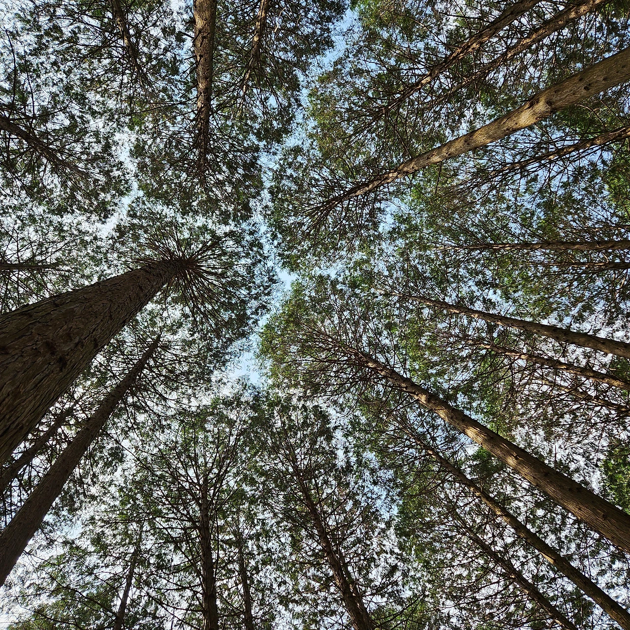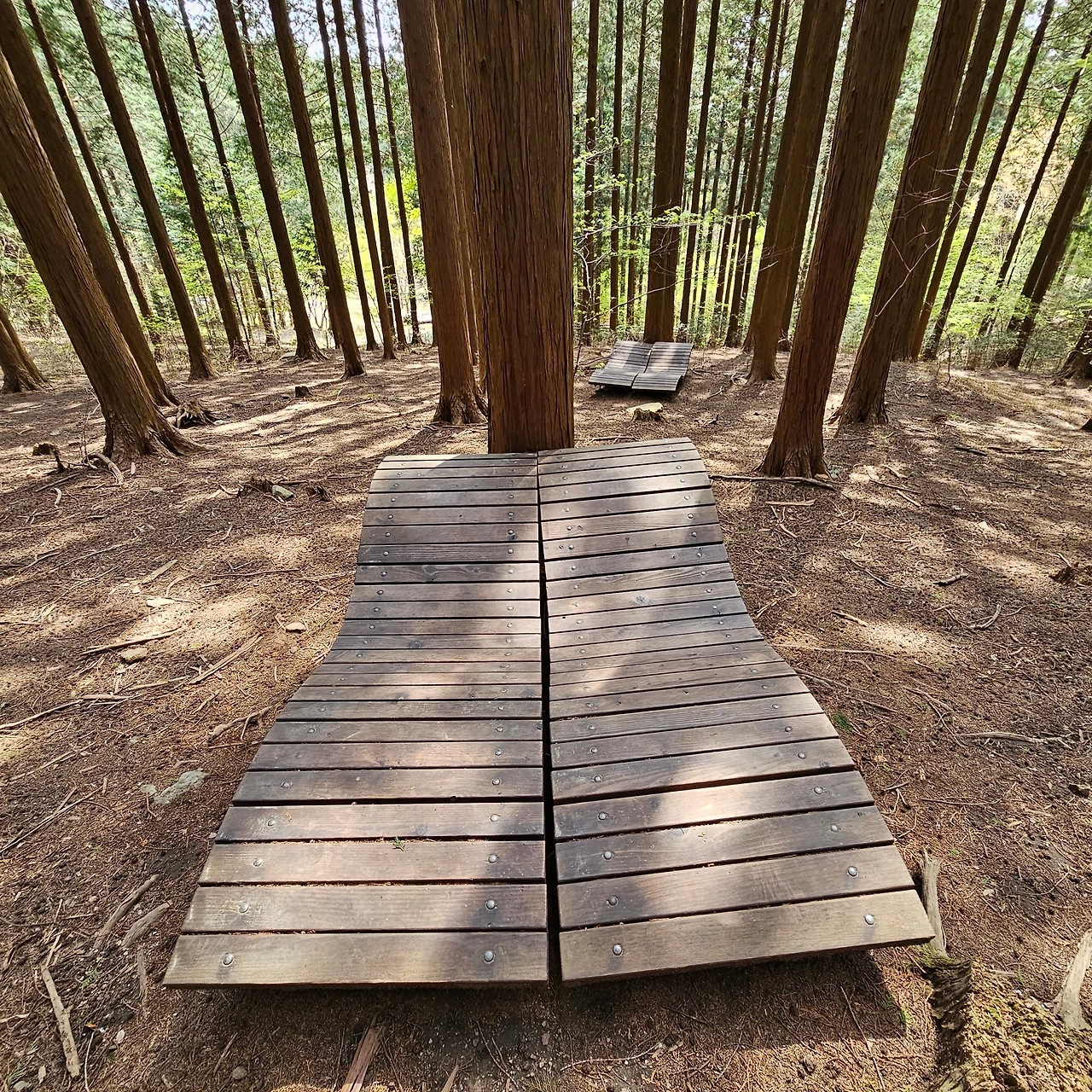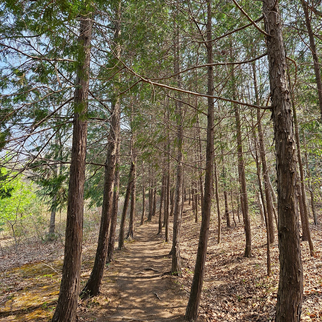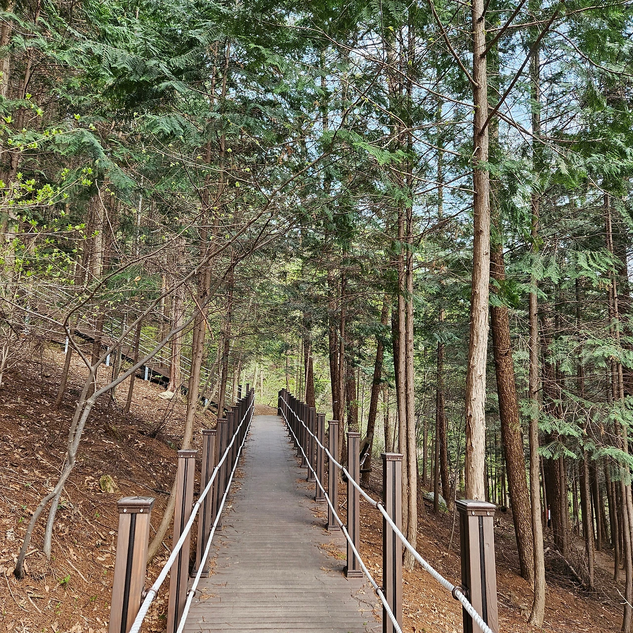 이웃한 산소숲길을 걸어본다. 산소가 많이 나는 나무는 어린나무들이라고 한다. 그리고 그 나무들 주변에 자연적으로 자라나고 있는 묘목을 본다. 이렇게 많이 나는 어린나무들이 자라고 그것을 옮겨 심을 것이라고 본다. 휴양림이 있다고 하여 내려가보니 별도로 감흥이 없다. 아무도 없는 곳에 내려가서 즐기면서 숲을 가까이 보고 그것을 알고 다시 올라온다. 그리고 우물이 있는 주변으로 돌아오는데 숲내음길이 있다. 오솔길을 걸으면서 하늘을 향해 뻗은 편백과 삼나무 사이를 걷고 숲내음길로 들어선다.