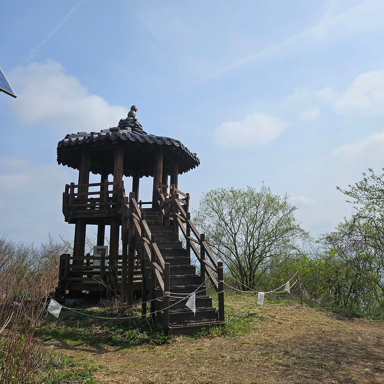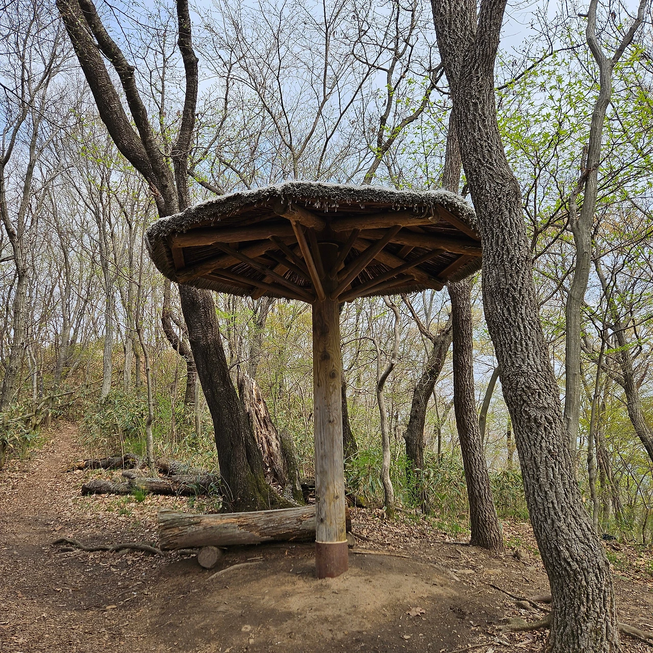 우물터로 내려가는 이정표가 있는 곳에 쉼터가 있다. 그 쉼터의 정자는 초가지붕을 얹고 있는 햇빛 가리개다. 그 모양새가 특이하여 한번 앉아 보았다. 그리고 내려간다. 이제부터는 힐링이다. 아무 생각 없이 걷고 즐기는 것이다. 이길도 걸어보고 저길도 걸어보고 삼나무와 편백나무 숲을 걸어 보는 것이다. 내려오면서 야생화도 담고 다람쥐도 담는다. 다람쥐가 미어캣처럼 포즈를 취하고 있어서 사진으로 담는다. 다람쥐를 사진으로 담기에는 인내가 필요하다. 그 인내하는 우리를 위하여 포즈를 취하여 준다.