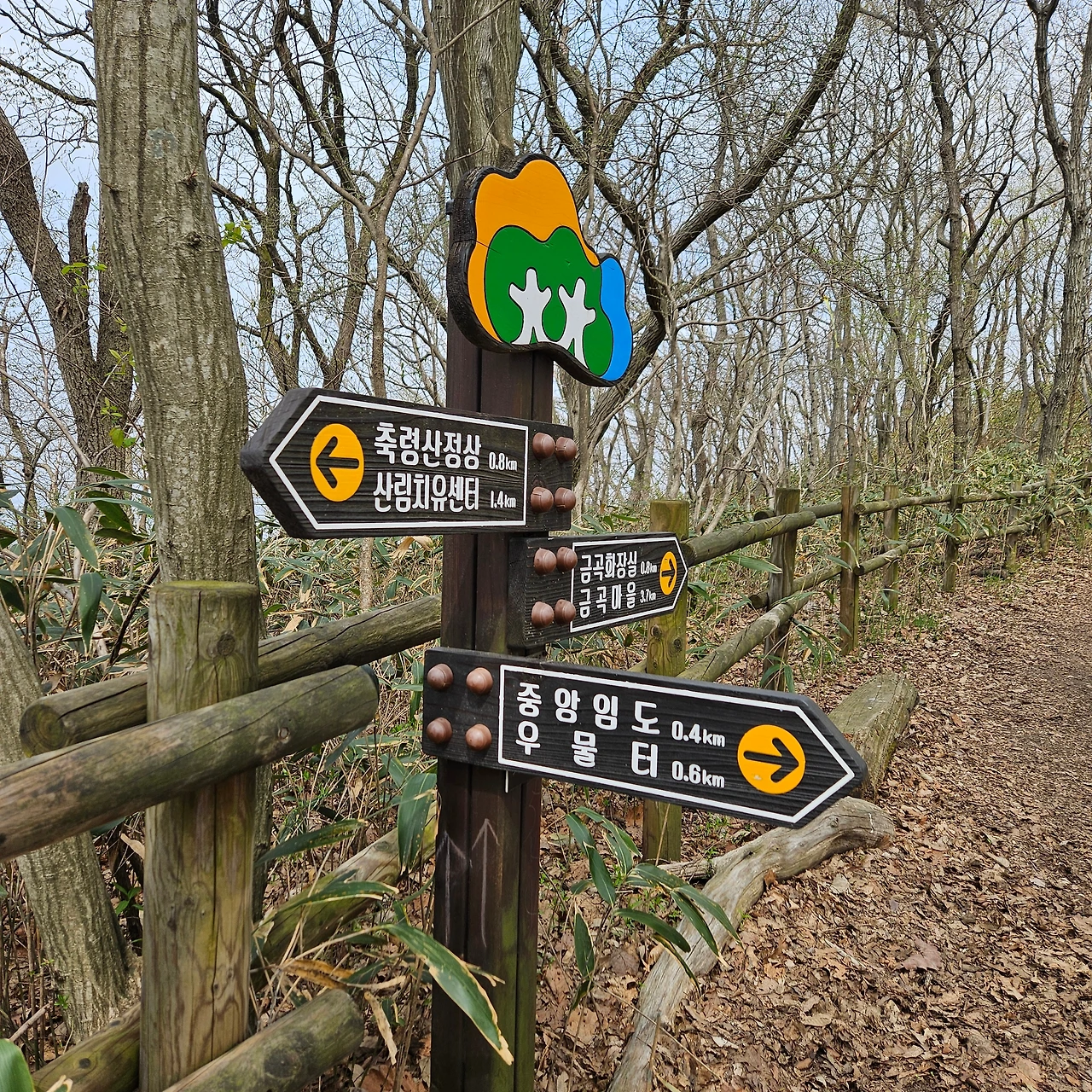 그곳에 데크가 있다. 무장애길이 있다. 데크에 이정표가 붙어 있다. 이곳에 임종국 선생의 수목장지가 있다. 그 앞에 전망대가 있는데 들어갈 수 없도록 안전테이프가 설치되어 있다. 호기심이 많은 우리들은 궁금하지만 지나친다. 수목장지 앞에 이상한 조형물이 있는데 무엇을 의미하는지 모르겠다. 그리고 걸었다. 데크는 중앙임도로 연결이 된다. 중앙임도로 간 후 다시 데크로 들어선다. 오늘 그래도 열심히 걸으면서 똑같은 길을 걸어본 것이 100m 정도밖에 없다.