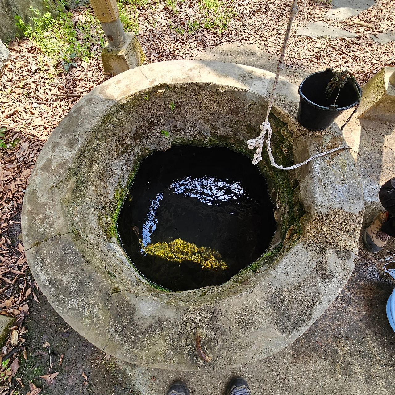 그리고 우물이 있다. 예전에는 사용하였으나 지금은 사용하지 않는 우물이다. 이정표에는 우물 터라고 표시되어 있지만 우물이 있다. 우리 어릴 적 어머니들이 우물에서 물을 긷고 그리고 1년에 3-4차례 청소를 하였는데 이곳은 청소를 하지 않은 흔적이 있다. 우물이 깊은 곳도 있지만 산속에 있는 우물은 그렇게 깊지 않다. 나는 산속에서 자랐기에 옛 생각이 난다. 지인들이 두레박에서 물을 길어 손을 씻는다.