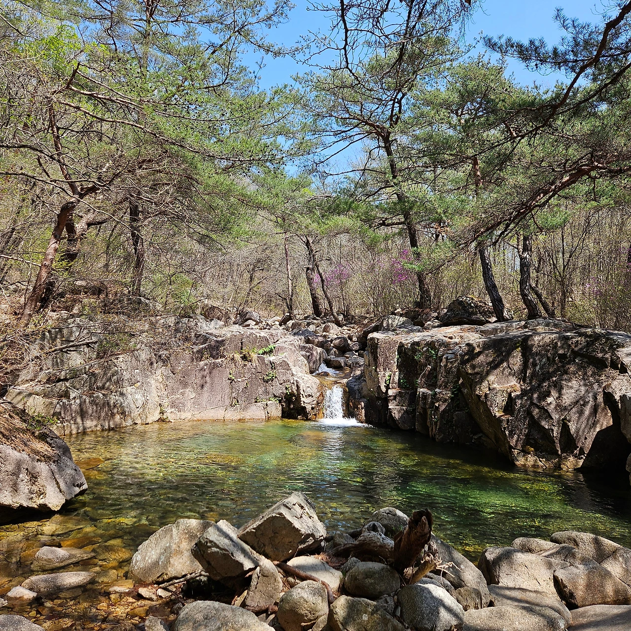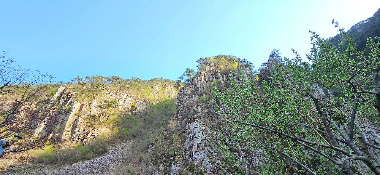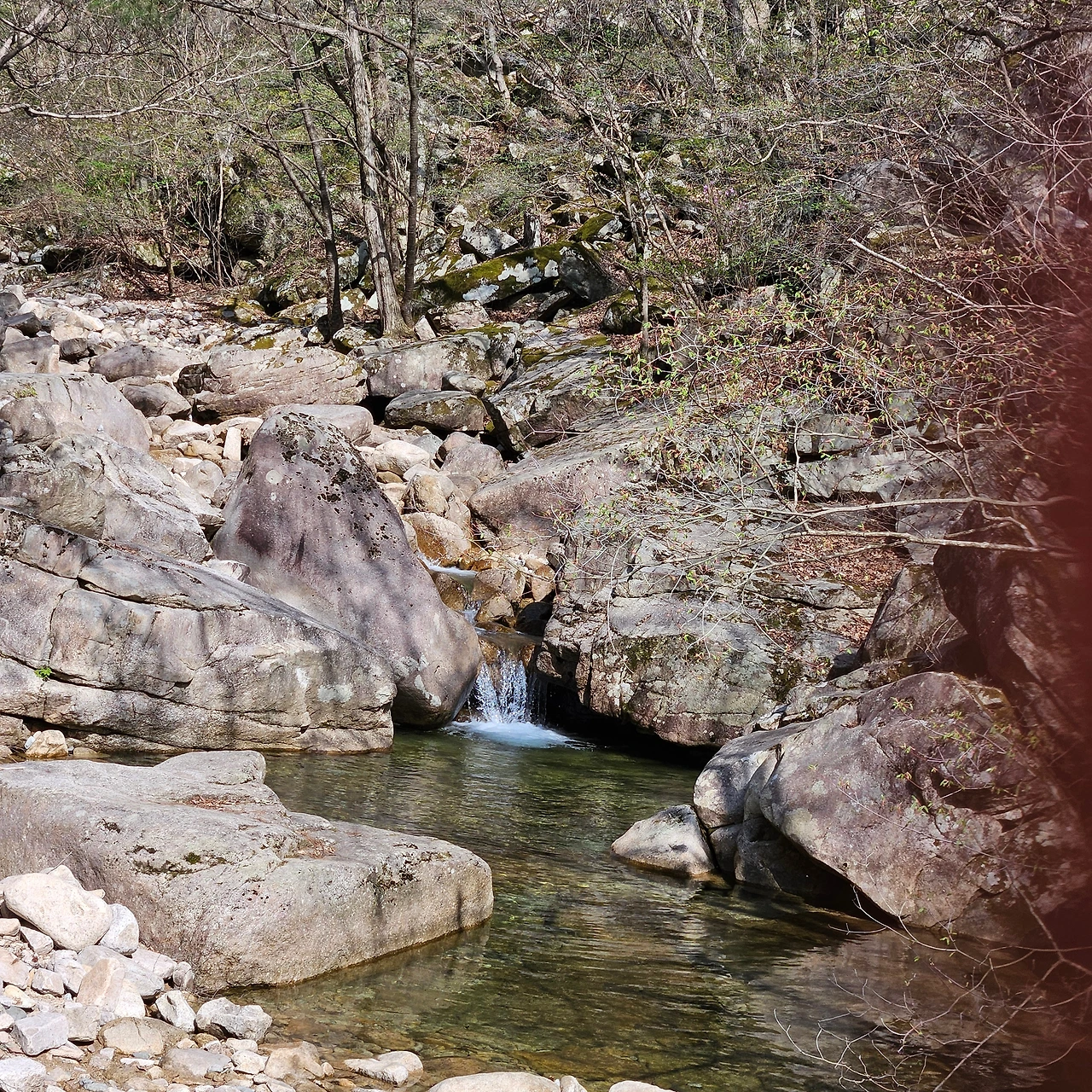 쌍곡폭포가 있다. 폭포를 위에서 내려다보는 것은 그렇게 즐겁지 않다. 폭포는 밑에서 보는 것인데 위에서 보는 것으로 전망대가 설치되어 있다. 그곳을 지나 조금 가면 폭포는 아니지만 밑에서 보는 폭포와 유사한 것이 있다. 그것이 더 아름답다. 이웃한 산벚나무와 개복숭아 나무에 꽃이 만발하다. 여름도 되기 전에 산은 덥다. 나무는 아직 옷을 입지 않았는데 태양은 이글거리고 등산로는 햇빛이 강하게 때리고 있다. 계곡을 들어가지 말라고 하지만 오르면서 그 더위를 이길 수가 없어서 머리와 얼굴에 시원한 물을 붓고 오른다. 이른 시간에 오르지 않고 점심을 먹고 오르는 것이 이렇게 힘들다는 것을 몸으로 느낀다. 점말이라는 곳에 도착하니 산불조심기간에 이곳에서 장성봉을 거쳐 제수리제까지가 입산통제를 한다는 안내가 있다.