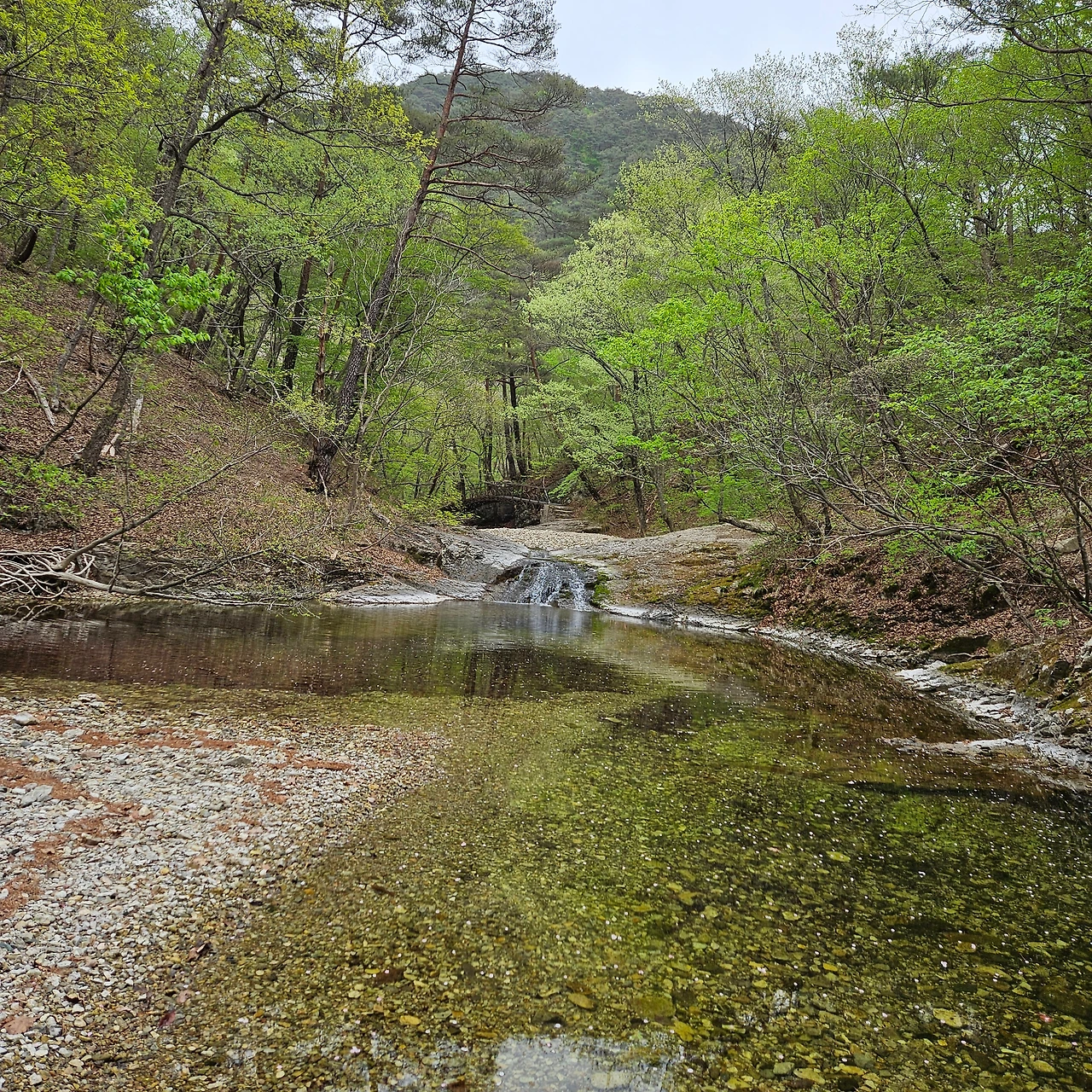 데크를 지나고 계곡에 도착하였다. 그렇게 도착을 하니 우리와 앞서거니 뒷서기니 한 젊은 사람들이 지나간다. 지나가면서 힘든 사람이 한 번 쉬어가자고 하여도 내려가니 아 힘들다 하고 이야기한다. 계곡에 도착하고서도 삼거리까지 500m를 더가야 삼거리다. 하지만, 그 길을 너무 편안한 길이다. 절구폭포의 상류로 물의 양이 많으면 절구폭포의 폭포수가 많을 것이라고 상상을 한다. 폭포수가 많으면 장관을 이룰 것이라고 상상을 해본다. H는 절구 폭포까지 한번 걸어본 기억이 있다고 한다. 하지만, 바로 위에 있는 용연폭포를 보지 않았다고 한다. 후리메기 입구를 지나서 오른쪽으로 가면 용연폭포다. 주왕산에서 가장 큰 폭포이고 이중폭포이다.