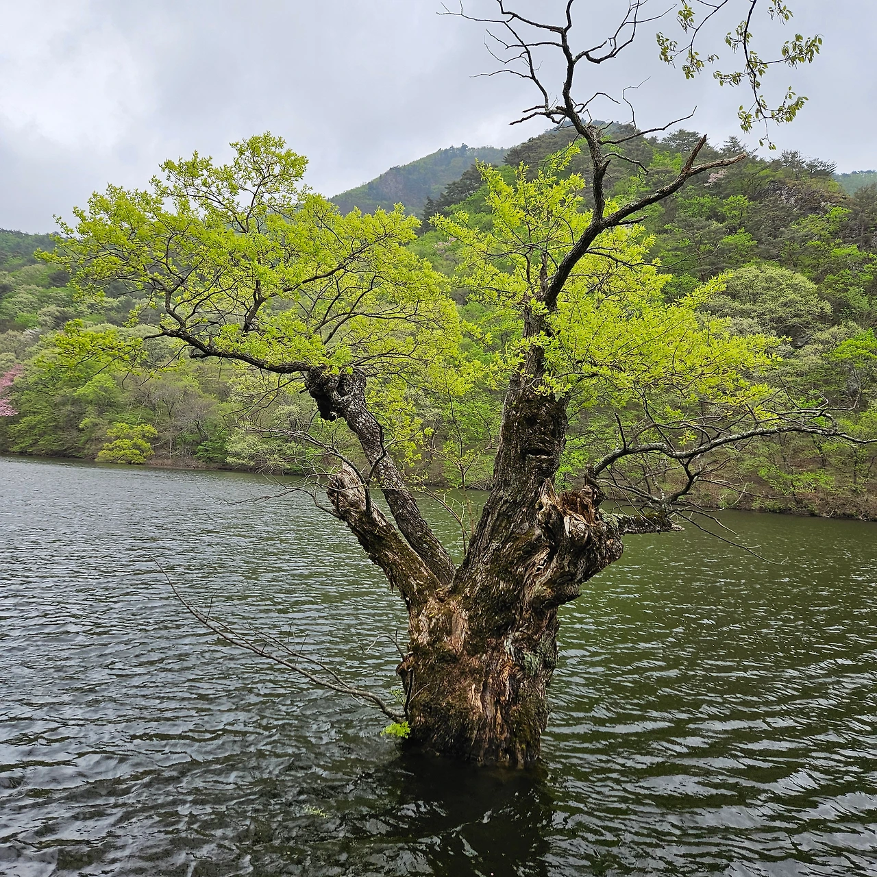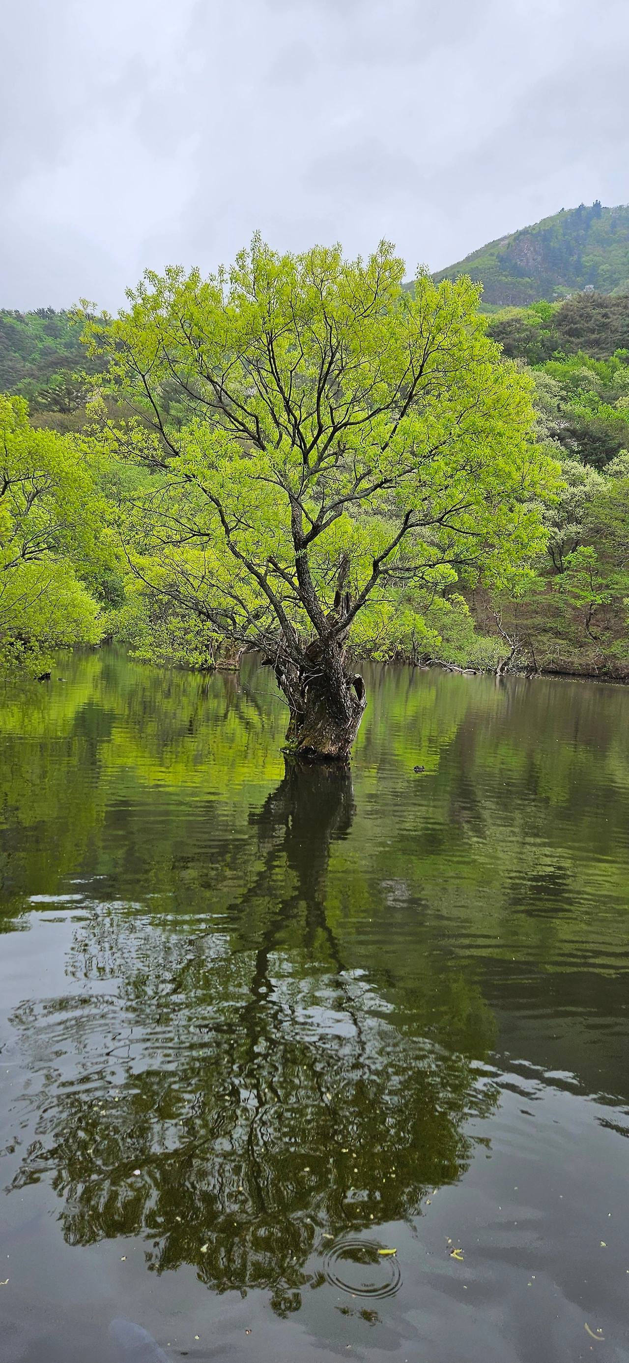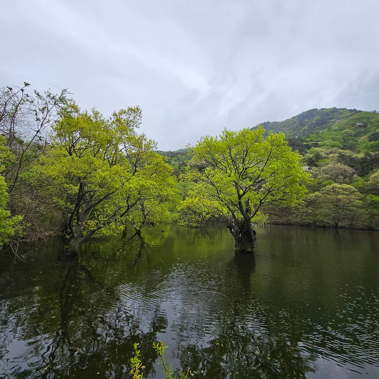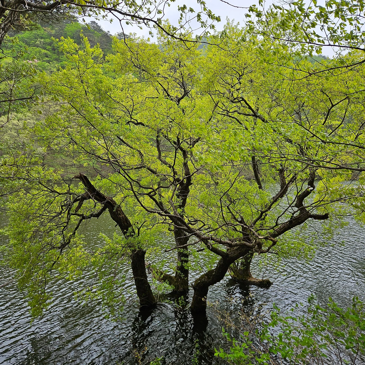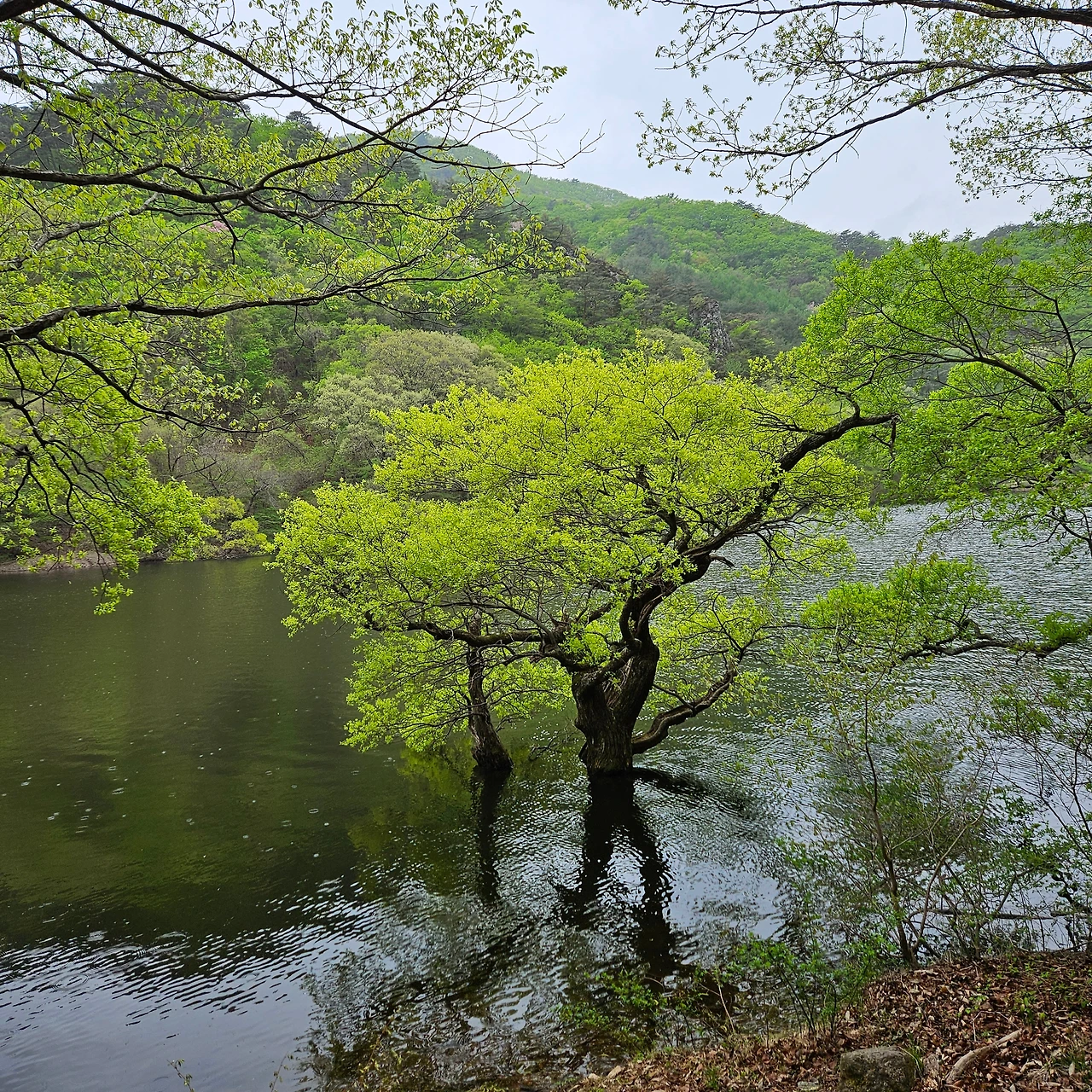 주산지를 보러 온 사람들이 물에 잠긴 왕버들을 배경으로 하나 둘 셋을 외치고 있다. 우리는 그 틈이 아닌 스스로 하나둘 외친다.