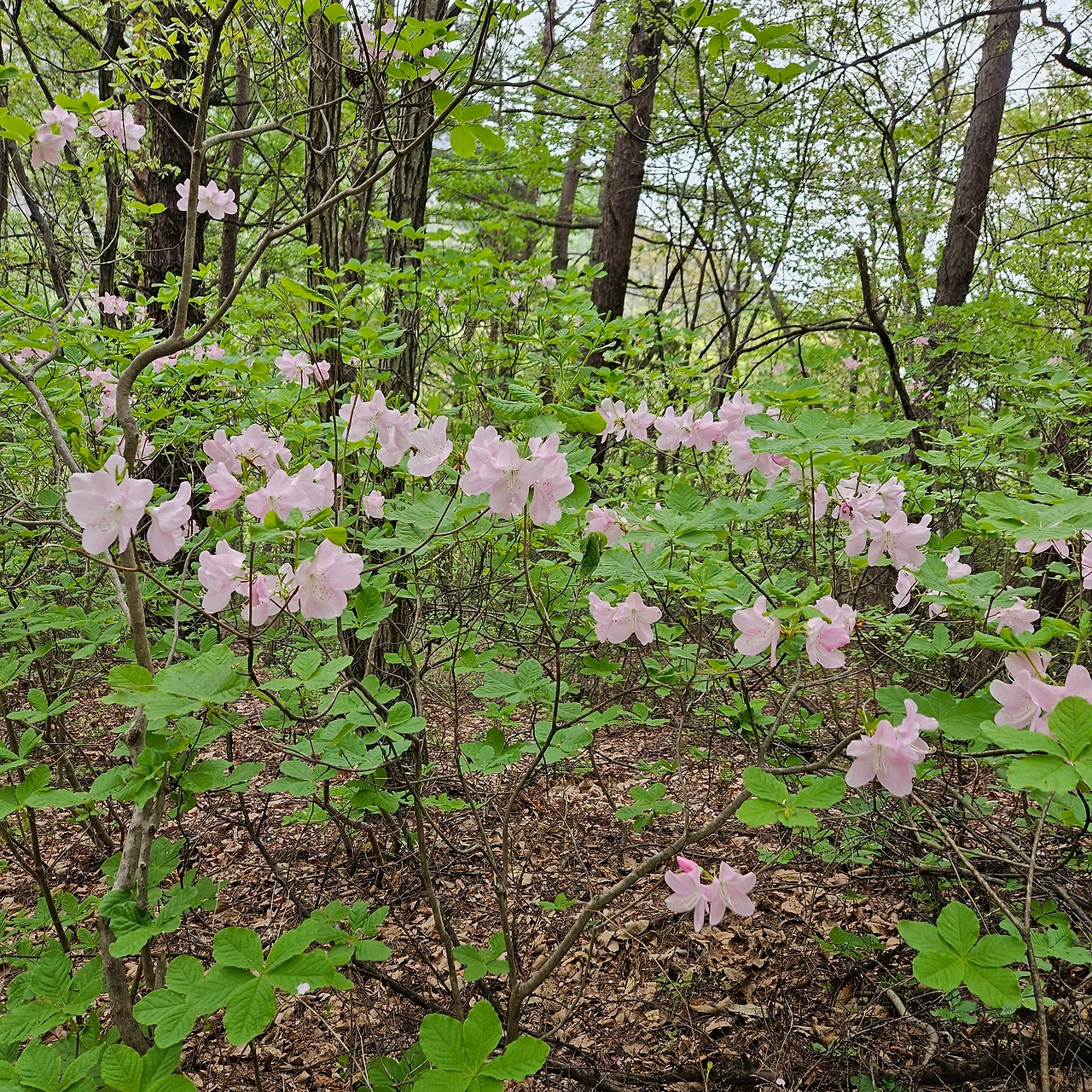 주봉 가는 길에서 인증을 남기고 한발 한발 올라선다. 오르는 사람들이 있는데 우리들보다 젊다. 그런데 준비 없이 왔다가 오르는 것 같다. 산을 오르면서 준비 없이 왔다는 것은 운동화를 신고 배낭도 없이 물병하나 들고 오르는 것이다. 그래도 해발이 700m 넘는 산인데 약간의 준비가 필요하다고 본다. 먹을 것은 필요 없다고 하여도 배낭은 필수라고 본다. 내려오면서 넘어지면 그래도 허리를 보호할 수 있기 때문이다. 오르면서 철쭉이 있어 그대로 담는다. 그것이 수달래 즉, 산철쭉이라고 보아야 할 것이다. 연분홍의 철쭉이 있고 조금 오르면 진달래가 있다. 그리고 가침박달이 있었다. 병꽃도 있다. 봄은 야생화의 박람회장이다.