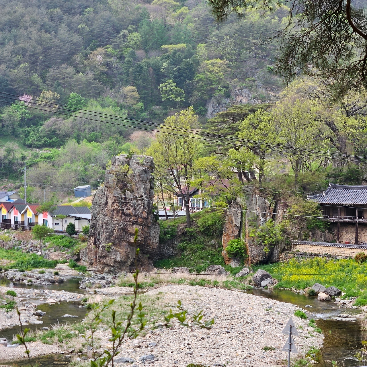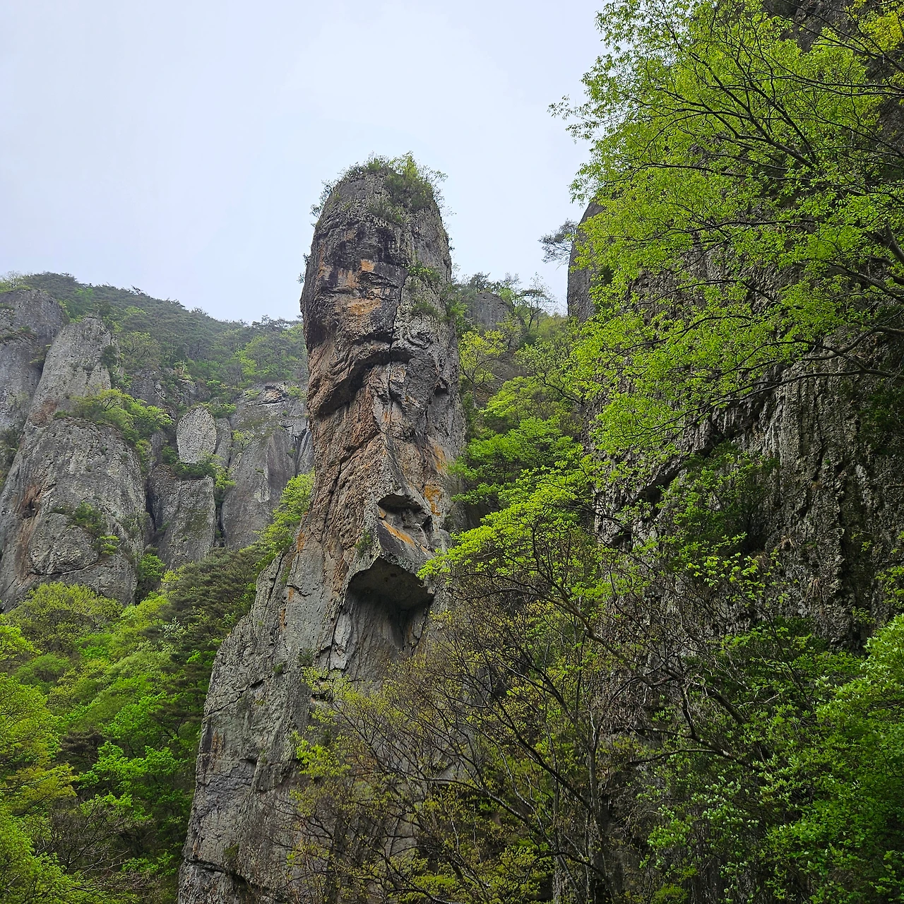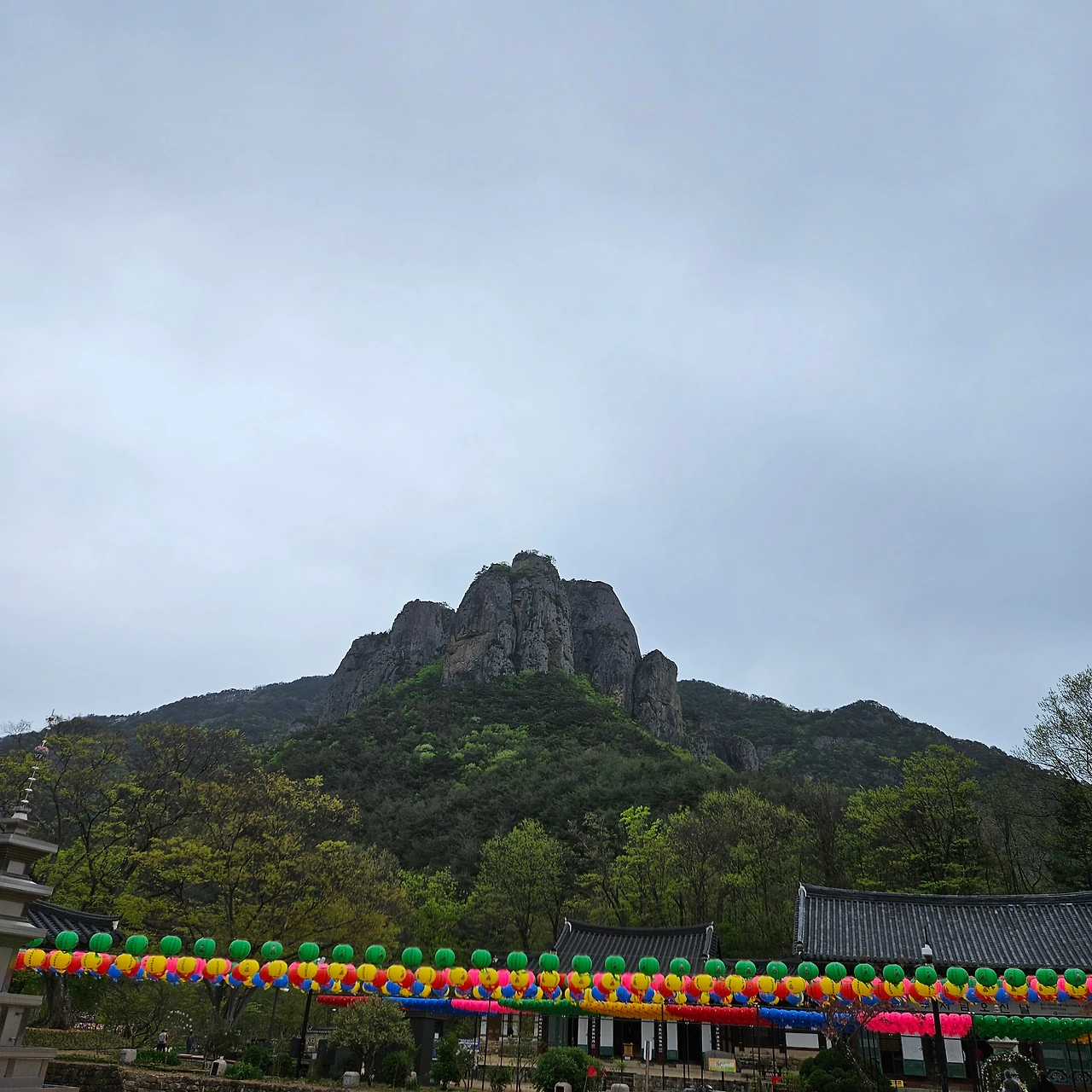 입구까지 가면서 기암을 보고 아들바위를 본다. 남아선호사상이 그대로다. 이제는 아들바위가 아닌 자식바위라고 하여야 한다는 H의 말이 일리가 있다. 대전사에서 100m 지점에 있다. 대전사에 도착하여 뒤를 돌아보니 아침에는 흐릿하게 보였던 기암이 더욱 선명하게 보인다. 그 대전사는 이제 얼마남아 있지 않은 부처님 오신 날을 기리기 위한 연등이 절마당을 가득 채우고 있다. 이웃한 종루에 어린 친구가 종을 무심하게 한번 치지만 누구 하나 나무라는 사람 없다. 절의 넉넉함이 우러나온다.
