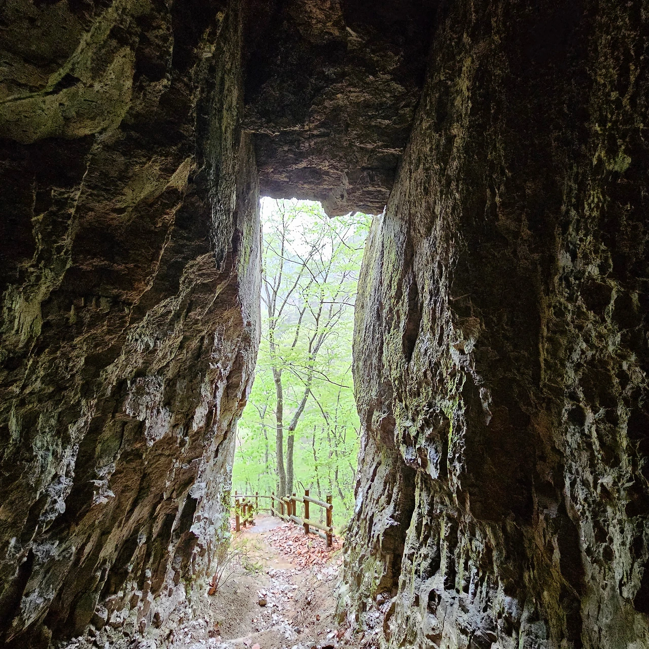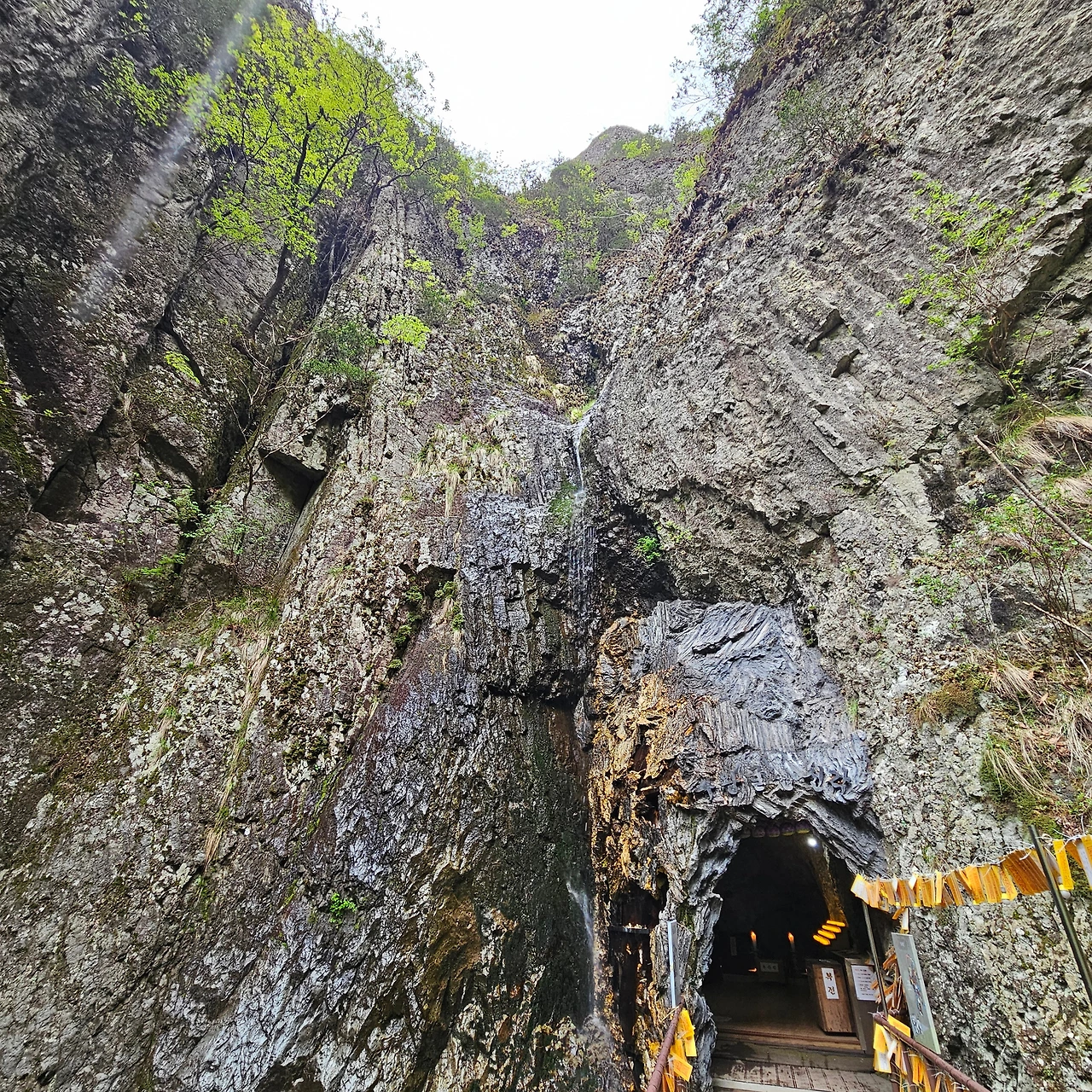 주왕암을 지나고 바로 이웃한 무장굴로 방향을 잡는다. 왕복 800m이다. 오르지도 않고 옆으로 이동하였다가 다시 오는 길인데 어떤 사람은 갔다가 오는 것이 싫다고 가지 않는다고 하였다. 주왕의 부하들이 군사훈련을 하고 무장굴에 무기를 숨겨두었다고 한다. H는 옆의 공터가 더 좋지 않냐고 얘기한다. 위에 바위가 있어서 비를 그대로 가리고 넓은 공간도 나오기 때문이다. 무장굴에서 밖을 보면 제한적으로 밖이 보일 뿐이다. 우리가 그 동굴 속에서 밖을 보는 것이 제한적인 이유가 그것이라고 할 것이다. 다시 돌아와서 맞은편에 있는 영화굴을 가고 싶지만 비가 오고 있어서 오르지 않고 입구로 나간다. 우리가 오늘 주산지를 또 가야 하고 영화굴은 200m 이상을 올라야 하기 때문이고 사람들이 그렇게 찾지 않아 어려움이 예상되기 때문이다.