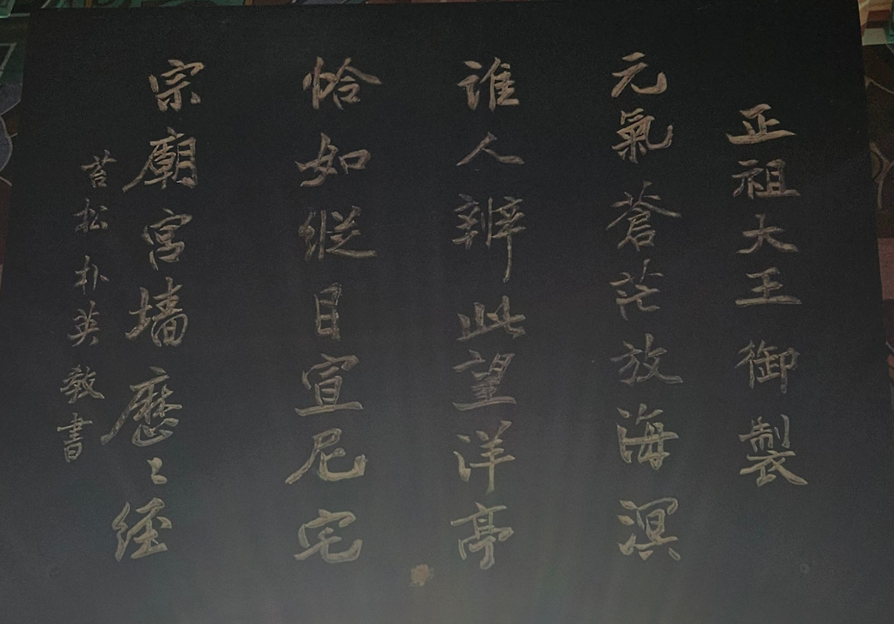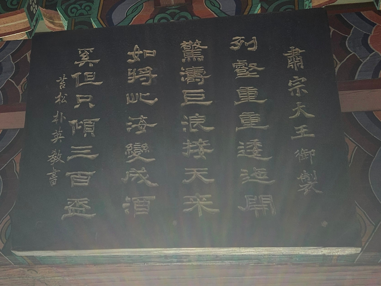 [정조] 태초의 기운 아득히 바다에 풀어지니/ 뉘라서 이곳에 망양정을 알 수 있으리/ 흡사 문선왕 공자의 집을 훑어보듯/ 종묘며 담장 하나하나 훑어본다