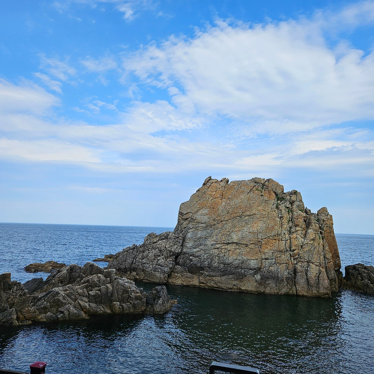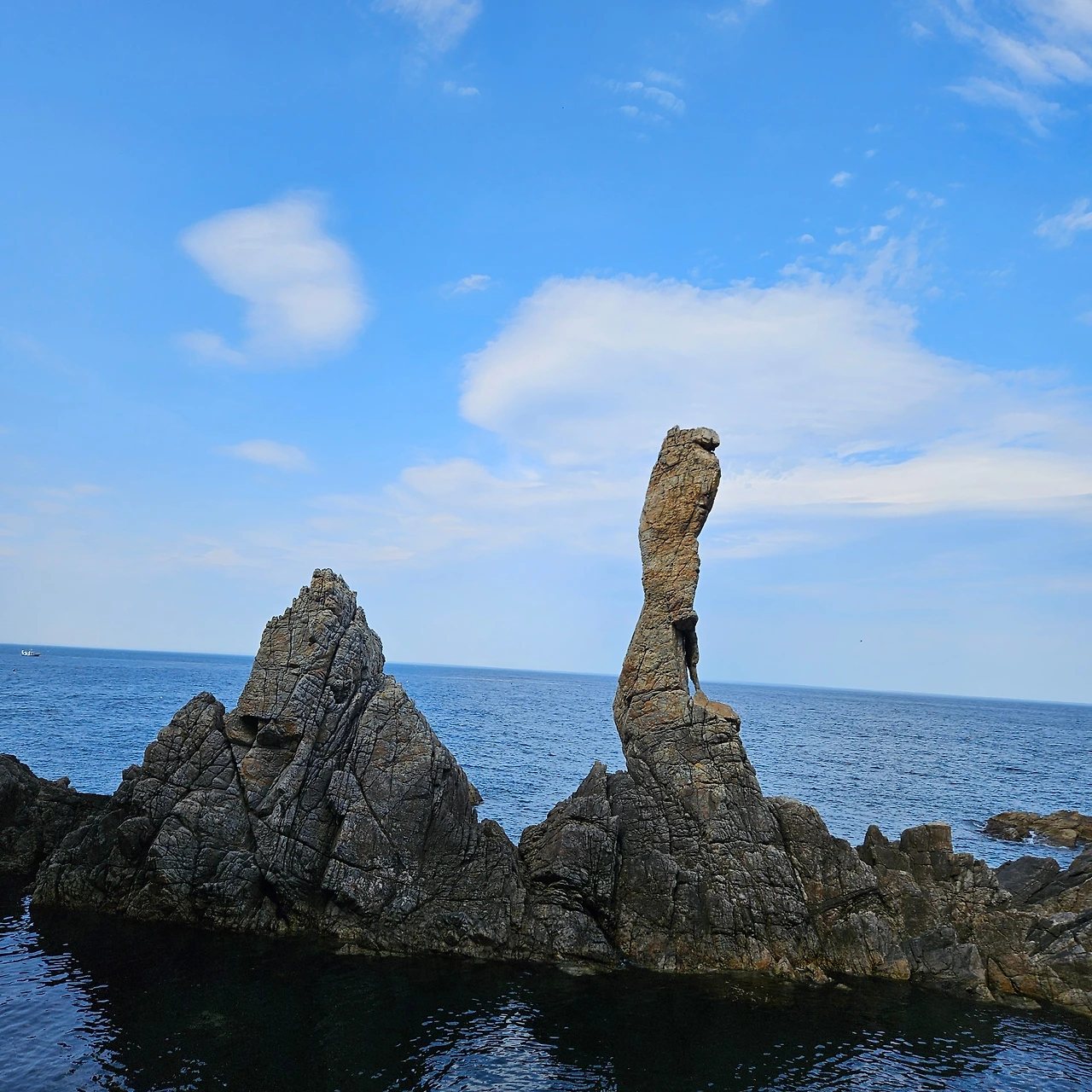 황영조선수의 고향이 이곳이라는 것과 이곳이 아름다운 경치를 갖고 있다고 할 수 있다. 사람들이 사진 맛집에 서서 사진을 담는다. 우리도 동참을 한다. 촛대바위가 저렇게 서있기를 얼마나 했을까 우리 조상들이 이곳에 국가를 세우기 전부터 있었을 것이다. 억만 급의 역사를 가졌다고 보면 될 것이다. 그리고 거북이가 바위를 기어오르고 있다. 그 모습을 찾아서 안내를 하고 있다. 나는 마지막 바위를 보면서 공룡의 한 모습과도 같다고 할 수 있다고 나는 추측을 한다.