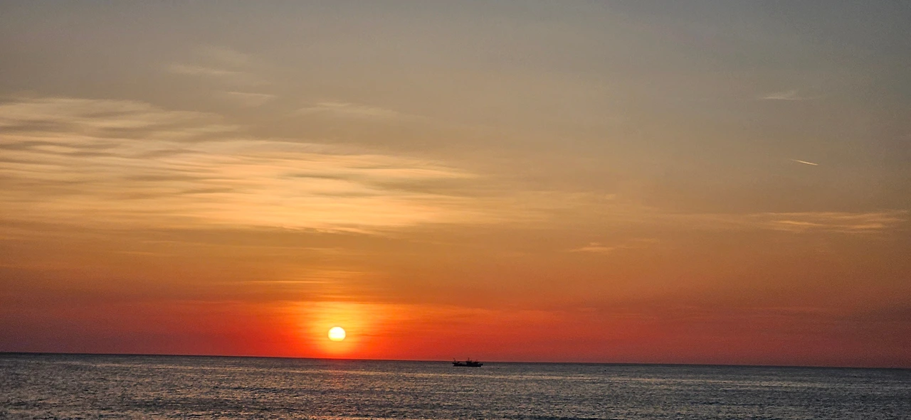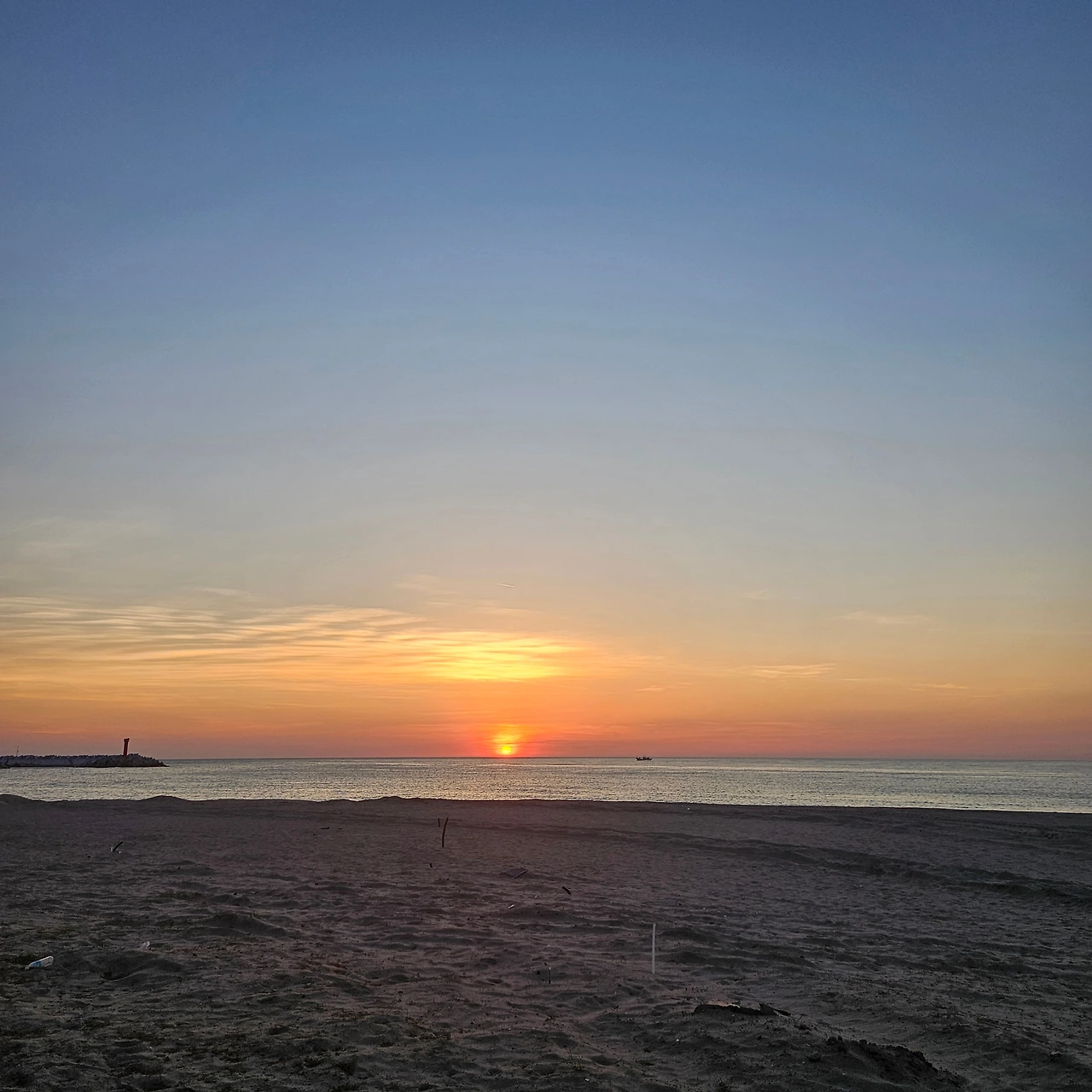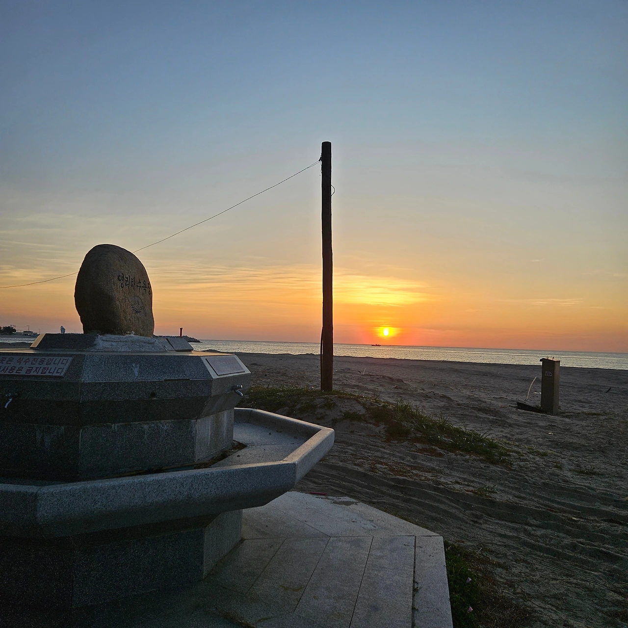 강구항을 지나면서 강구천이 있고 그것을 따라 내륙 깊숙이 들어있는 영덕읍을 지난다. 영덕의 해맞이 공원은 별도의 해안도로를 따라가야 한다. 그래서 우리는 7번 국도를 따라 올라가면서 고래불해수욕장을 목적지로 정하고 이동을 하였다. 친구들은 좀 더 빠르게 운전하라고 하지만, 나는 안전운전이 최고다 과속은 생명을 단축시킬 뿐이기에 내가 운전하는 것인 만큼 이동을 한다. 도착시간은 5시 20분이다. 그런데 이동을 하면서 붉은 기운이 올라오고 있어서 마음이 급해진다. 고래불 해수욕장 이정표가 보인다. 7번 국도에서 탈출을 하고 바로 정면으로 가니 영리 해수욕장이다. 그곳에서 일출을 보았다. 뜨는 해를 보면서 그저 즐긴다. 우리가 소란스럽게 도착을 하여서 그런지 차박을 하고 있는 사람 몆 명이 나온다.