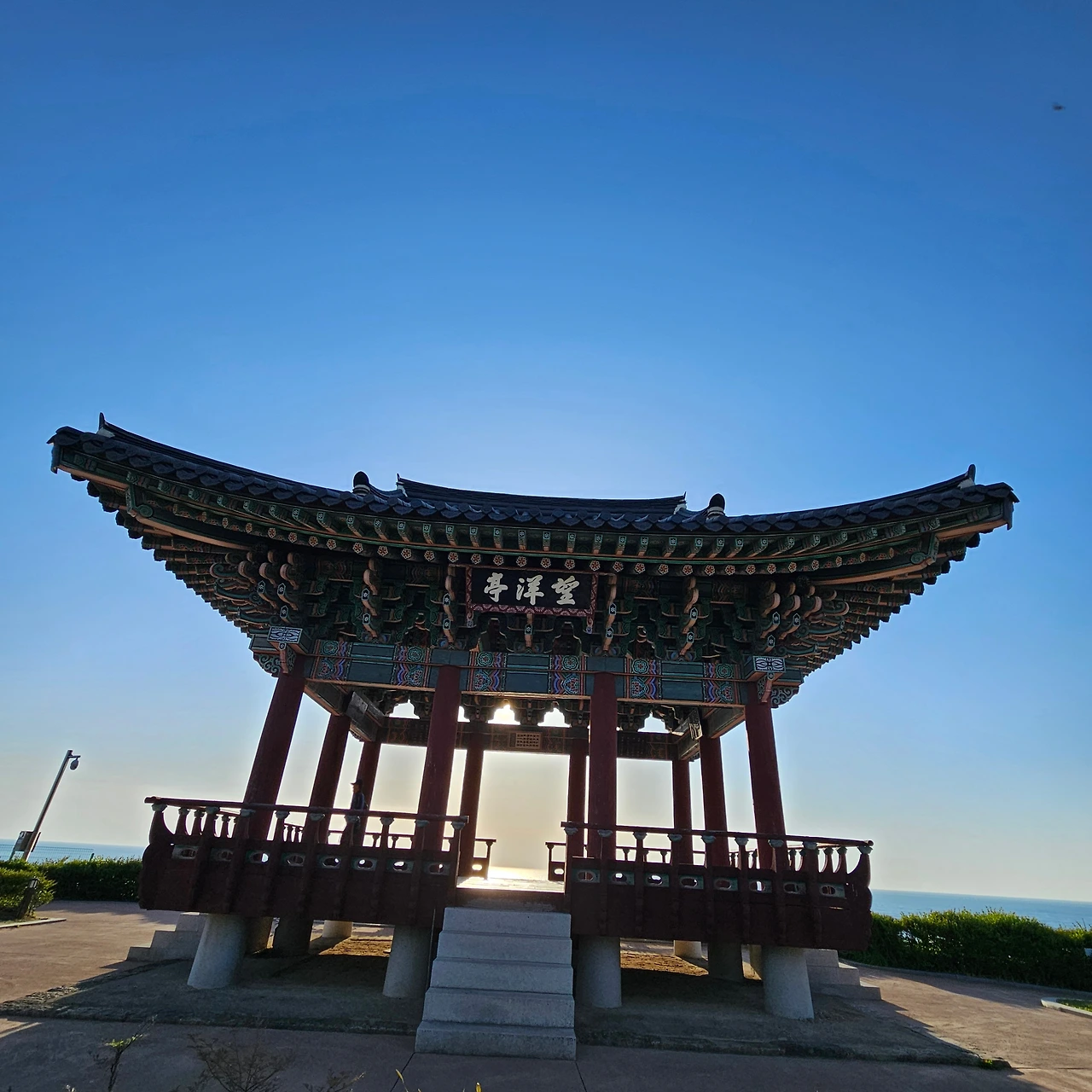 망양정을 올라보니 잘 가꾸어진 공원이다. 그 공원을 산책해 본다. 망양정 해맞이 광장이 있는 곳으로 이동을 하여 그곳을 둘러본다. 바람소리길이 있고 대종이 있다. 소망나무 전망탑이 있다. 아무도 없는 곳에 3명이 돌아다니면서 이곳도 담고 저곳도 담는다. 바람소리길에서 종을 쳐보는 동심도 경험을 해본다. 작약을 해당화로 착각을 해서 저것이 해당화야고 J가 이야기하니 H가 작약이라고 한다. 그래도 식물에 나보다 뛰어난 사람이 있으니 만족이다. 망양정을 배경으로 인증샷도 남긴다. 멀리 있는 망양정이 더 멋있어 보인다. 바람소리길에 바람이 불면 은은한 소리가 들린다. 풍경소리와 같다.