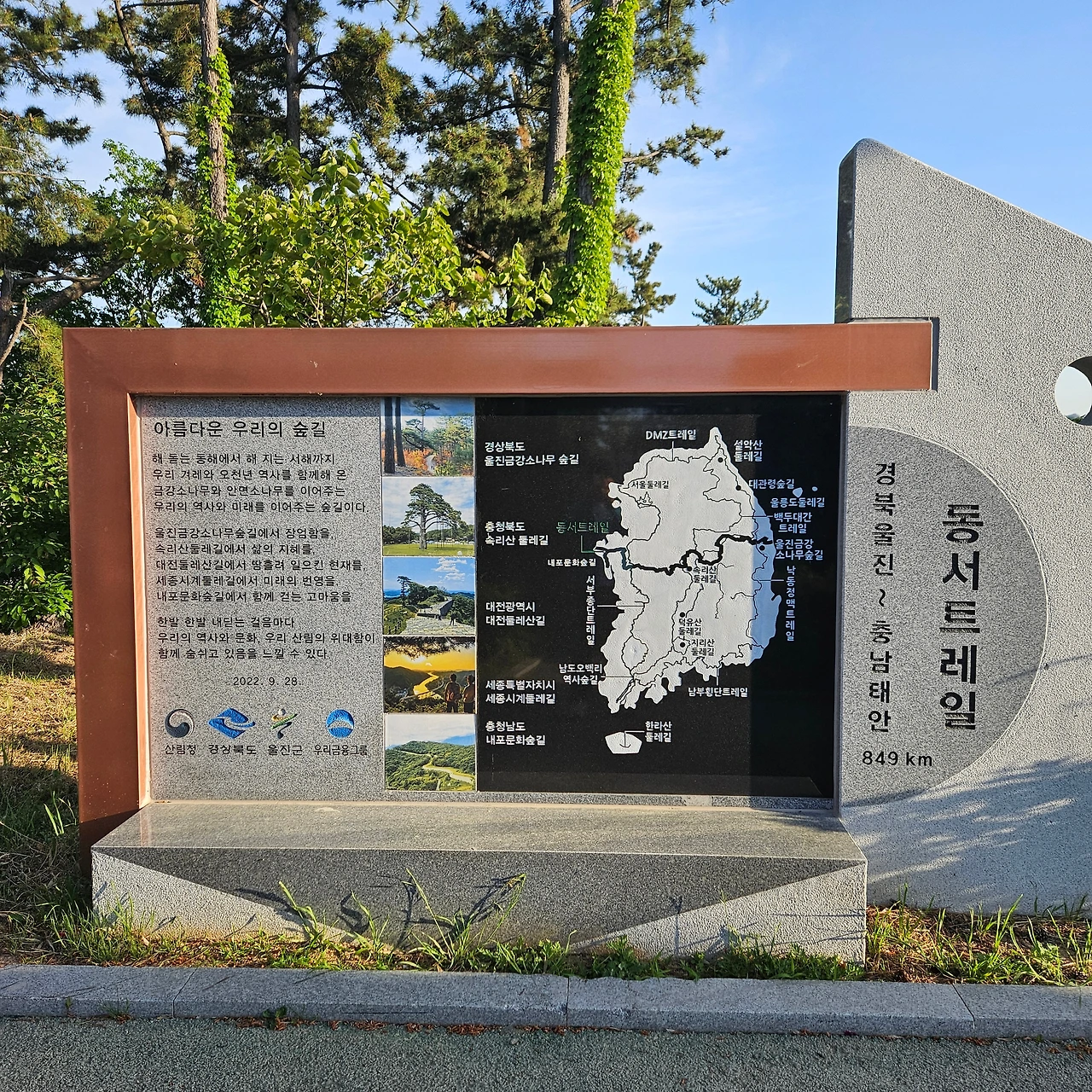 7번 국도를 벗어나 울진읍내로 들어와서 성류굴이 있는 곳으로 이동하다가 방향을 망양정으로 잡는다. 망양정으로 가기 위하여 좌회전 좌회전 하면서 갔다. 그런데 우리는 잘못 갔다. 그런데 그곳이 망양정 해수욕장 바로 앞이었다. 그곳이 잘되었다. 망양정 해맞이 공원이 있는 주차장은 다른 곳에 있다. 좌회전 좌회전 하다가 직진이다. 그러데 우리는 좌회전을 하여서 간 것이다. 잘못된 길이지만 그곳이 좋은 곳이었다. 내가 변산반도를 갈 때에도 목적지를 잘못 설정하여 그곳의 멋진 경치를 보았는데 오늘도 근처의 멋진 경치를 보았다. 그곳에서 동서트레일의 시발점을 확인하였다. 산림청에서 이곳에서 출발하여 태안에 도착하는 걷는 길을 만들었다고 들었는데 오늘 처음 그 실체를 본다. 망양정이 있는 언덕 위로 올라간다. 그 언덕 위에 정자에서 망망대해를 바라보는 것이다. 바다를 보는 것으로만 시원하다는 느낌이 있을 것이다. 이곳이 지진해일 대피소라고 한다.