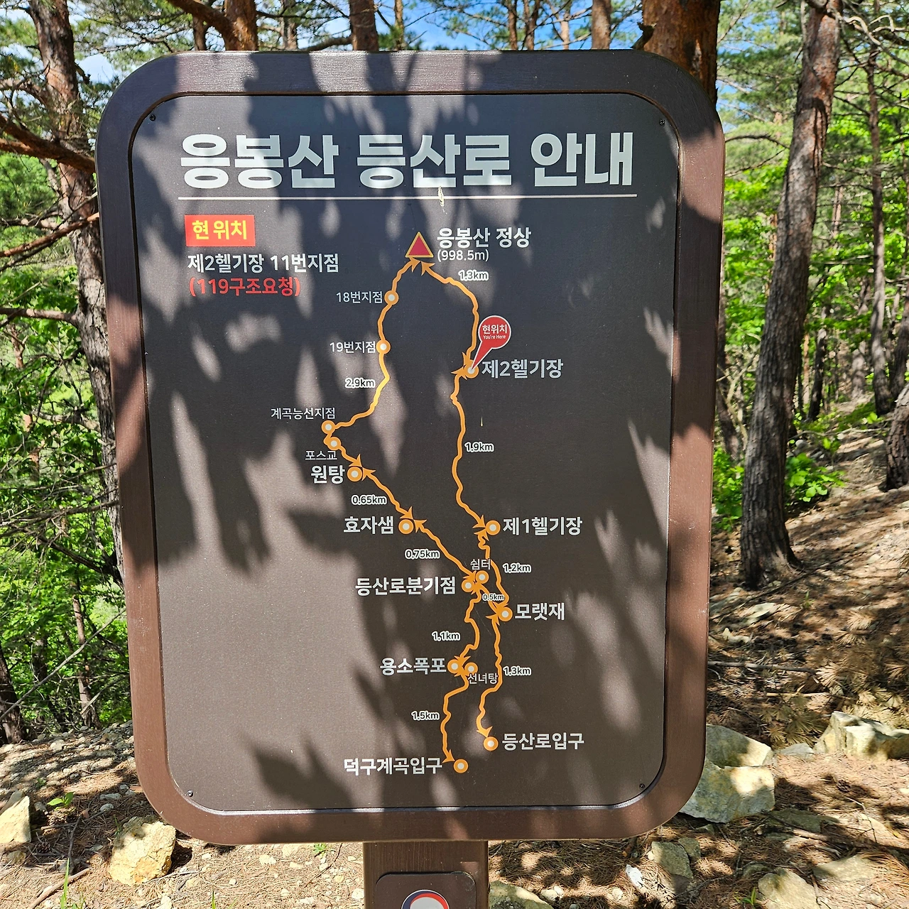 이제는 2년 전 산불이 난 흔적을 그대로 보면서 살아남은 나무와 살려고 노력하는 나무와 생을 마감한 나무를 보면서 응봉산을 오른다. 응봉산은 해발이 998m이고 출발지점이 200m 정도 되지만, 입구에서부터 정상까지 5km 정도여서 능선을 따라 걷는 길은 그렇게 가파르지 않다고 보아야 할 것이다. 2년 전 산불의 상흔이 있어서 곳곳에 고사목도 있고 불에 그을린 나무도 있지만 생을 유지하려고 나무도 있다. 그것을 보면서 오른다고 보아야 할 것이다. 응봉산 산행기를 보면 대부분은 그렇게 많은 내용이 없다. 그것은 조망이 거의 없어서일 것이다. 우리도 그것을 느꼈지만 우리는 소나무 중에 살아남은 나무들을 보고 안타까운 나무들도 보면서 산불의 무서움을 그대로 체험하였다고 보아야 할 것이다.