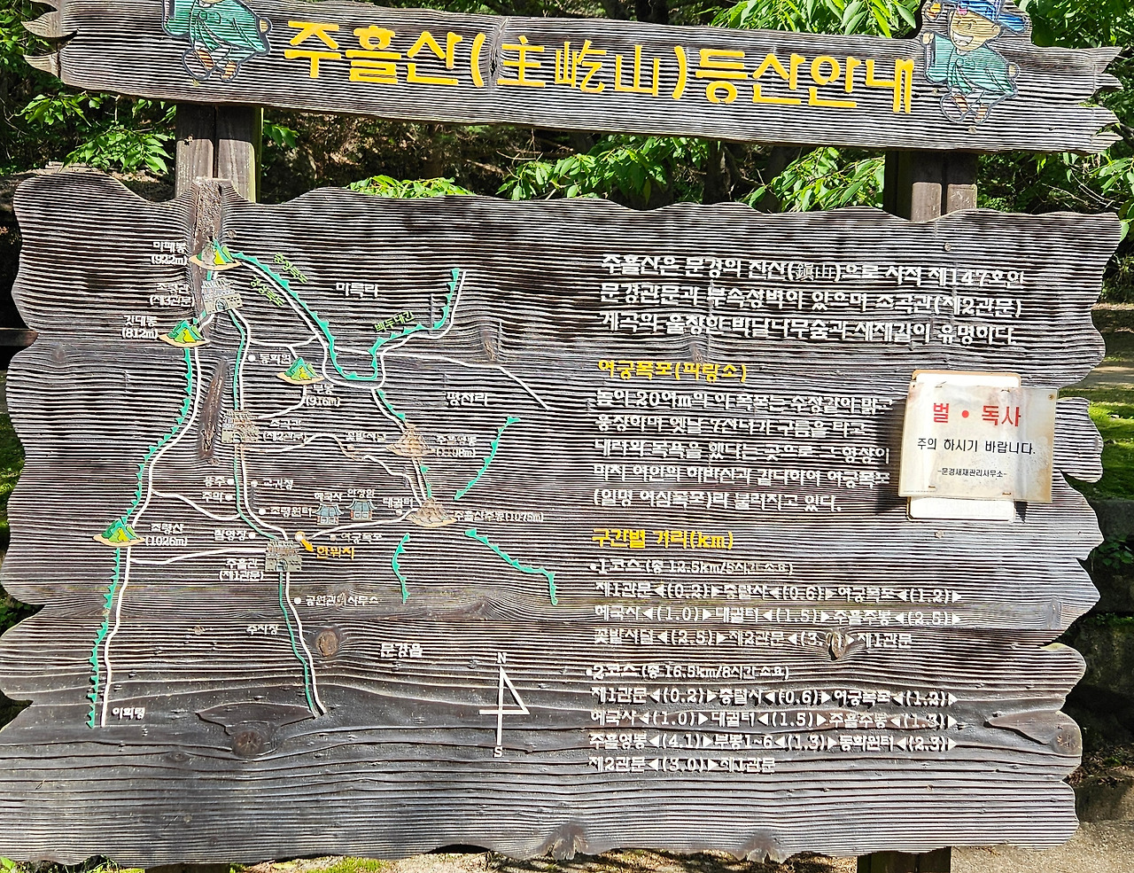 오늘은 당시 1일 2 산을 꿈꾸었던 주흘산을 간다. 당시에는 쉽게 오르고 쉽게 내려오는 등산로를 설계하였지만 오늘은 가징 길게 멋있는 구간을 설계하였다. 그리고 멋진 경치와 아름다운 등산로를 그대로 체험하였다. 주흘산의 주봉을 오르고 영봉으로 간 후 백두대간을 거쳐 부봉삼거리에서 부봉을 오른 후 능선을 따라 하산하다가 문경새재길로 하산하는 코스를 설계하였다. 등산안내 지도상 2코스를 걷는 것이다.