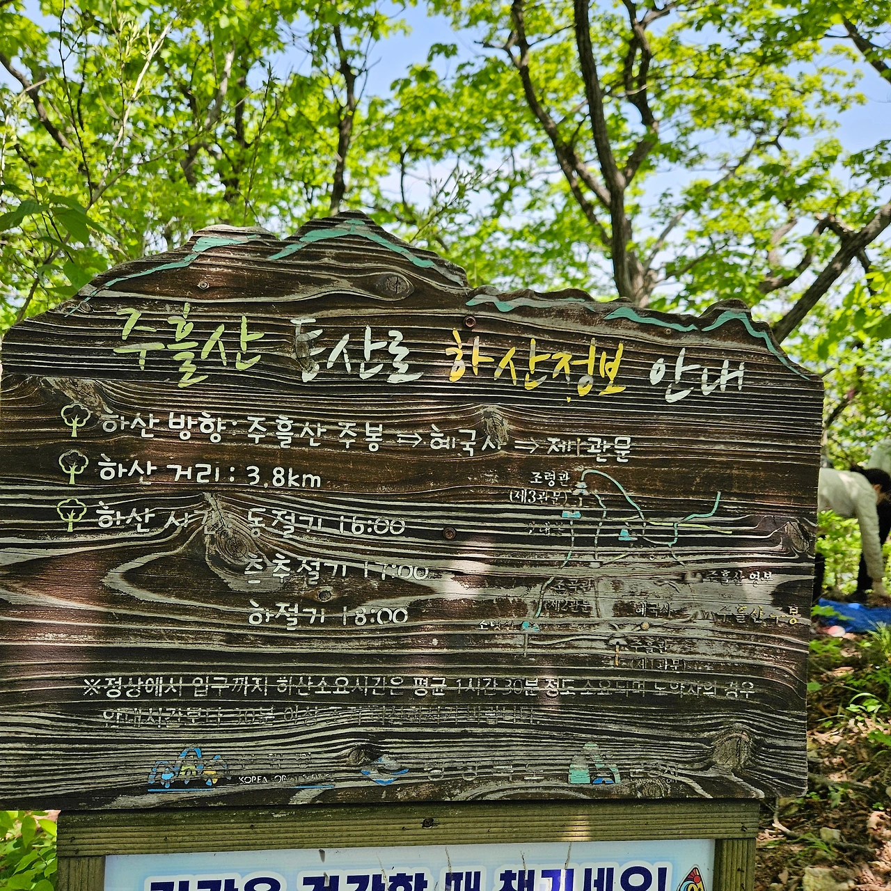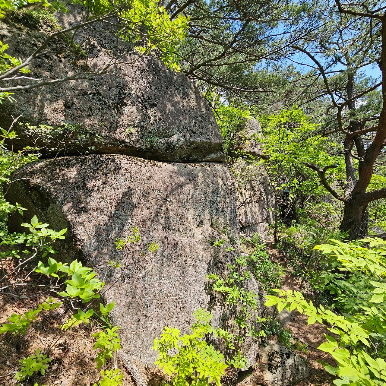 혜국사를 바로 앞에 두고 사찰을 가는 사람도 있겠지만 50m 정도의 사찰을 뒤로하고 주흘산 정상으로 발을 옮긴다. 그런데, 오늘이 석가탄신일이라고 신도들을 태운 미니 버스가 들어오고 있다. 등산로 이외에 혜국사로 오는 버스길이 있는 것이다. 하산하는 길에 혜국사로 가는 미니 버스길이 있나 찾아보니 있다. 혹!, 혜국사만 가려는 사람들은 사찰로 가는 버스를 타거나 등산로를 이용하여 무난하게 사찰로 갈 수 있을 것이다. 정상으로 발을 옮기고 있는데 하산하는 등산객 2명이 우리에게 진통제 또는 에어파스 등이 있는지 물어본다. 우리에게는 오늘 없고 100-200m 정도 가면 사찰이 있고 그곳에서 이용할 수 있을 것이다라고 안내를 한다. 왜 그러지는 물어보니 일행 중 1명이 무릎을 다쳐서 하산하는 것에 어려움이 있다고 한다. 우리는 사찰에서 버스를 타고 하산을 할 수 있다고 안내를 한다. 그들은 기뻐한다.