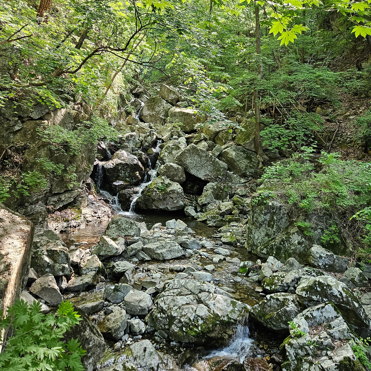 혜국사 700m라고 하는데 어려움이 없이 오른다. 그렇게 힘들지 않고 오른다고 하는 것은 거짓말이고 멋진 경치에 취하여 그 경치를 감상하면서 혜국사 바로 아래까지 도착하는 것이다. 그 절경이 바위와 물과 폭포라고 하여야 할 것이다. 지난주 내린 비로 인하여 유량이 풍부하여서 그런지 우렁차게 내리는 폭포수와 계곡의 바위 그리고 이끼가 조화를 이루면서 우리들의 눈을 즐겁게 한다. 혹시, 이 경치를 보기 위하여서 간다면 비가 오고 2-3일 후에 한번 가보면 그 경치를 그대로 감상할 수 있을 것이다.