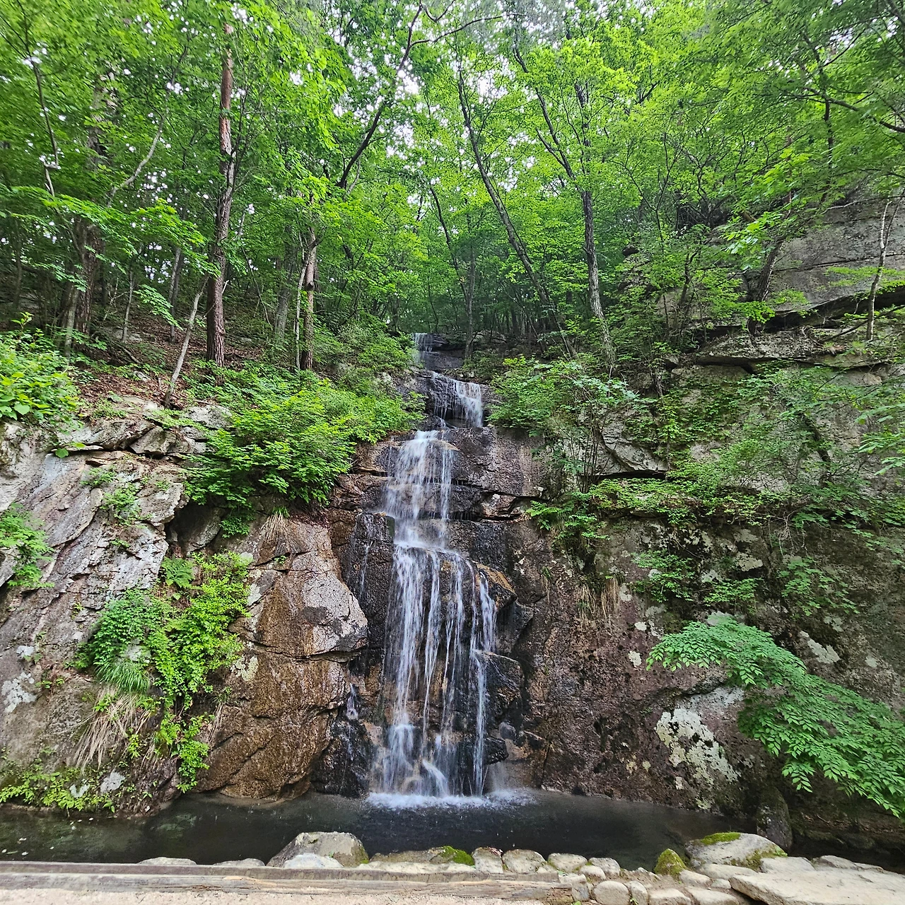웅장한 산세가 우리 앞에 보여준다. 건너편에 사람이 있다. 우리가 저리로 가는 것인지 궁금하다. 산을 내려오는 사람인지 산을 올라가는 것인지 몰라서 여궁폭포에 근접하니 그 길은 여궁폭포를 지나서 정상으로 가는 길이다. 폭포에서 바로 올라갈 수 없으니 폭포를 구경하고 그 밑으로 하여서 계곡을 지나 다시 돌아 돌아 주흘산 정상으로 가는 것이다. 이렇게 멋진 경치를 본다는 것이 좋다. 그리고 여름날 왔으면 그 시원함이 더할 것이다. 조금 전 갈림길까지 가는 것이 아니고 갈림길에서 정상으로 가는 길을 다시 만났다. 그리고 그곳에서 얼마 떨어지지 않은 곳 폭포의 절벽을 바라다볼 수 있는 곳에 쉼터가 있어서 쉬어본다.