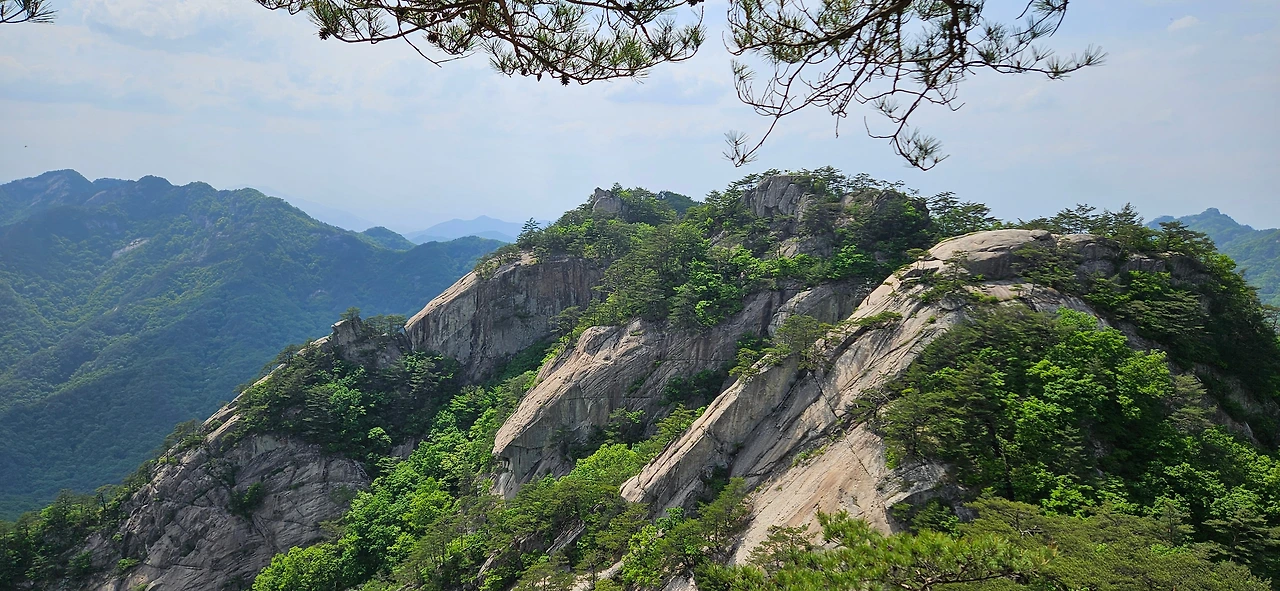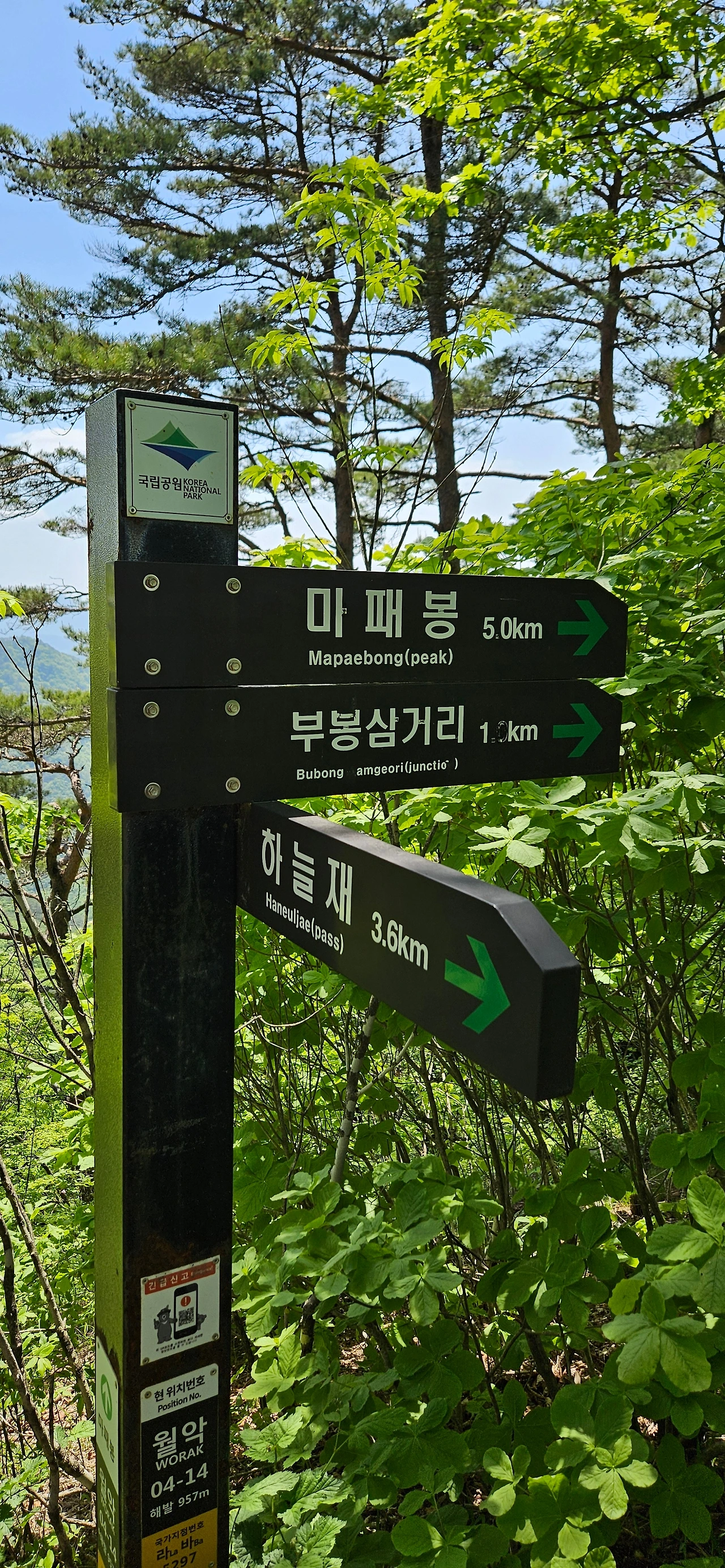 4봉 근처에서 오를 수 있는 곳이 있으나 그곳에서 내려오는 것이 만만치 않을 것 같아서 포기한다. 우리들은 등산을 왔지 익스트림 스포츠를 하러 온 것이 아니다. 안전을 최대한 찾으면서 등산을 하여야 한다. 4봉은 그냥 지나친다. 이 시점에서 영어로 pass가 생각이 난다. 월악산 국립공원공단에서 만들어 놓은 이정표에 영어로 haneuljae(pass) 이렇게 되어 있어서 궁금증이 생긴 것이다. 봉우리는 peak라는 것을 알겠는데 pass는 하고 궁금증이 생긴 것이다. 영한사전을 찾아보니 통로로 표시되어 있지만, 영영사전에는 'a low place in a mountain range where a road or path goes through'이다. 결론적으로 고개인 것이다.