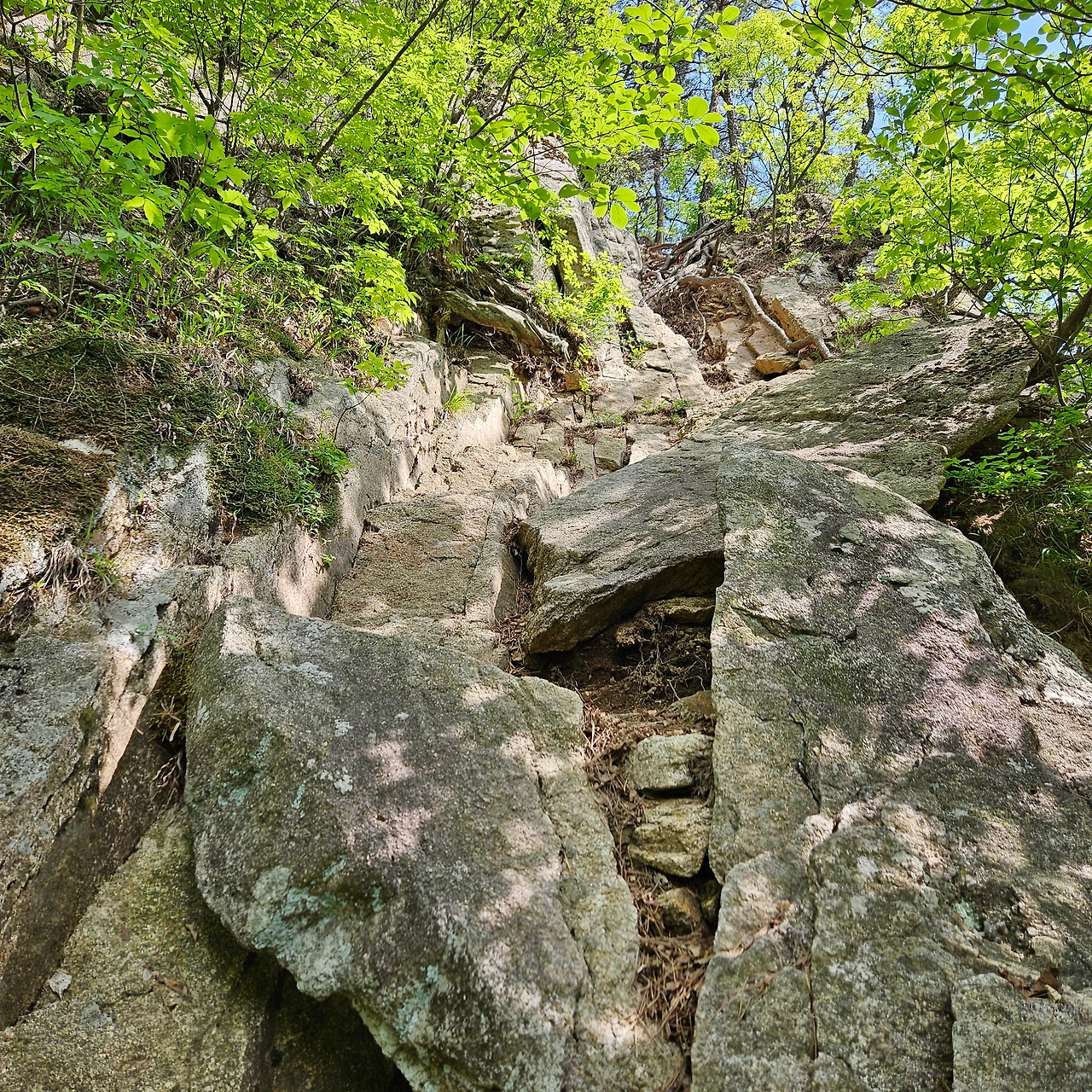 6봉을 오른다. 예전에 설치하였던 철제 데크가 설치되어 있다. 조심스럽게 오르면서 안전하게 우리가 주차장에 도착하기 전까지 비가 오지 않기를 기도한다. 6봉의 정상에서 인증을 남기고 맞은편 조령산과 깃대봉, 그리고 조령관 및 마패봉을 본다. 멋진 경치가 그대로다. 이제는 하산을 생각한다. 3 관문 근처로 우리가 하산을 하여서 7km 정도 걸어야 주차장에 도착할 것이다. 내려가는 길도 정비가 잘 되어 있다. 산불조심기간에 통제되었던 등산로가 이제 열린 시점이 되어 그런지 등산객들은 보이지 않고 우리가 독점을 하고 있다. 데크에서 바라다본 경치는 가히 일품이다. 인생샷을 남기겠다고 일행들은 사진을 담고 있다.