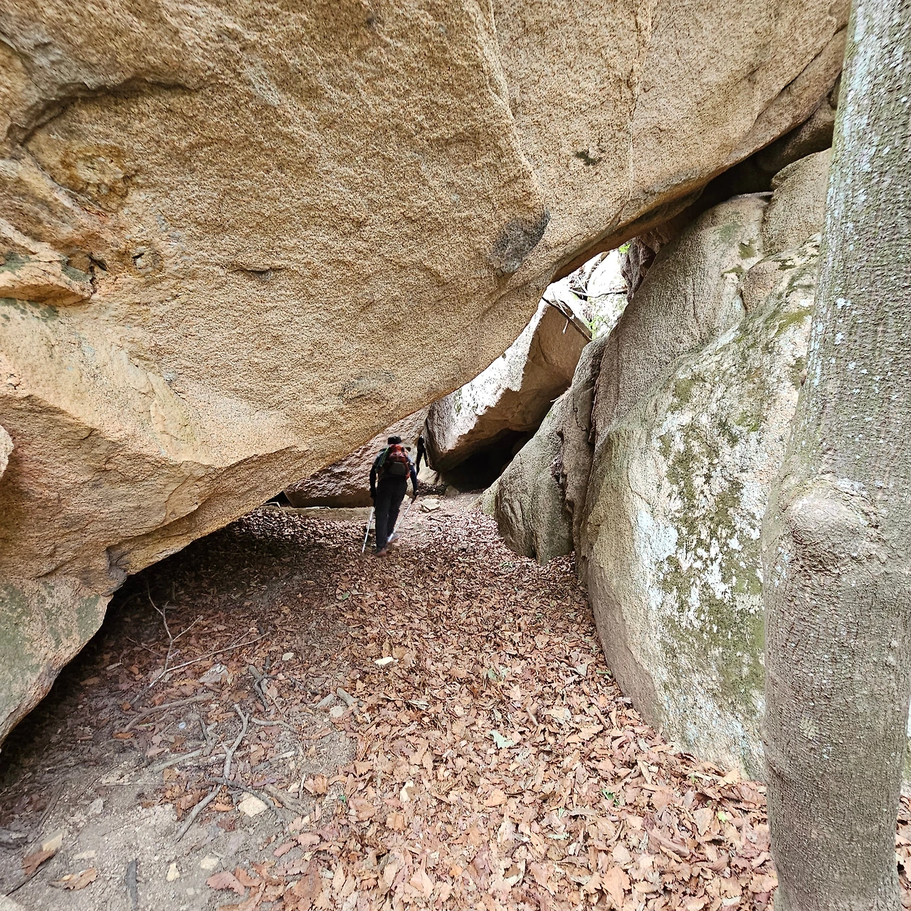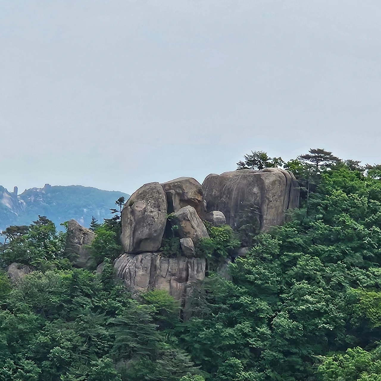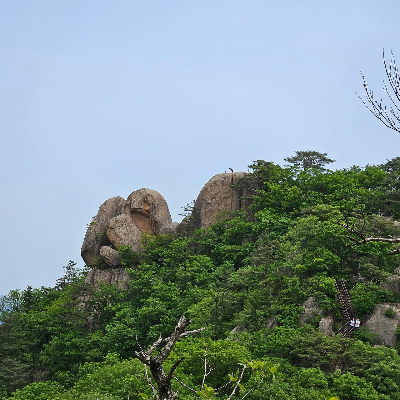 묘봉을 오르면서 등산로가 아닌 곳을 걸어보는 기분을 느낀다. 그것이 묘봉의 매력이라고 할 것이다. 처음은 능선을 오른다. 그 능선 계곡 끝나는 지점까지는 편안하다고 할 수 있다. 그리고 가파름의 연속이다. 힘겹게 오르고 있지만, 이곳은 그래도 바윗길이 아니다. 능선에 도착하기 전까지 아무것도 보이지 않는다. 사실 능선에 도착하여도 똑같다. 그 능선 길을 지나 봉우리에 도착하여야 감탄을 할 수 있다. 앞선 등산객들이 능선에 도착하고 있다. 그 등산객의 선발대가 도착하였고 우리는 모두 도착하였는데 우리가 거기에 있기에는 너무 많은 것 같아 우리는 10분을 더 걸어서 정상으로 이동을 한다.