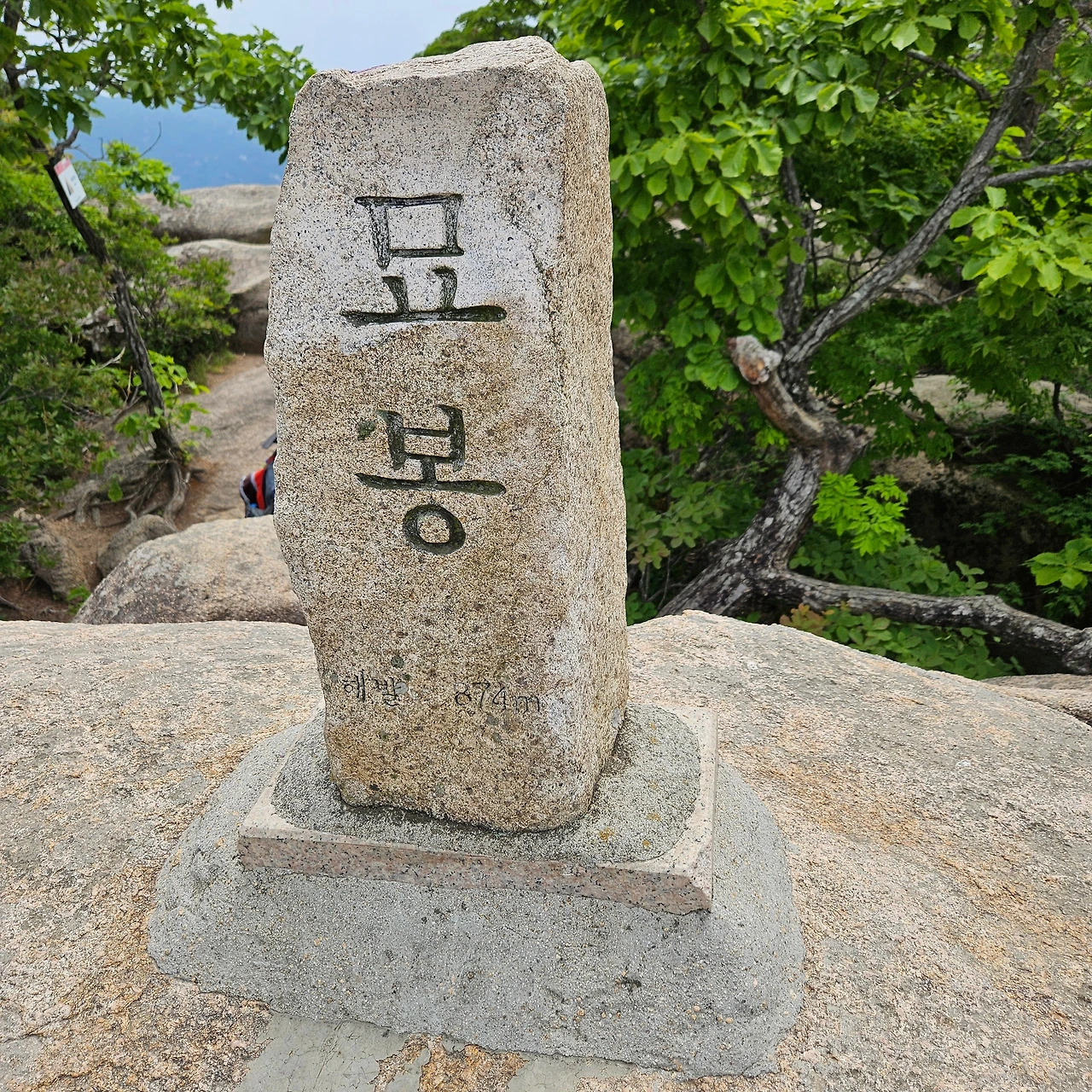 암릉봉을 지난다. 그곳에서 바라다보는 묘봉의 모습이 가장 좋다. 그곳에서 바라다본 묘봉의 모습을 갖기 해석하는 것이다. 나는 이렇게 해석을 하고 어떤 이는 이렇게 해석을 하는 것이다. 그것이 자아인 것이다. 그리고 내려갔다가 오르면 묘봉이다. 묘봉을 마지막 오르는 길이 가파르다. 그것은 다만, 데크 계단일 뿐이다. 묘봉 정상석 주변을 안전에 어려움이 있지만 통제를 하지 않는다. 그것이 아이러니하다. 다른 곳은 다 통제하면서 정상석 근처는 더 위험하지만 통제하지 않는다. 그곳에서 바라다본 능선이 그냥 이빨을 드러내고 있다.