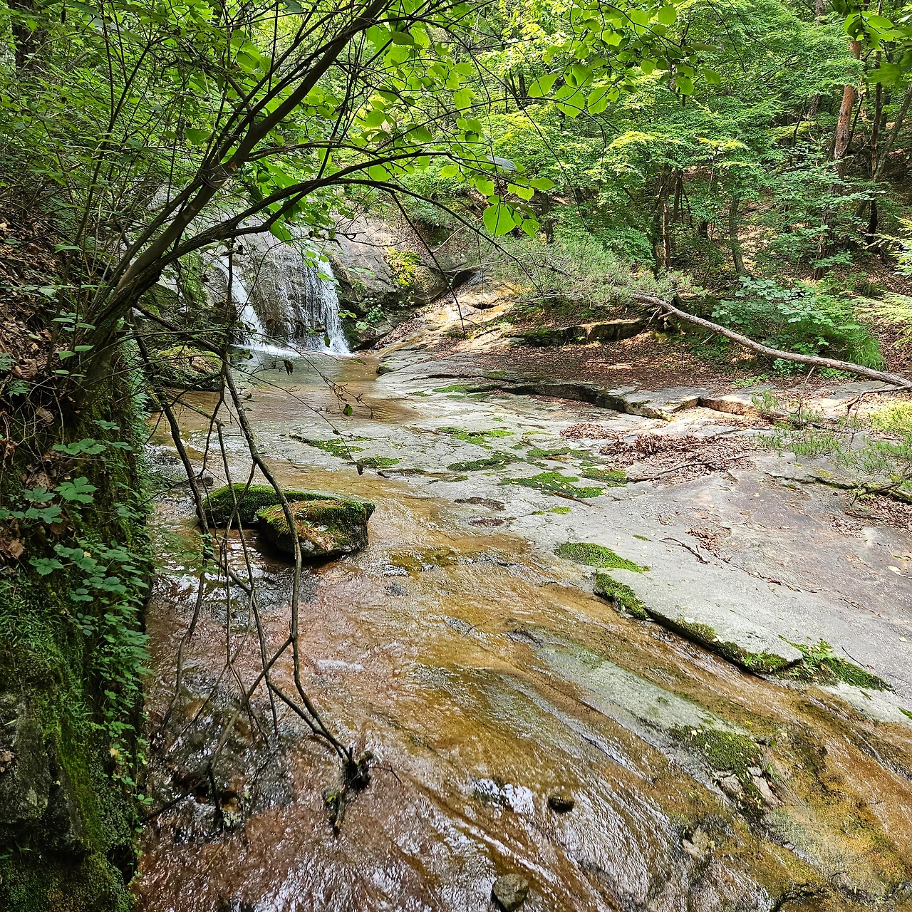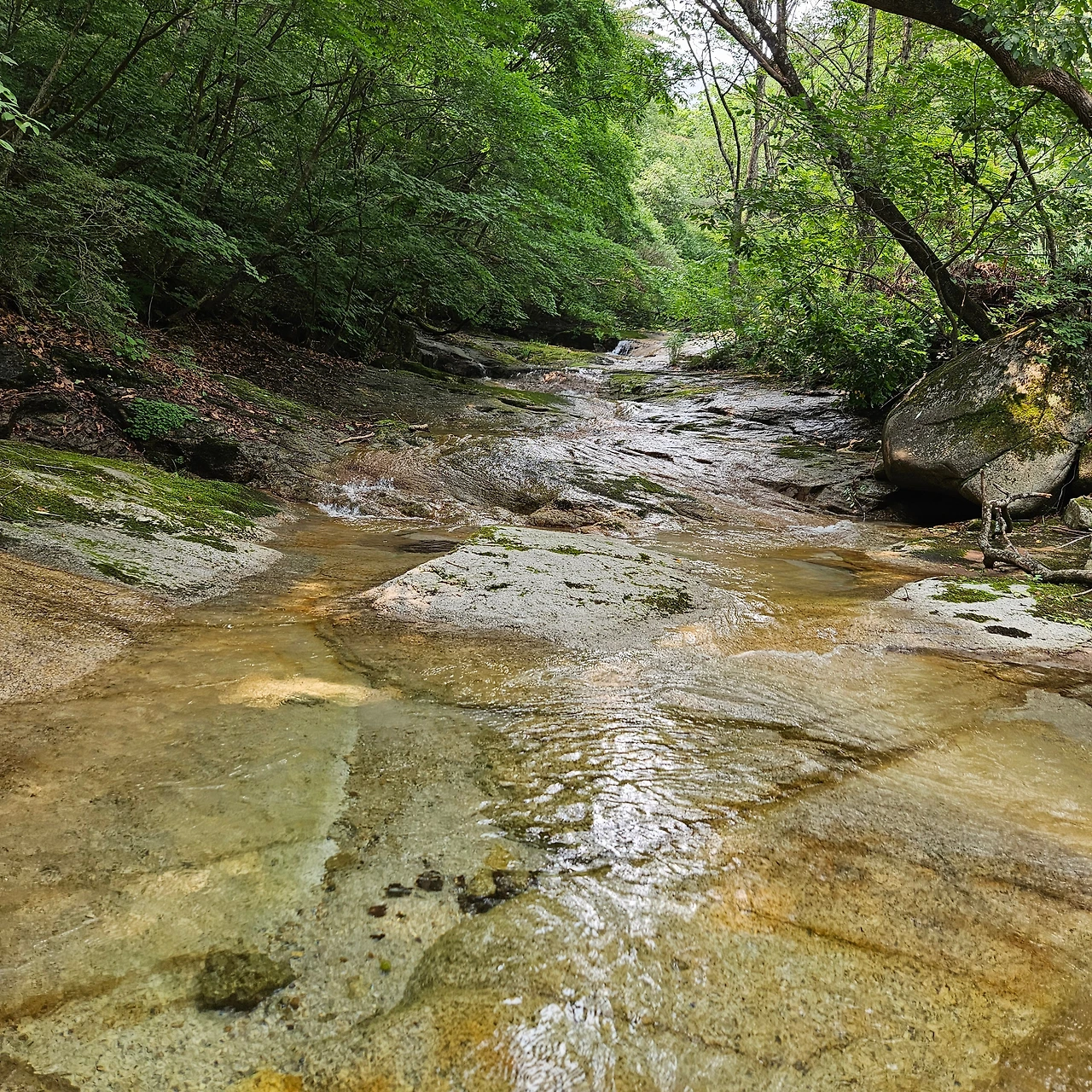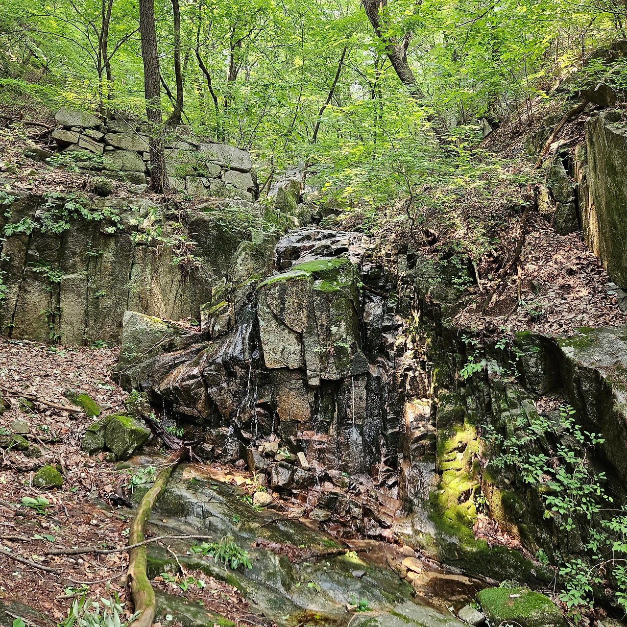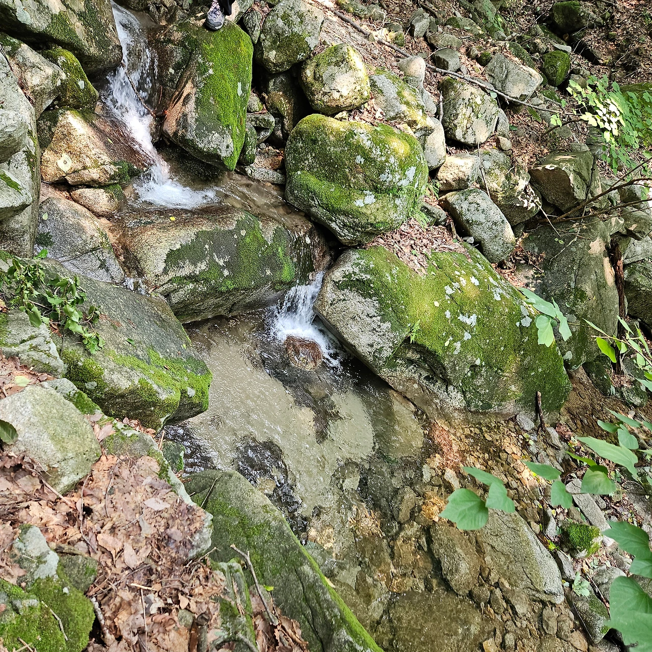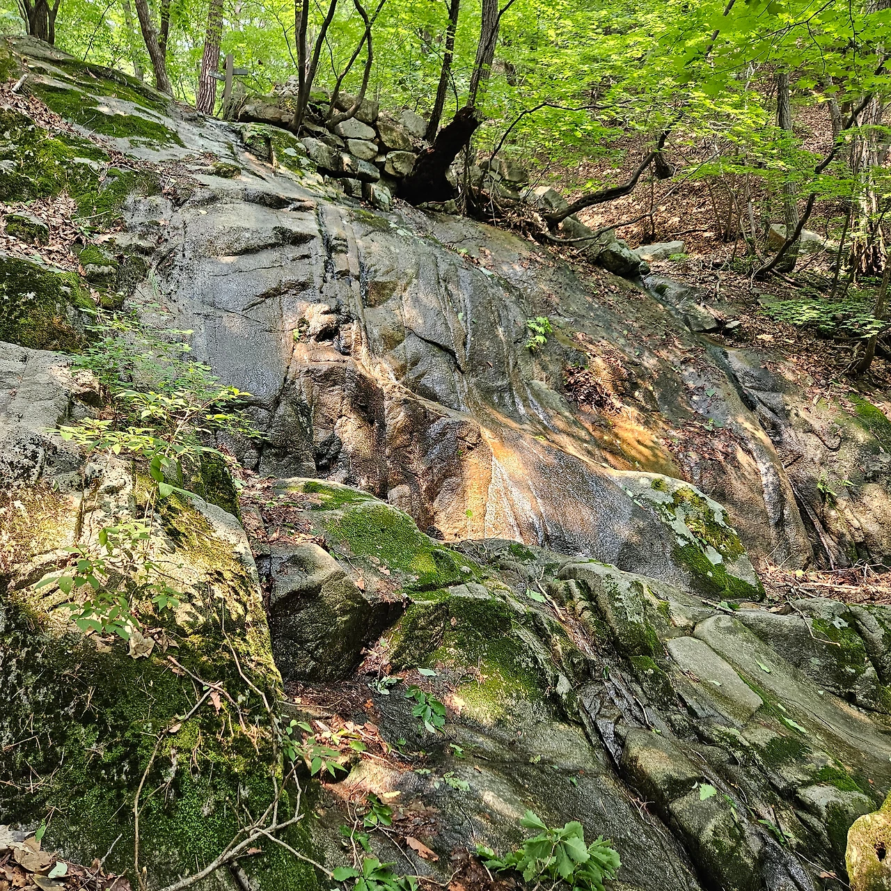 식암폭포가 있다. 계곡을 내려가면서 또 폭포를 보겠지만 처음으로 만나는 폭포이다. 폭포이지만 그렇게 많은 유량을 갖고 있지 못하여 아쉬움이 있다. 하지만 구송폭포에서 아쉬움을 달랬다.