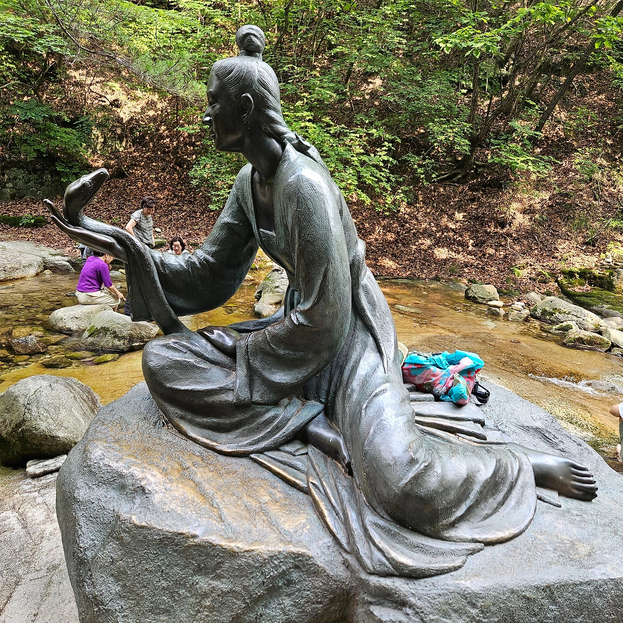 청평사 바로 앞에 있는 계곡에서 바를 담그고 세수를 다시 하고 사찰로 들어간다. 그곳에 나중에 확인을 하니 공주탕이다. 이곳이 공주와 상사뱀 설화에서 평양공주가 상사뱀을 공주굴에 떼어 두고 절에 올라와서 가사불사를 하기 전에 목욕재계를 했다고 전해지는 곳이다.
