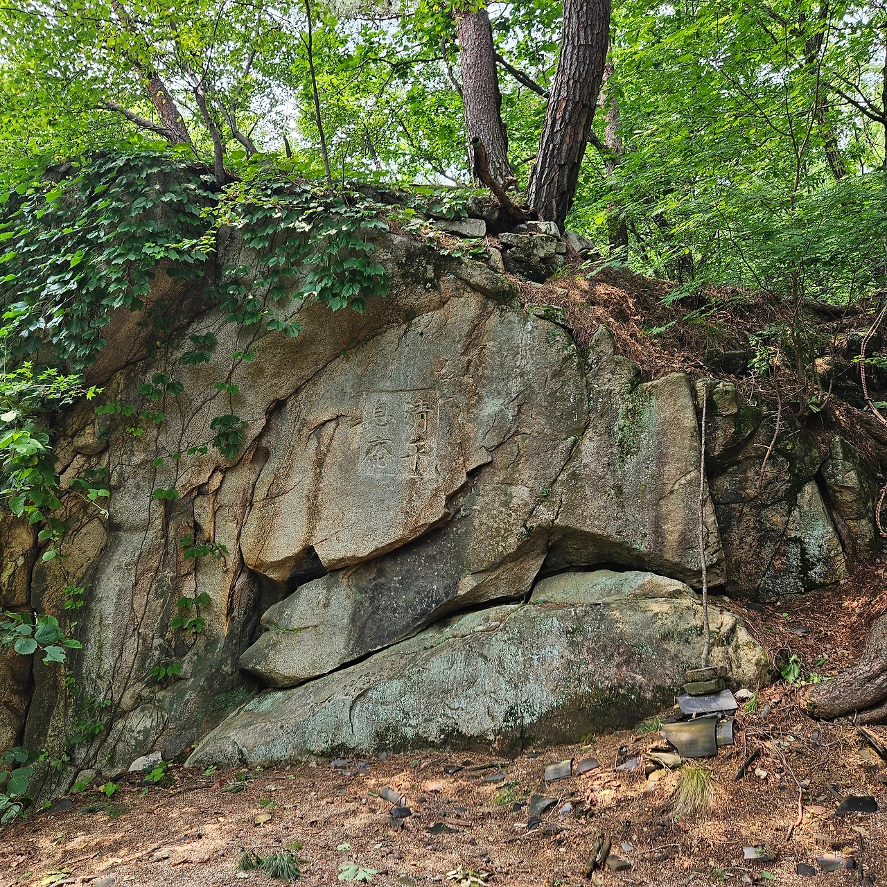 이곳에 적멸보궁이 있다고 하는데 없다. 다면, 바위에 새겨진 청평식암(淸平息庵)이라고 부조되어 있다. 이곳에 예전에 적멸보궁이 있었다고 2013년 산행기를 보면 있는데, 지금은 없다. 청평식암은 없고 청평식암지만 있다. 그리고 계곡에 가면 이자헌의 세수터가 있다. 네모반듯하게 바위를 쪼아 웅덩이를 만들어 놓았다. 우리는 모두 그곳에서 세수를 하였다.