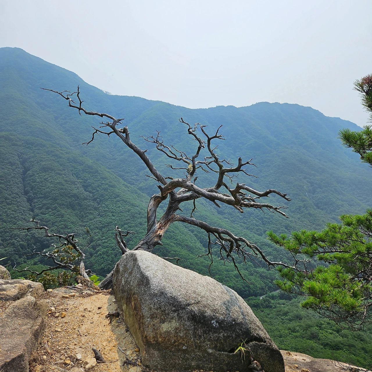 암릉을 오르면서 즐거움은 조각품을 찾는 것이다. 그 조각품이 바람과 비와 눈 그리고 시간이 만든 작품인 것이다. 그리고 암릉을 이겨내고 자라고 있는 나무이다. 곳곳에 그러한 풍경을 담을 뿐이다. 경이롭다고 할 것이다.
