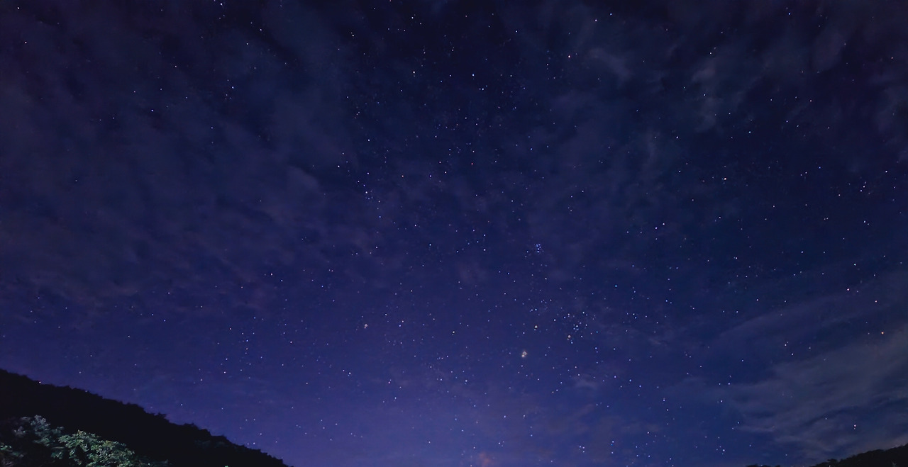 그리고, 출발지점에서 4명이 모여서 단체사진을 찍고 2박 3일의 일정을 시작하였다. 성삼재를 지나면서 J가 별을 스마트폰으로 담는다고 하여 모두들 헤드랜턴을 끄고 암흑 속에서 기다린다. 우리가 상상했던 이상으로 스마트폰으로 별을 담았다. 어릴 적 내가 살던 산골에서 매일밤 보던 별들이 지금은 도심 속에서 살아서 볼 수 없다. 요즈음은 별을 보기 위하여 천문대로 가고 산으로 비박을 간다. 우리는 "지리산을 걸어보자. 그리고 천천히, 그리고 하늘에서 별을 보기 위하여 걸어보자"라는 모터를 가지고 종주를 시작하였기에 별을 담는다. 그리고 하늘을 본다. 학창 시절 배웠던 카시오페아 자리는 쉽게 찾았는데 다른 것은 잘 모르겠다.