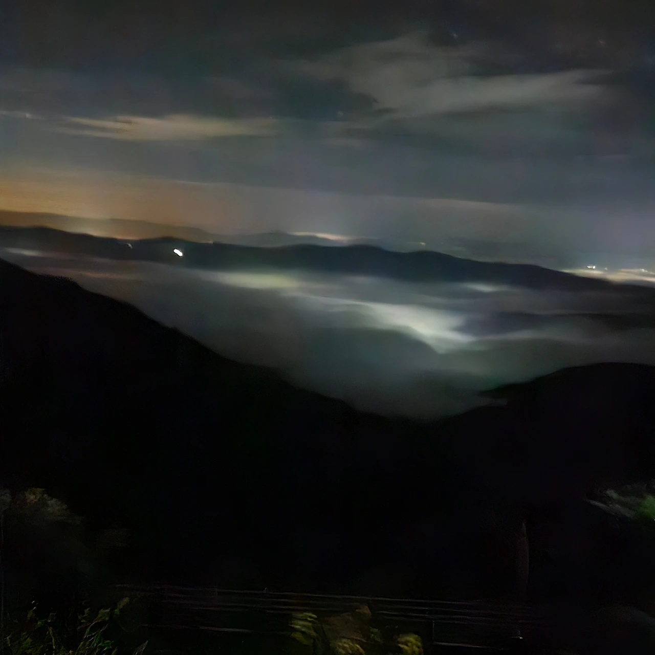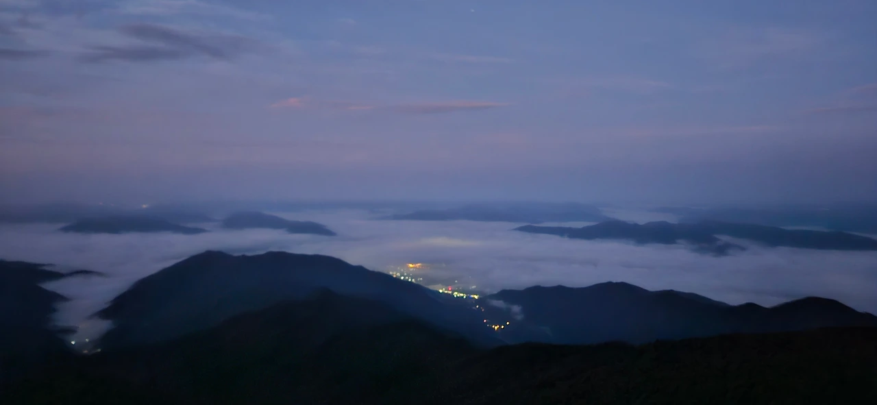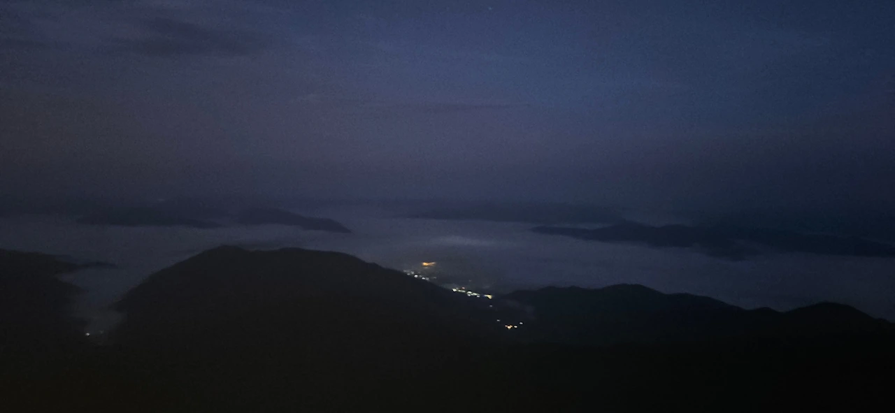 노고단에서 바라본 운해와 노고단 아래의 화엄사 등의 불빛