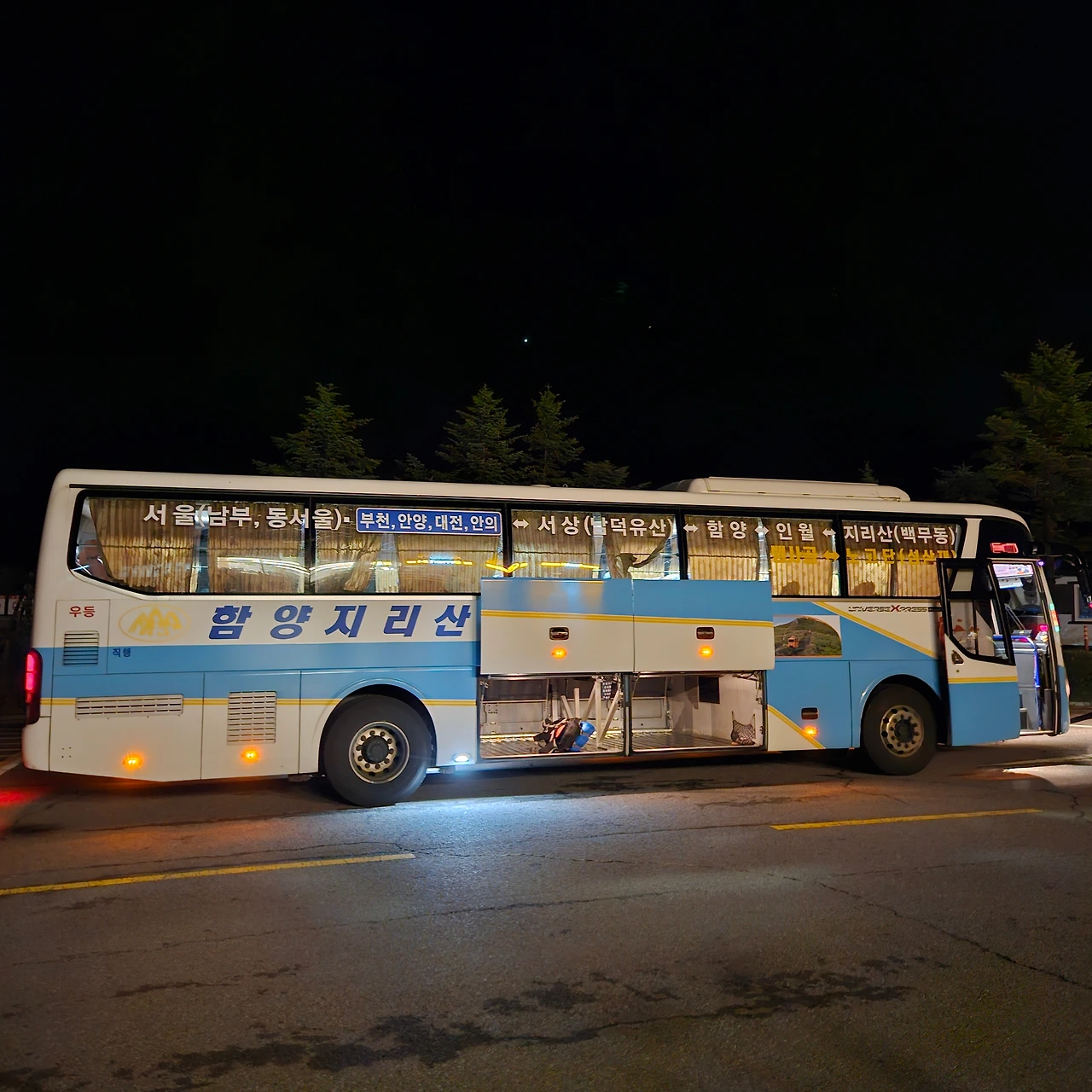 동서울터미널에서 빗소리를 뒤로 하고 시외버스는 성삼재로 달린다. 나는 안내산악회 버스를 많이 탑승해서 그런지 바로 잠이 들었는데 친구들은 그렇지 못한 것 같다. 나는 잠들어서 버스가 어떻게 이동을 하였는지 모른다. 단지, 지리산 성삼재를 올라갈 때 굽이굽이 돌아가는 버스소리를 들으면서 잠에서 깨어났다. 버스는 굽이굽이 돌면서 성삼재까지 올라가면서 한 굽이돌 때마다 엔진소리를 약간 크게 내면서 힘을 내고 있다. 버스기사는 잠들어 있는 등산객들이 아무 느낌이 없도록 부드럽게 운전을 하고 있다. 그래도 버스가 한차례 굽이돌 때마다 승객들이 의자에서 움직이는 소리가 살짝살짝 난다. 이제는 도착시간이 다 된 것이다. 새벽이 3시가 되기 전에 성삼재에 도착하였다.