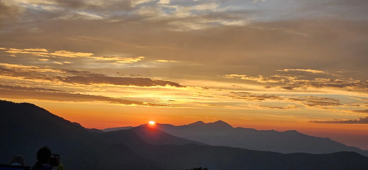 노고단 고개에 올라서면서 뒤를 돌아보니 아침놀을 뒤편으로 하면서 반야봉의 그림자가 그대로 보인다. 우리보다 먼저 올란선 사람도 그렇고 뒤에 올란서 사람도 그렇고 노고단에서 보는 운무를 그대로 담는다. 지리산 10경 중의 하나가 노고단의 운해라고 하는데 그 모습이 장관이다. 이제 해가 떠오르고 있다. 아침노을이 먼저 선발대로 보내서 전체를 조망하고 태양이 나타난 것이다. 그 모습에 탄성을 지른다. 노고단의 운해가 절경이라고 하는데 일출도 절경이라고 생각을 한다. 이른 시간에 이곳에 도착하여 한번쯤 볼 가치가 있다고 본다.