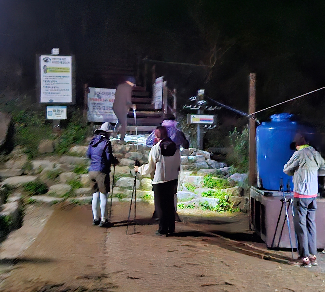 전날 배낭도 챙기고, 식수도 미리 챙겨 두었다. 어떤 등산객들은 식수를 챙기지 못하여 장터목대피소의 식수터로 내려갔다가 올라온다. 아침을 챙기는 사람은 없다. 다만, 화장실도 만원이다. 우리 일행은 전날 모든 것을 챙겨두었고 다만, 침낭만 챙기다. 일찍 가다가 우리는 별을 담아보자고 한다. 천왕봉을 오르다가 암흑을 만들고 그곳에서 별을 담아보기로 한다.