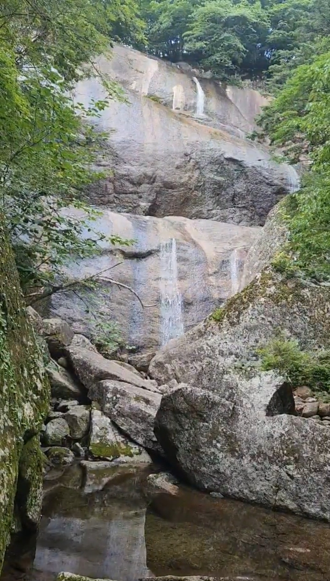 급하게 이제 하산을 한다. 계곡까지 급하게 내려간다고 보면 될 것이다. 2km 정도를 걸으면 무재치기폭포가 있다. 등산로에 있는 것이 아니고 등산로를 벗어나서 200m 정도를 왕복해야 한다. 나는 등산화가 오래되어 밑창이 떨어진 B와 함께 천천히 하산을 하였고 H가 폭포를 갔다 와서 감상을 전하였다. 멋진 폭포인데 너무 멀어서 사람들이 오지 않는 것 같다고 하였다. 그리고 우리에게 동영상 등을 공유하였다. 무재치기 폭포는 3단으로 포말을 날려서 스스로 무지개를 치는 폭포라 하여 붙여진 이름이 변해 무재치기폭포로 부르게 되었으며, 주위에 참나무들과 야생화들이 꽃을 피워 무릉도원을 연상케 한다고 설명이 되어 있다. 가야금을 만든 우륵이 이곳에서 물 떨어지는 소리에 맞춰 나무에 매단 실을 튕겨가며 가야금을 만들었다고 전해지고 있다. B의 등산화는 20번 내외로 신었지만 햇수는 16년 이상이라 접착제 등이 소실되어 바닥이 떨어졌다. 앞쪽은 그래도 붙어 있고 뒤쪽은 너덜너덜해져서 신발끈을 이용하여 묶고 탈출을 하였다. 다행히 그 밑창이 버스를 타고 원지터미널에 도착할 때까지 견디어 주었다.